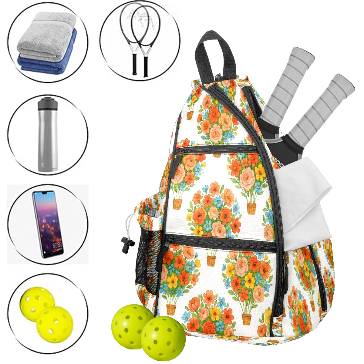 Counullo Pickleball Backpack - Convertible Shoulder Straps, Lightweight Breathable Colorful Bouquet Multi Bag, Fits 2 Paddles, Balls & Gear (6x13.8x17.7 in) | Gifts for Sports Lovers