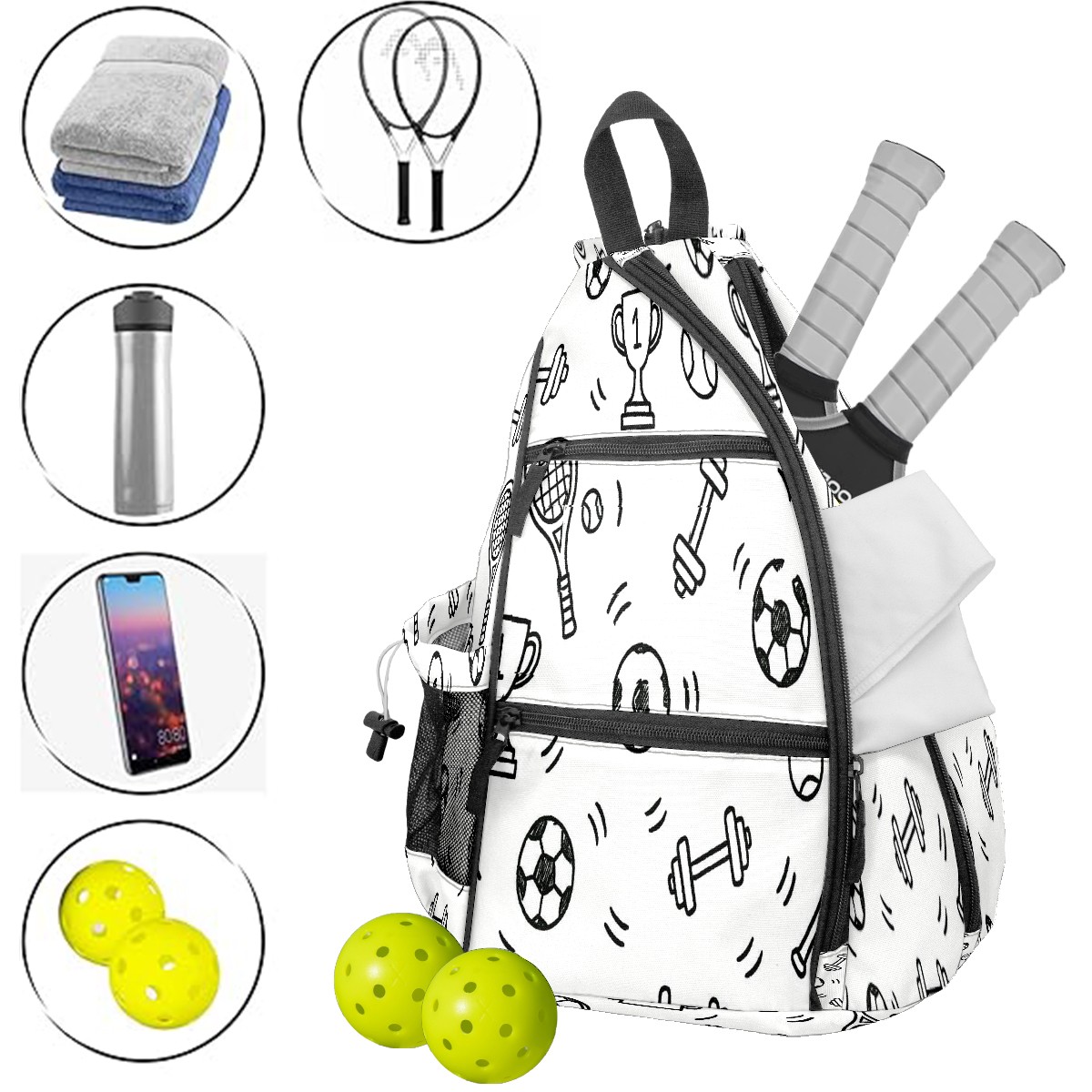 <p>If you’re tired of juggling scattered pickleball gear, or settling for a one-note sports bag that only works on the court — this <strong>exclusive original pickleball backpack</strong> made for you.</p><p><strong>Spacious Pickleball Storage</strong>: Fits 2 pickleball paddles + full game gear, no extra bags required</p><p><strong>Switchable Convertible Straps</strong>: 10-second switch between backpack/shoulder/crossbody, matches any activity</p><p><strong>Breathable &amp; Lightweight</strong>: No sticky sweat buildup, comfortable for long pickleball matches</p><p><strong>Exclusive Original Prints &amp; Durable</strong>: One-of-a-kind designs + scratch-resistant fabric, stylish &amp; long-lasting</p><p><strong>Multi-Scenario Versatile</strong>: Doubles as commute/short trip bag, 1 bag for all needs</p>