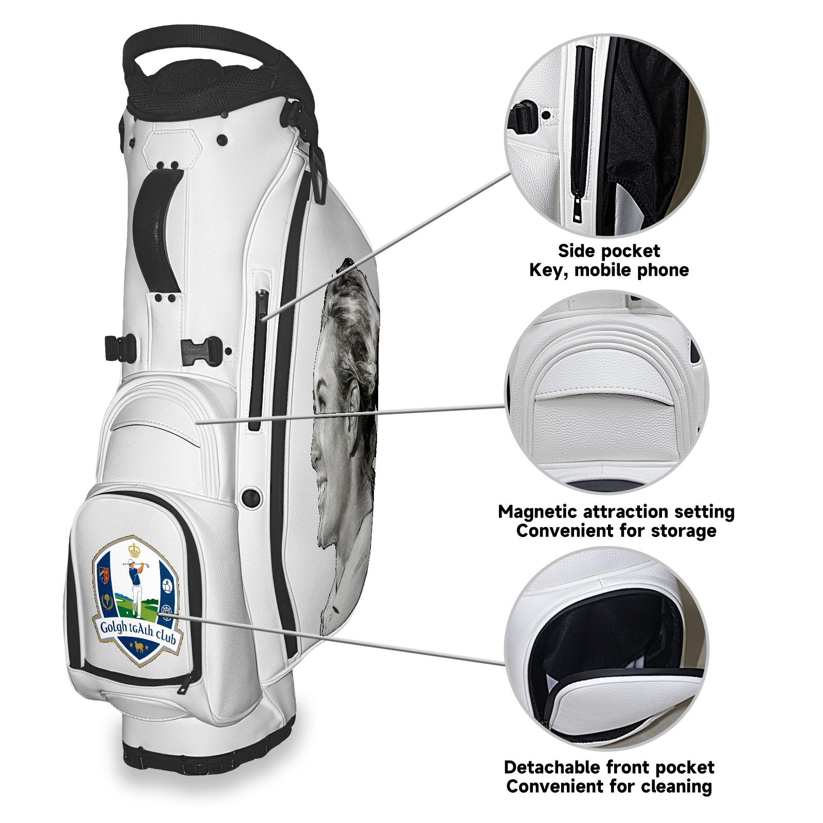 • <p>The Golf Stand Bag, designed specifically for golf enthusiasts, offers a choice of 5 - way and 14 - way top dividers. Its 5/14 - compartment design with independent full - size club compartments safeguards clubs from collisions. Equipped with a rain cover, waterproof zippered pockets (tested to resist moderate to heavy rain), and a high - performance cooler pouch that can keep drinks cold for hours, it ensures a convenient golfing experience. The bag features thickened, breathable neoprene shoulder straps and an adjustable chest buckle, reducing shoulder fatigue by 35% compared to regular bags, and its automatic aluminum alloy stand provides stable support on various terrains. Crafted from top - tier, water - resistant litchi - grain PU leather, with double - stitched edges, reliable zippers tested for over 15,000 cycles, and anti - abrasion bottom studs, it guarantees durability. You can personalize it with embroidery on the front pocket and rain cover side (15*15cm area), and it comes in classic black and white, with a matte finish and litchi - grain texture that combines business and leisure styles. Measuring 130 cm in height, 37 cm in width, and 31 cm in depth (including rain cover) and 90 cm x 31 cm x 37 cm (excluding rain cover), it strikes a balance between storage and portability, capable of holding 14 standard - sized clubs and other essentials, and it also includes a dust cover. It's truly the perfect choice for golfers.<br></p>
