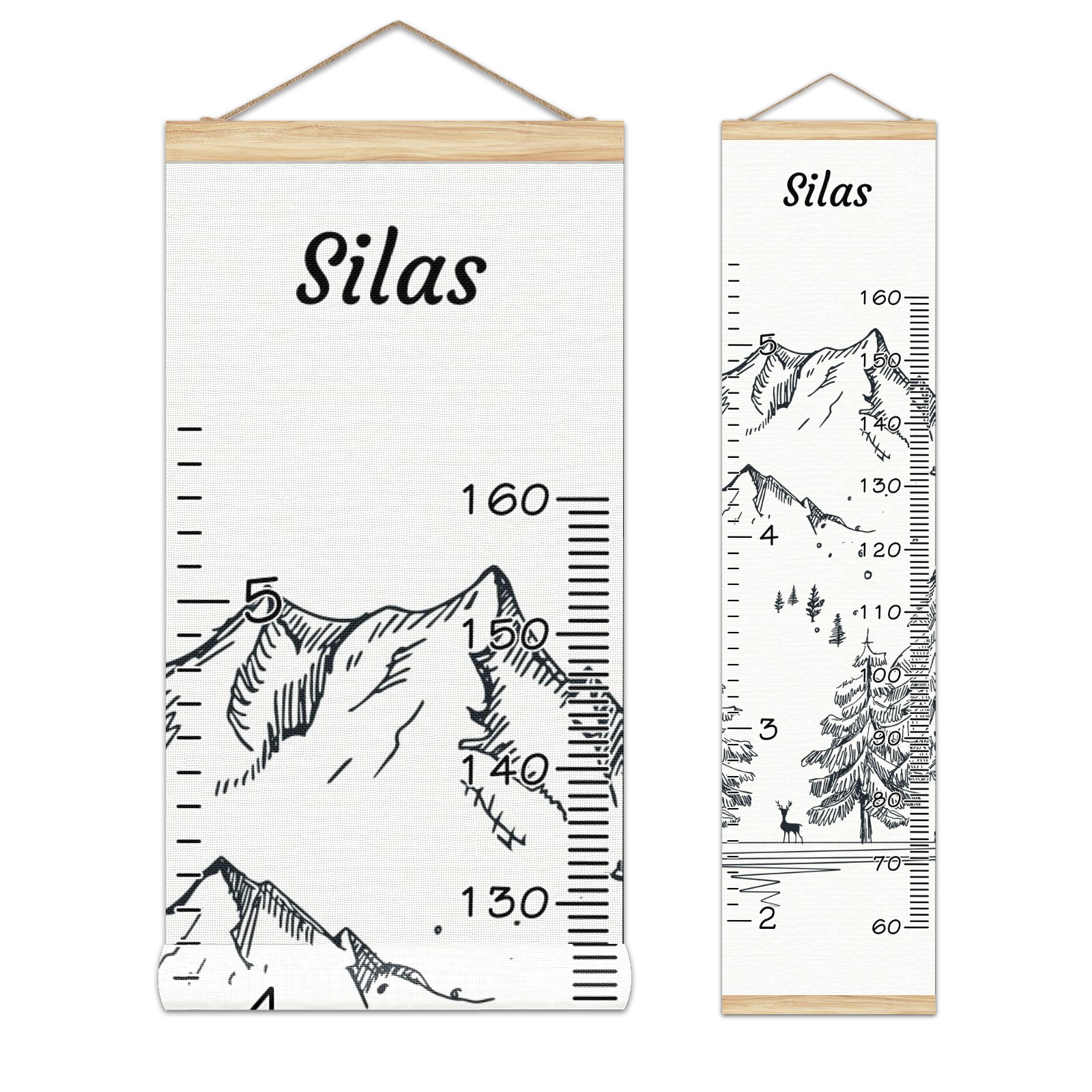 Personalized Kids Name Growth Chart Ruler for Wall Wood Frame Canvas Height Measure Chart 13.4x56 in Hanging Growth Chart Winter Mountain12.29 Boys Girls Room Decor