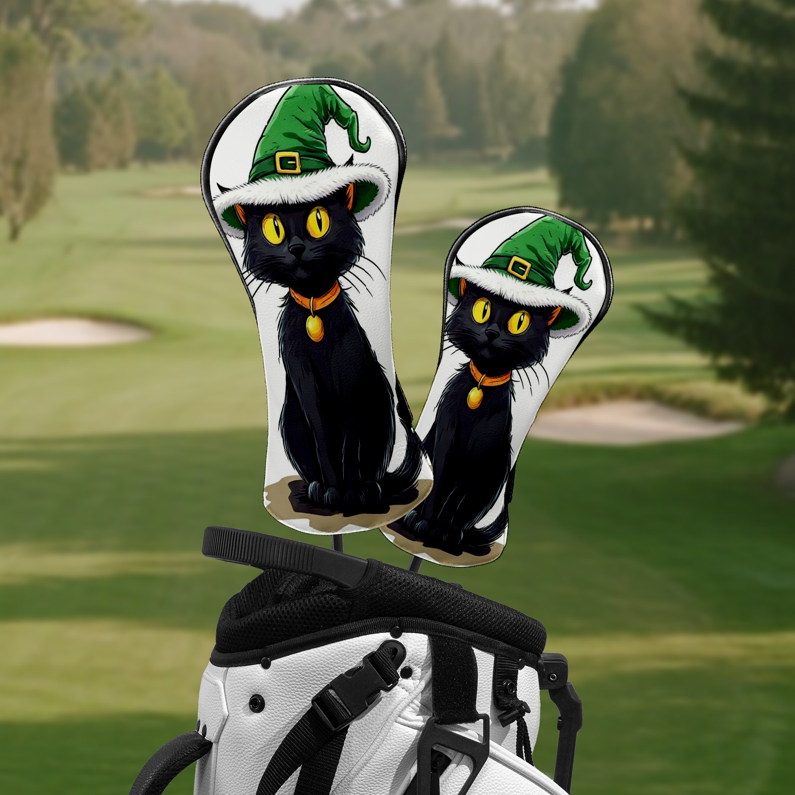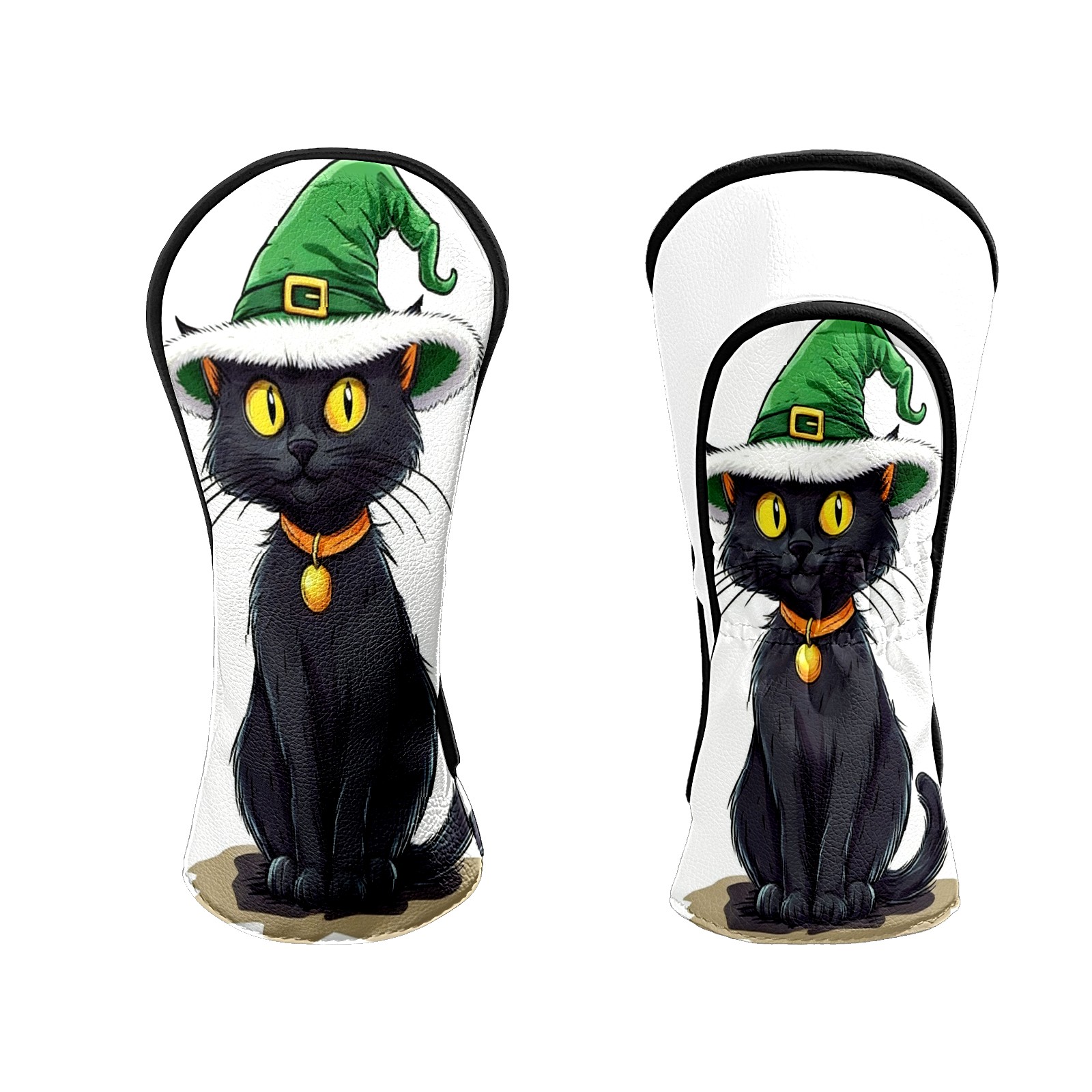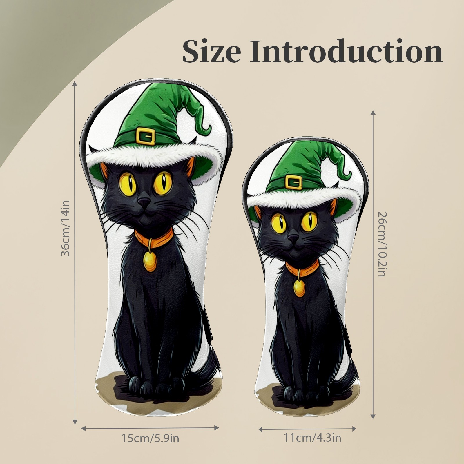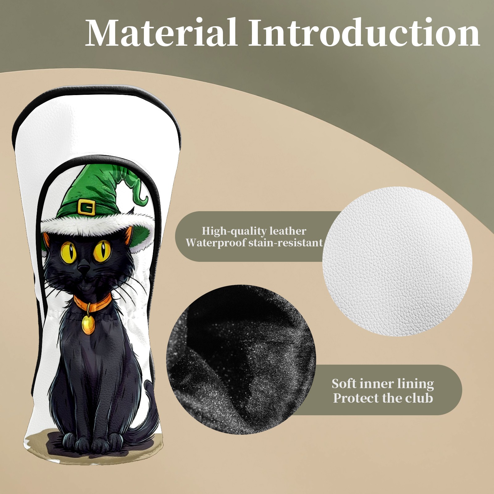 Golf Club Head Covers Green Witch Hat Black Cat Waterproof Leather Golf Head Covers for Men Women Driver Head Cover Fairway Headcover for Golf Lovers