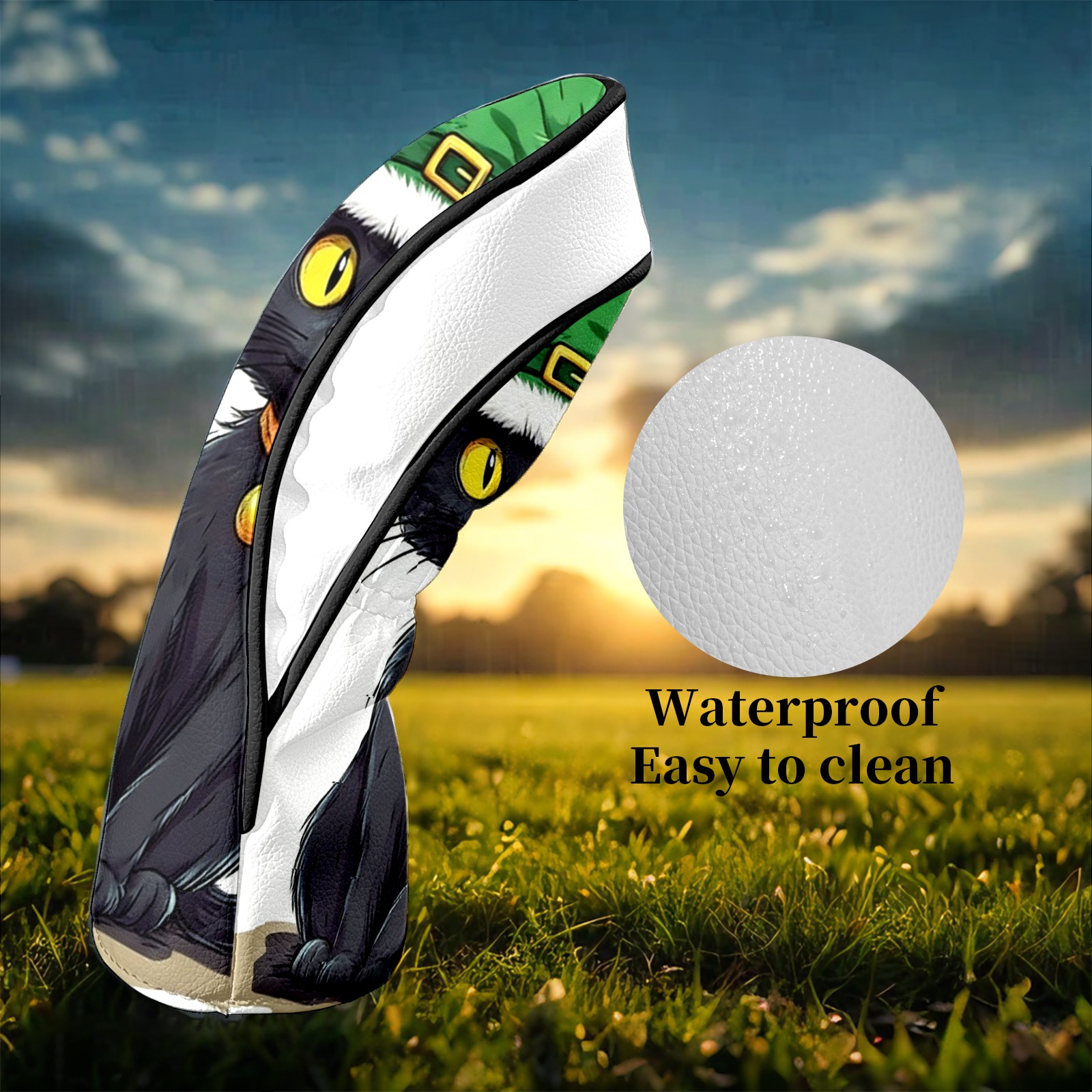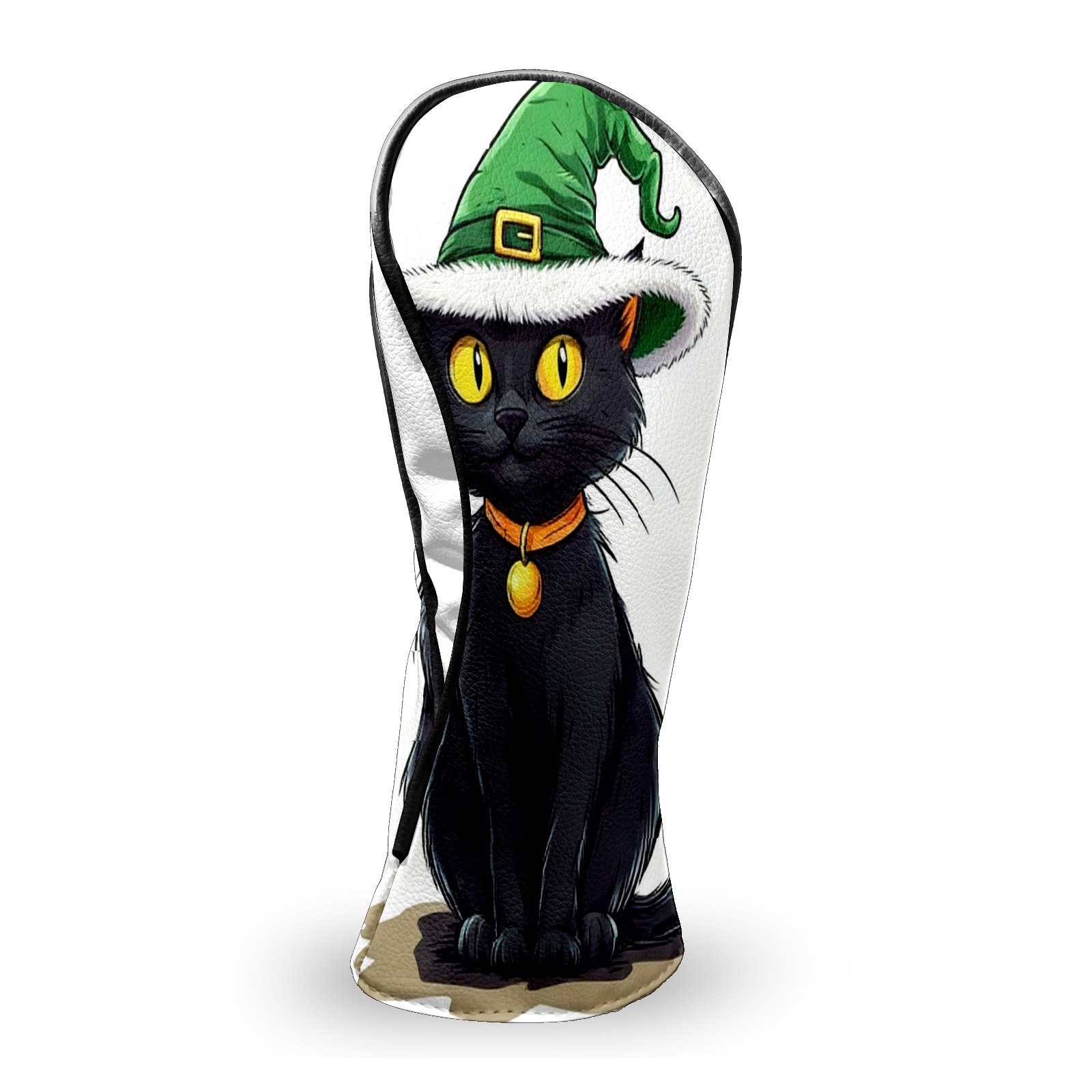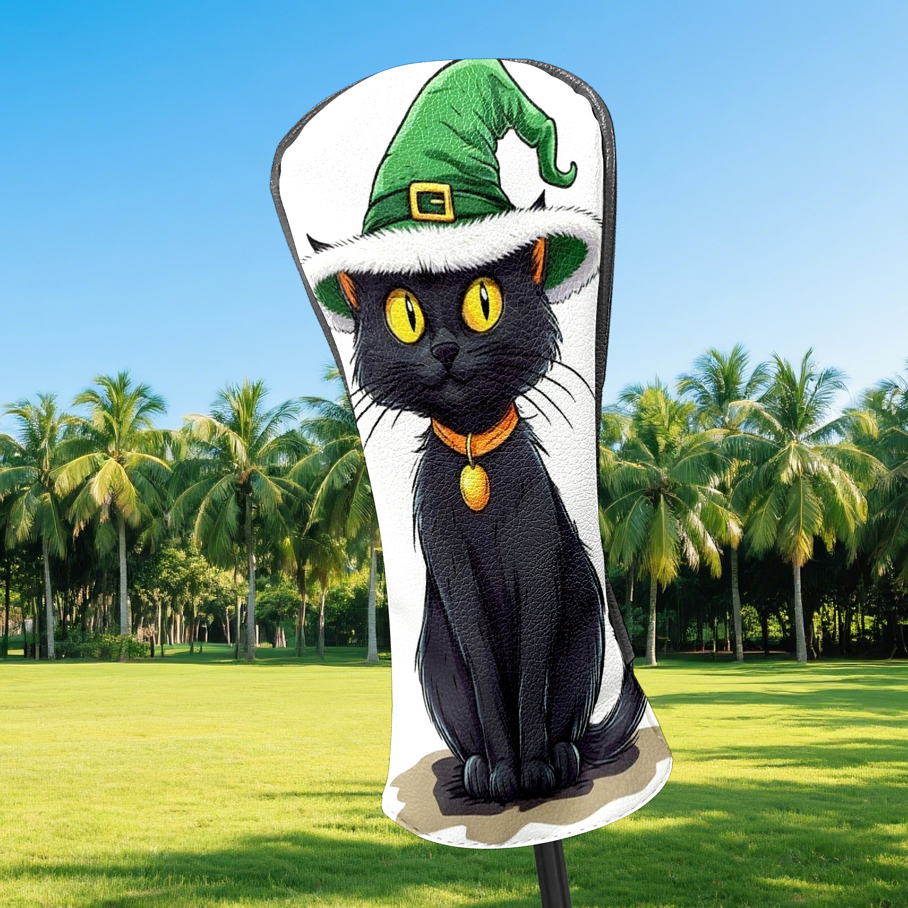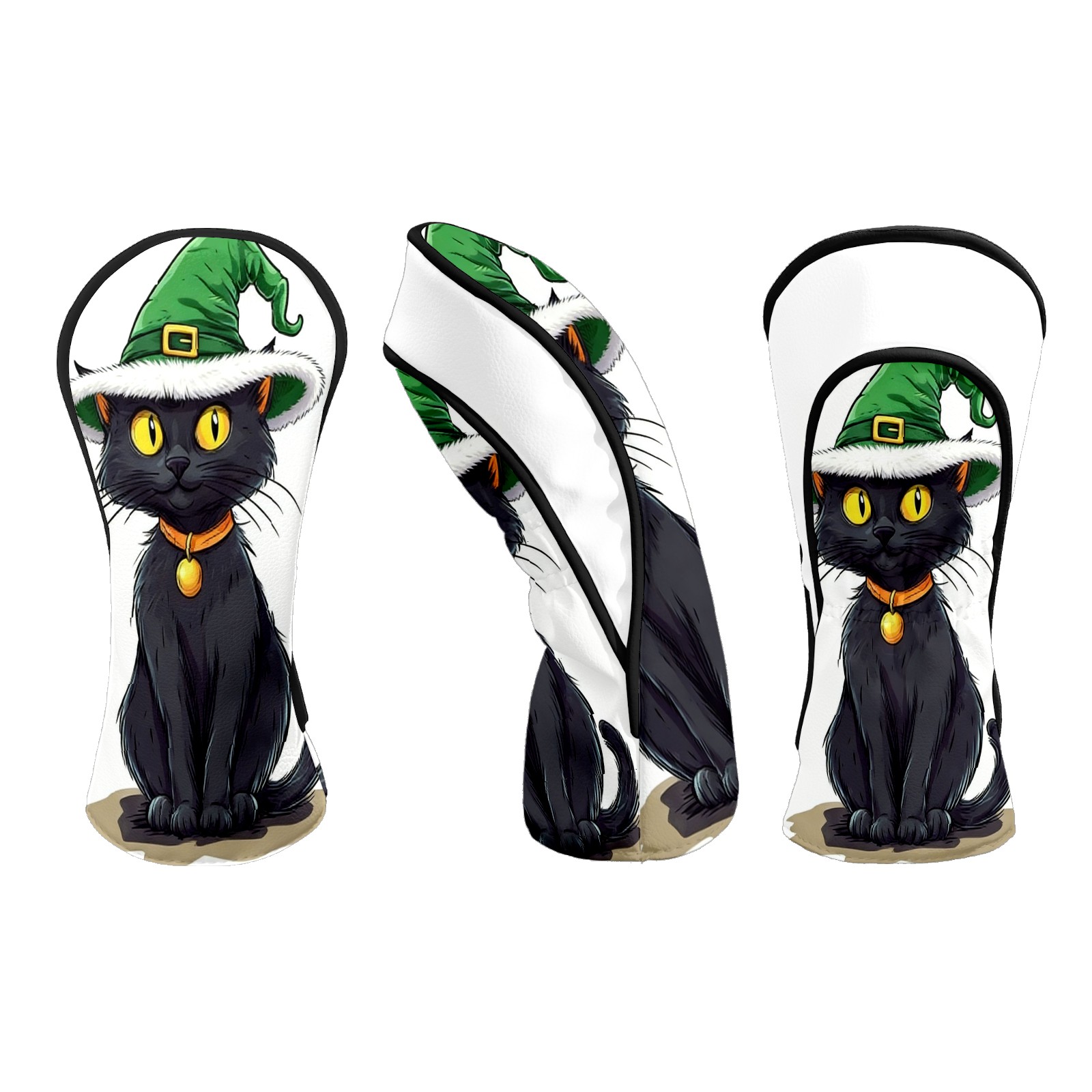 Golf Club Head Covers Green Witch Hat Black Cat Waterproof Leather Golf Head Covers for Men Women Driver Head Cover Fairway Headcover for Golf Lovers