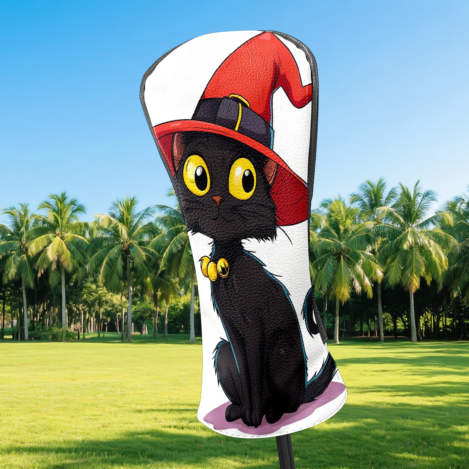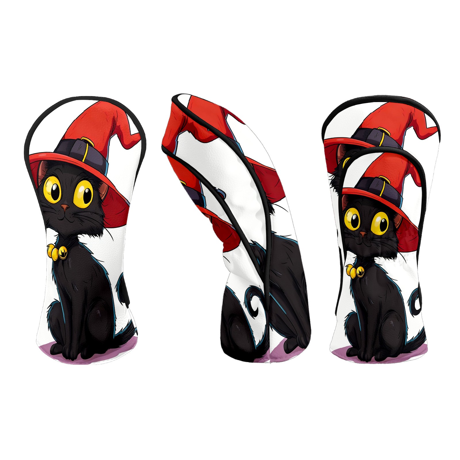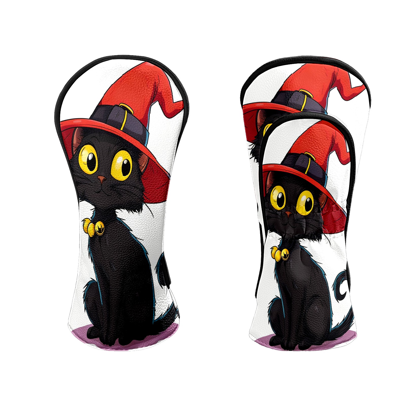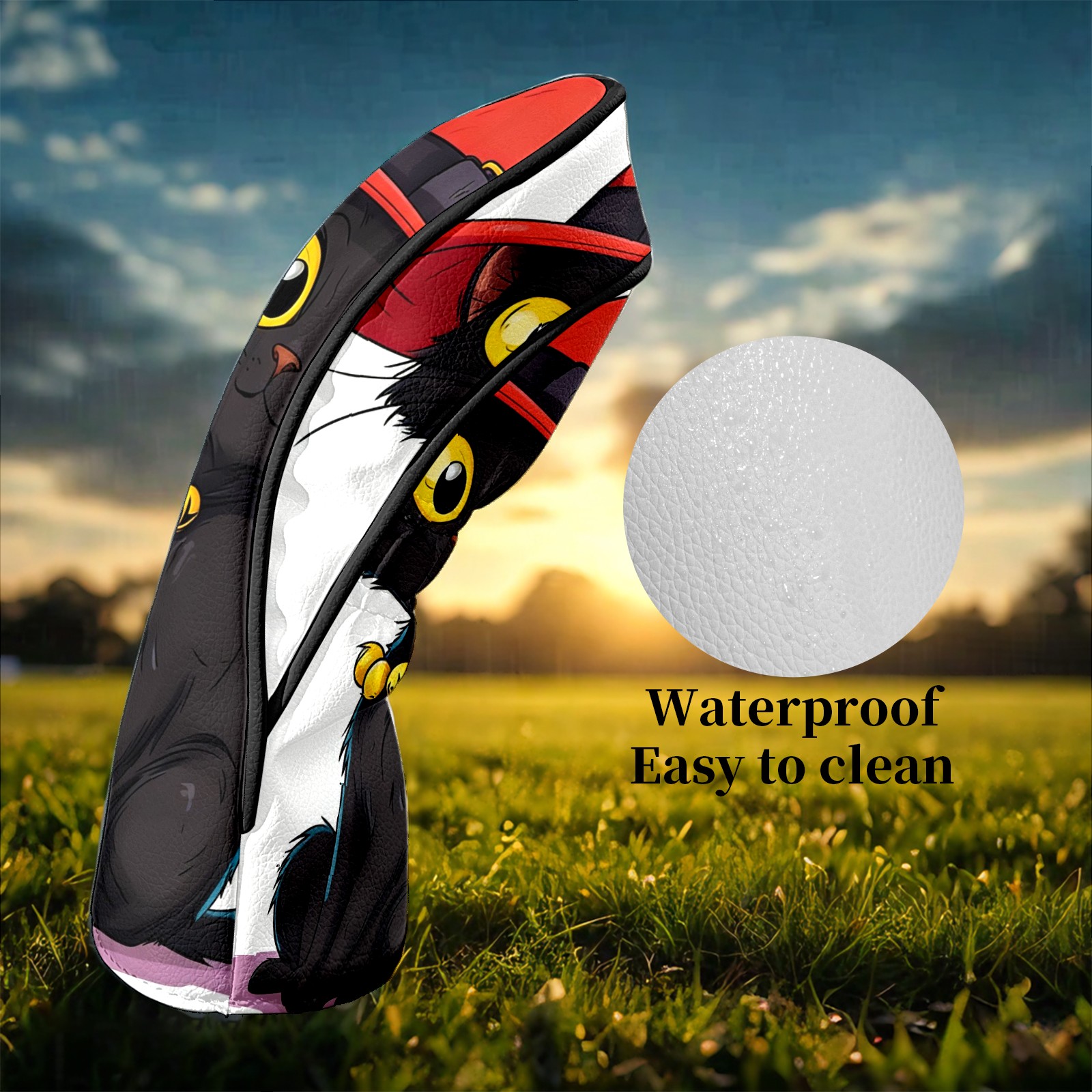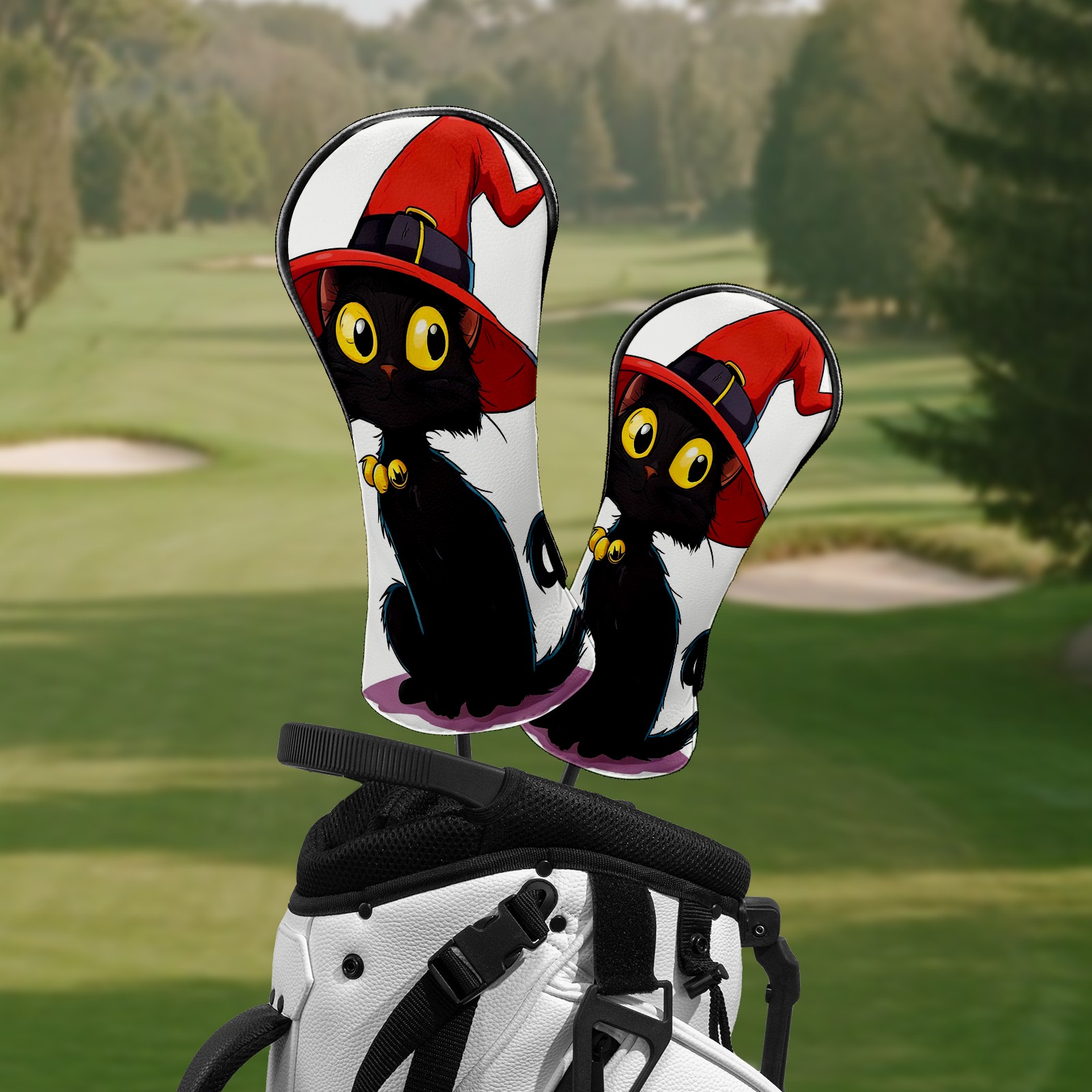 Golf Club Head Covers Red Hat Black Cat Waterproof Leather Golf Head Covers for Men Women Driver Head Cover Fairway Headcover for Golf Lovers