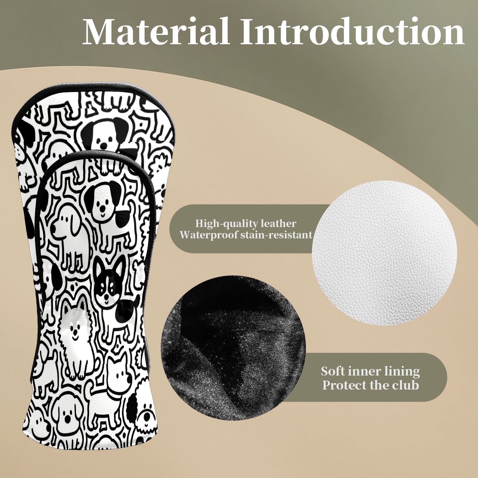 <p>This cover is made of top grade PU leather, which is wear-resistant, waterproof and stain-resistant, and can easily withstand the wind, rain and daily wear and tear; the velvet lining gently wraps around the cover, cushioning the impact and eliminating scratches and abrasions. The velvet lining cushions impacts and prevents scratches and abrasions. Surface stains wipe clean and the tear-resistant design lasts as long as new. Dual size fits all types of clubs, simple and advanced texture design, is a good choice for birthday and holiday gift.</p>