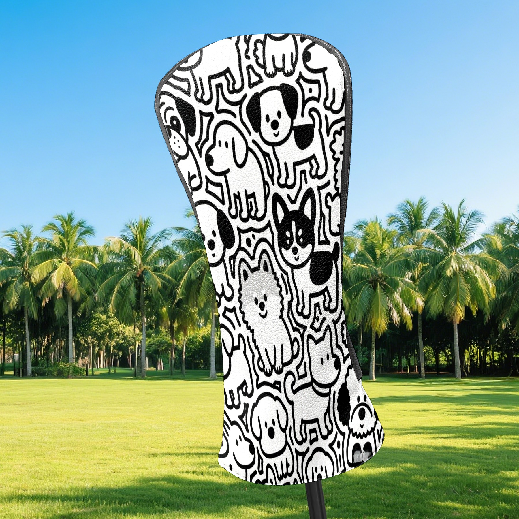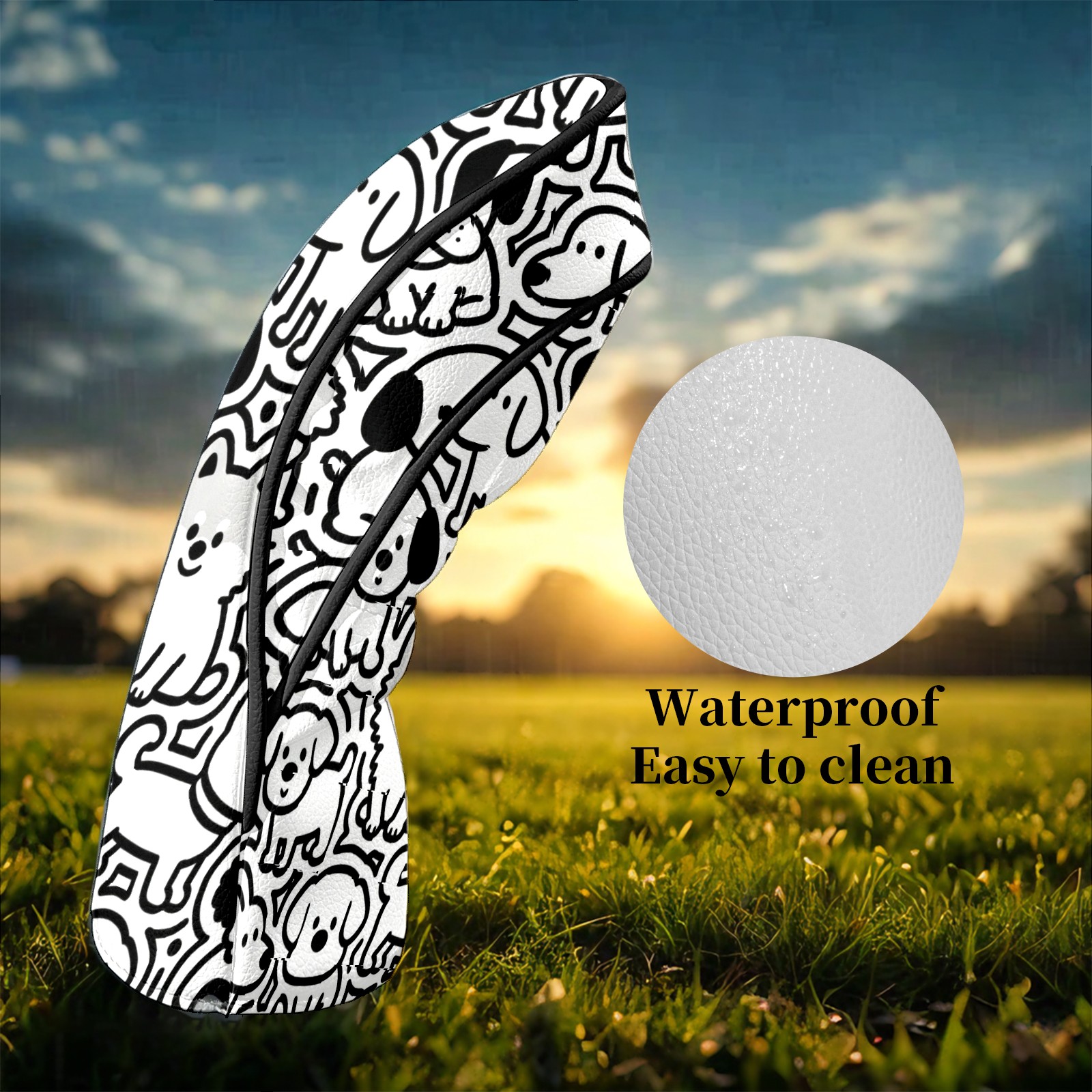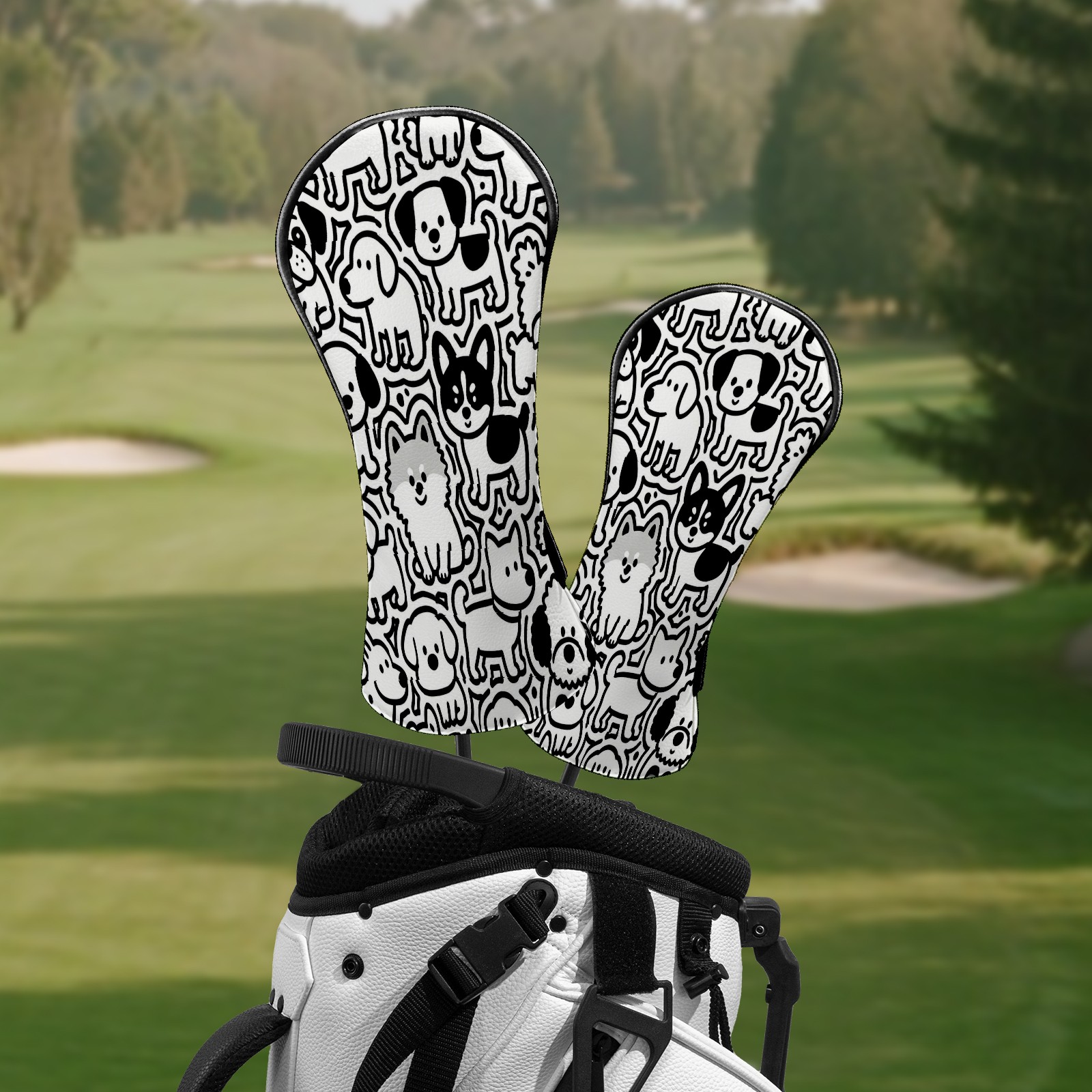 Golf Club Head Covers Puppy Pattern Mural Waterproof Leather Golf Head Covers for Men Women Driver Head Cover Fairway Headcover for Golf Lovers