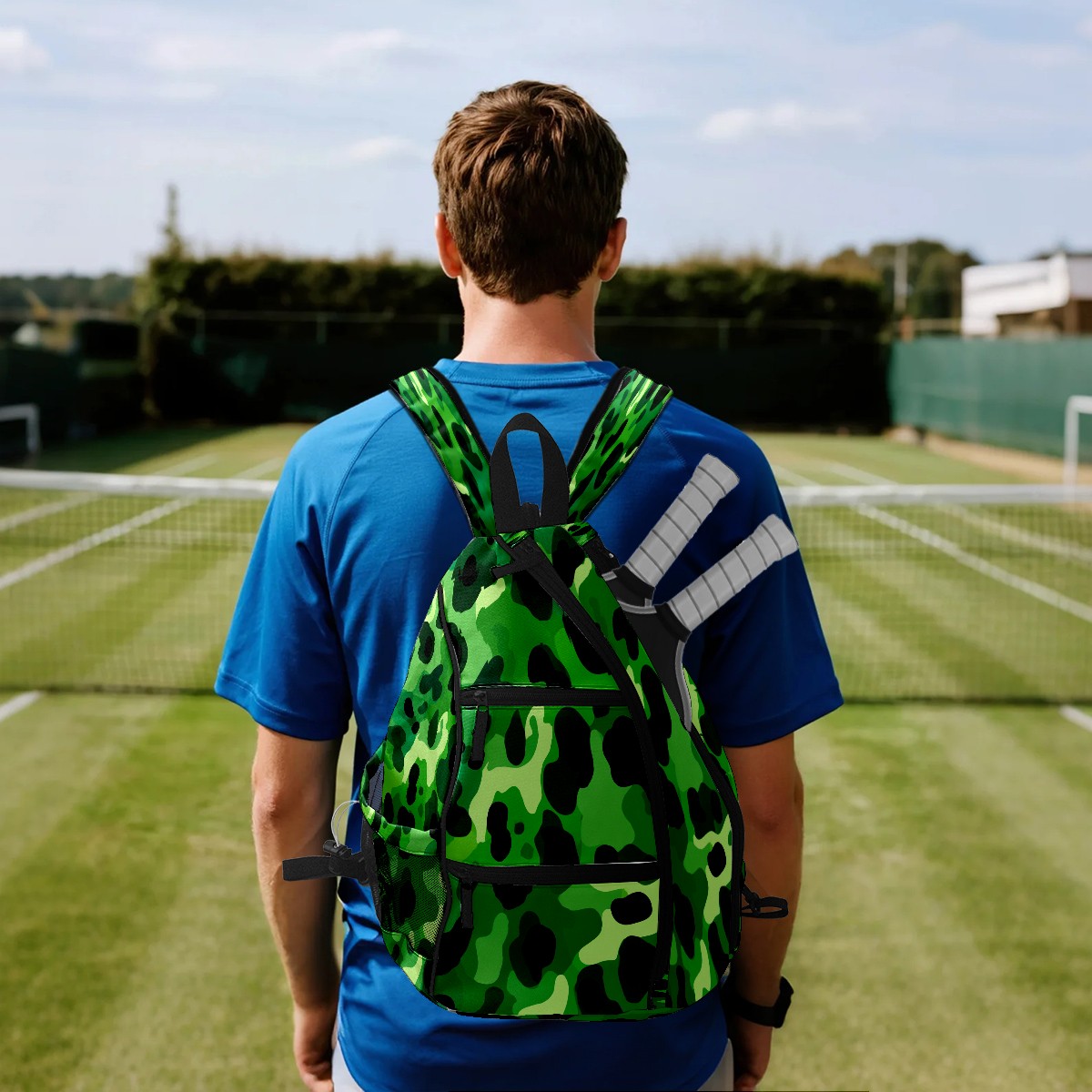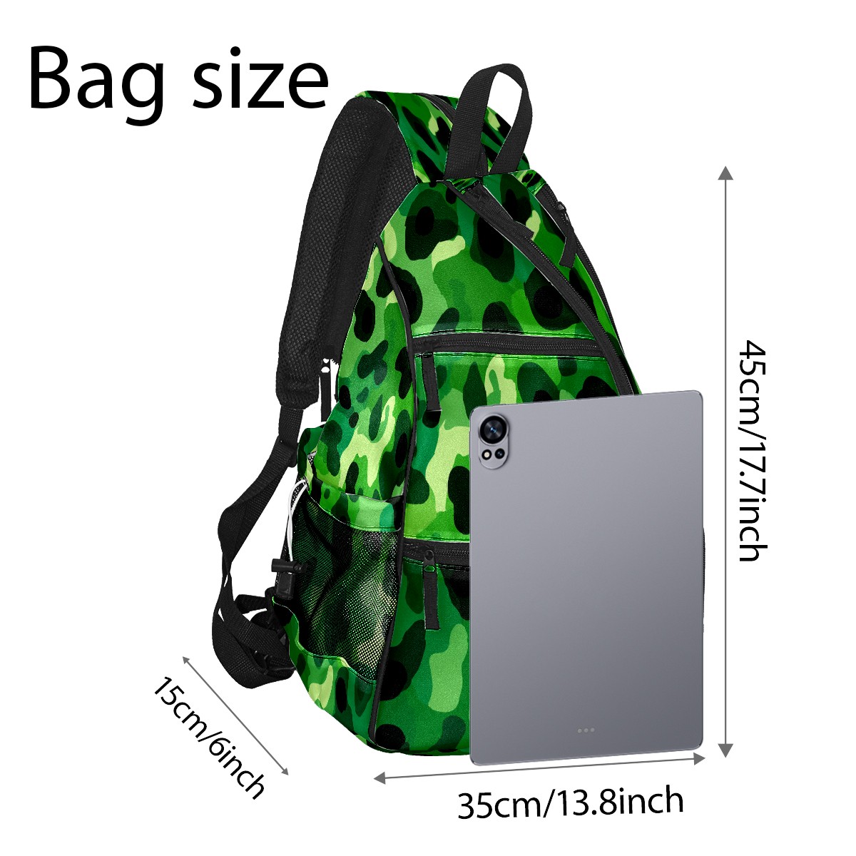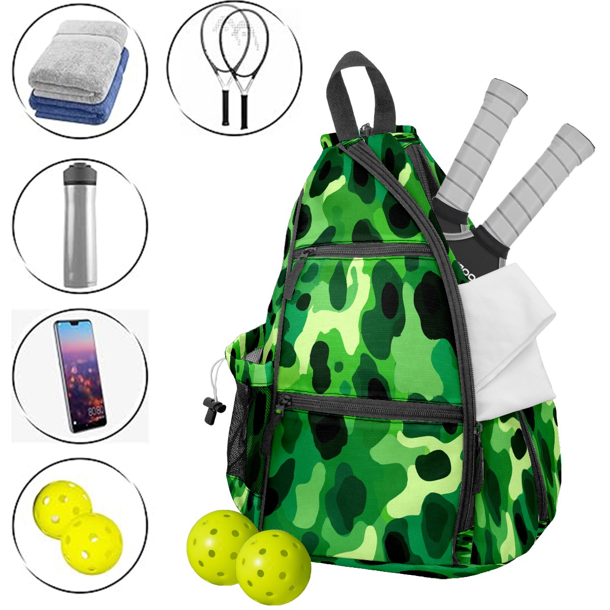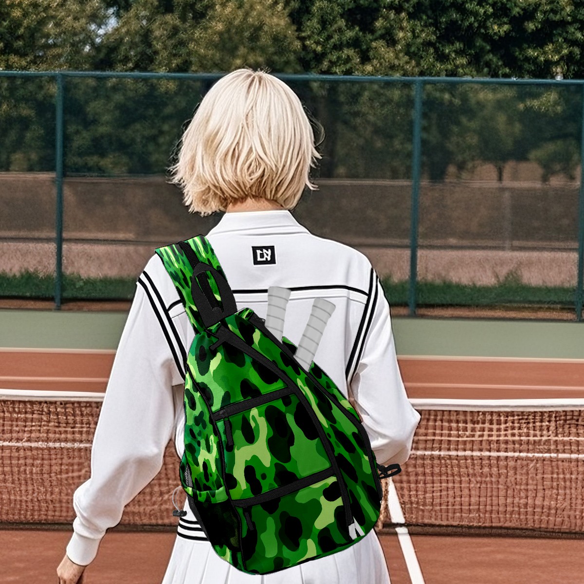 Pickleball Sling Bag for Women and Men - Backpack with Nylon Fabric/Woven Strap/Mesh Pocket/Fence Hook/Adjustable Bag Cool Leopard Green