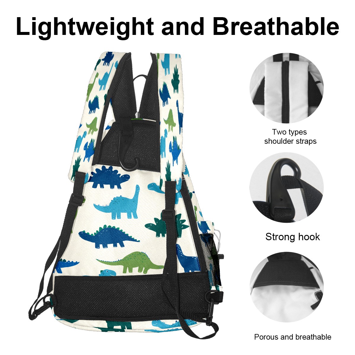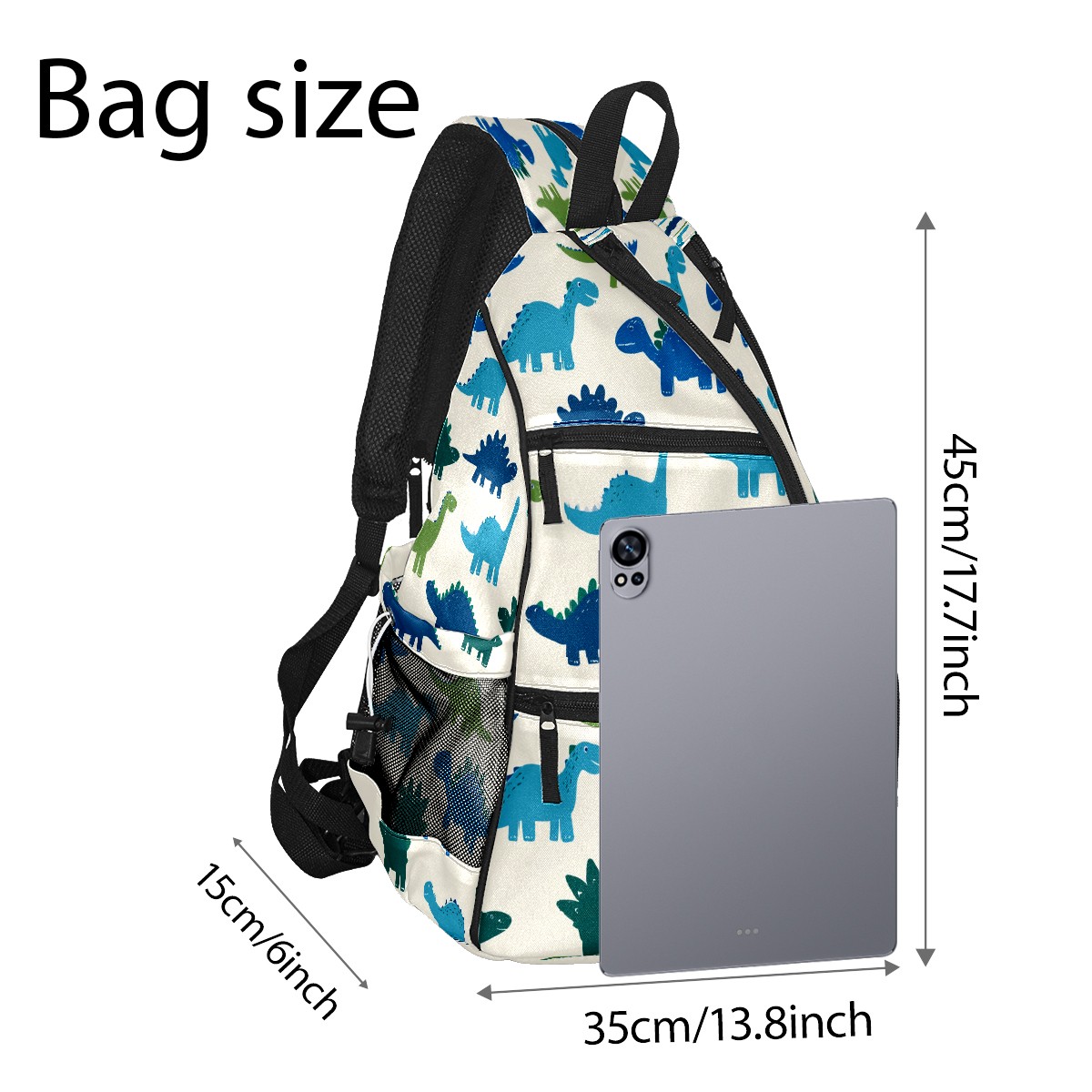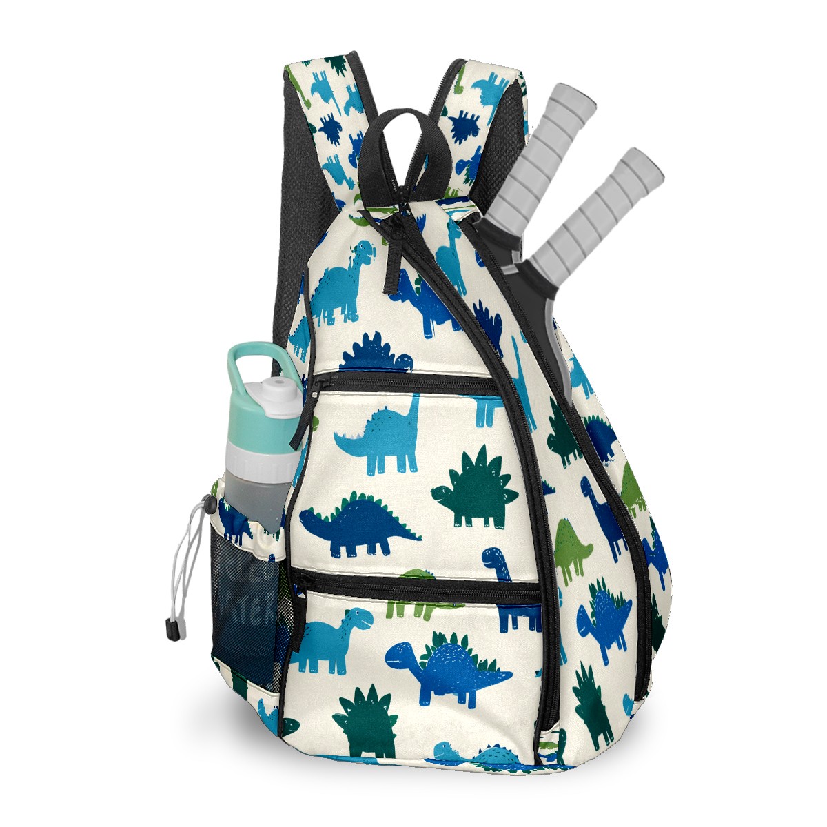 Pickleball Sling Bag for Women and Men - Backpack with Nylon Fabric/Woven Strap/Mesh Pocket/Fence Hook/Adjustable Bag Cute Dinosaur Blue