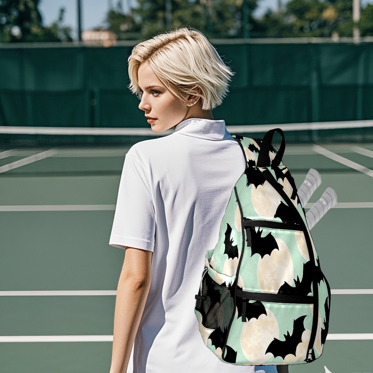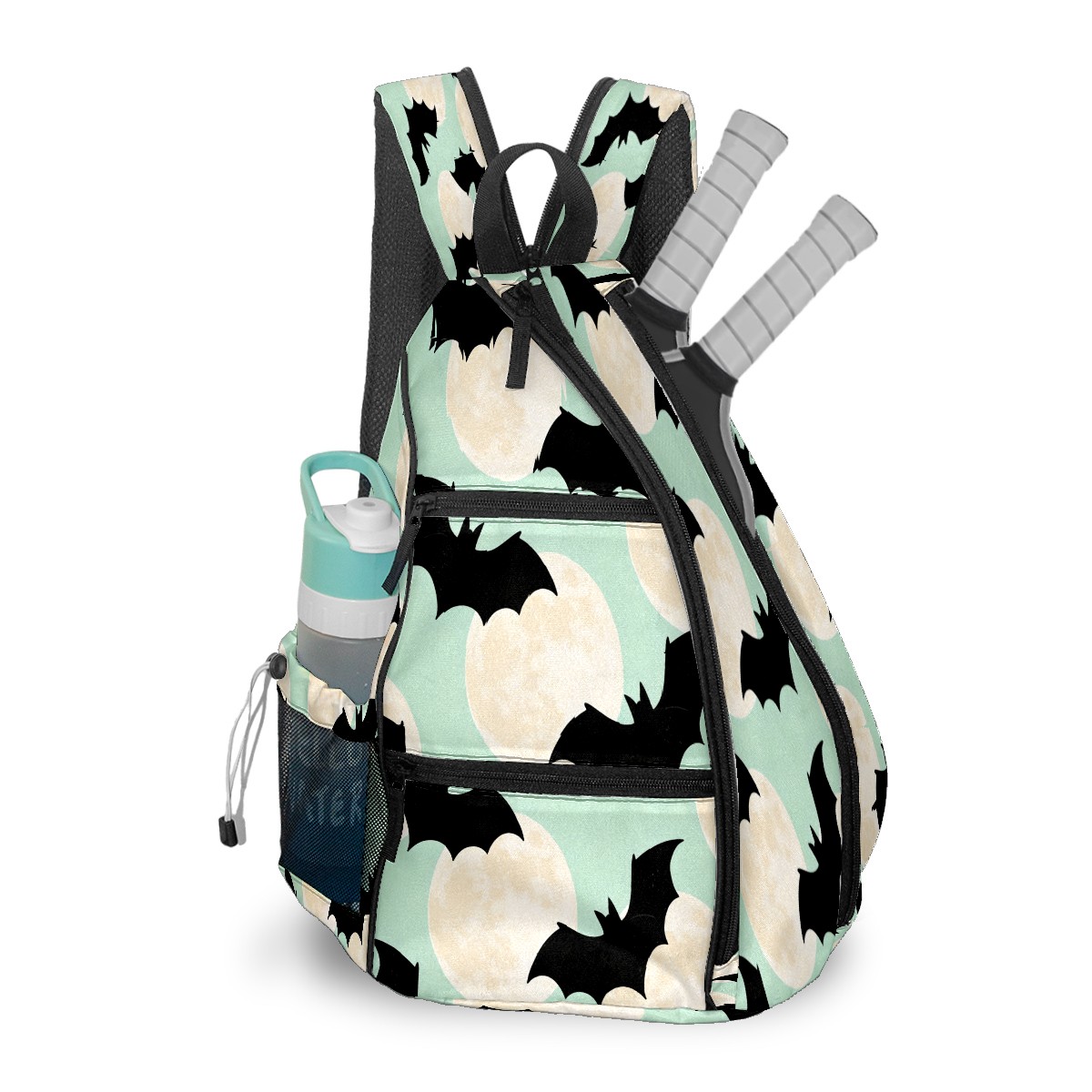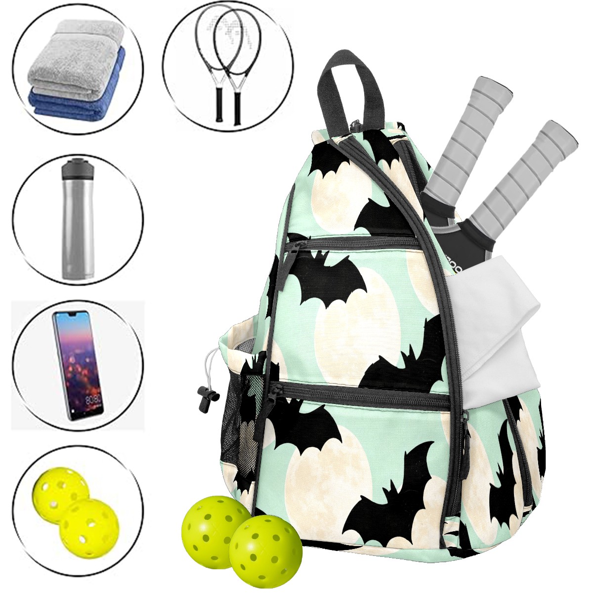 Pickleball Sling Bag for Women and Men - Backpack with Nylon Fabric/Woven Strap/Mesh Pocket/Fence Hook/Adjustable Bag Bat Moon