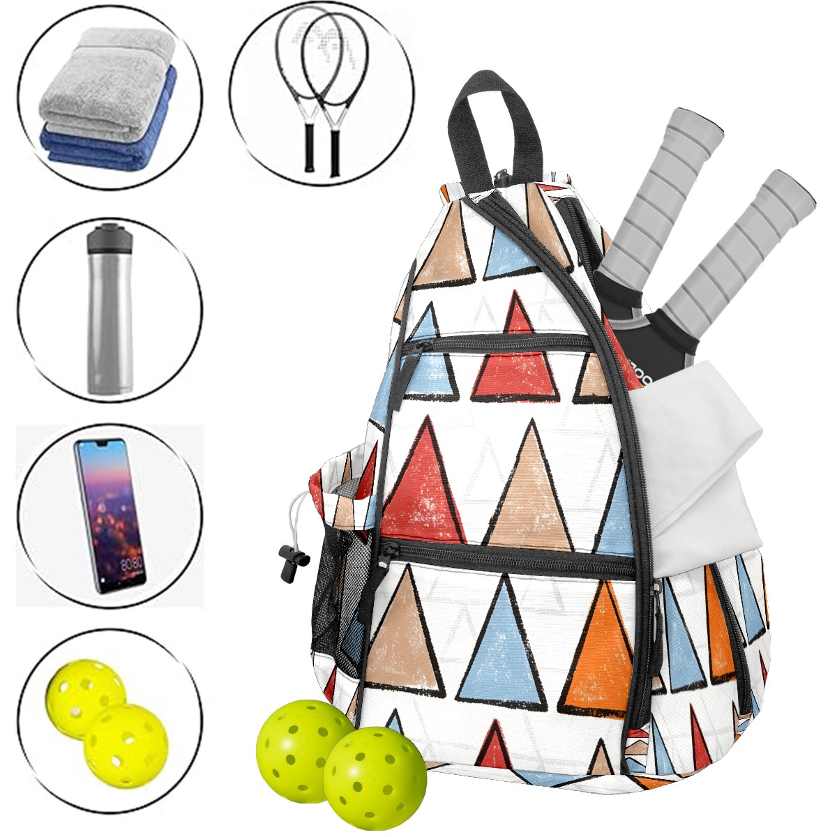 Pickleball Sling Bag for Women and Men - Backpack with Nylon Fabric/Woven Strap/Mesh Pocket/Fence Hook/Adjustable Bag Triangular Texture