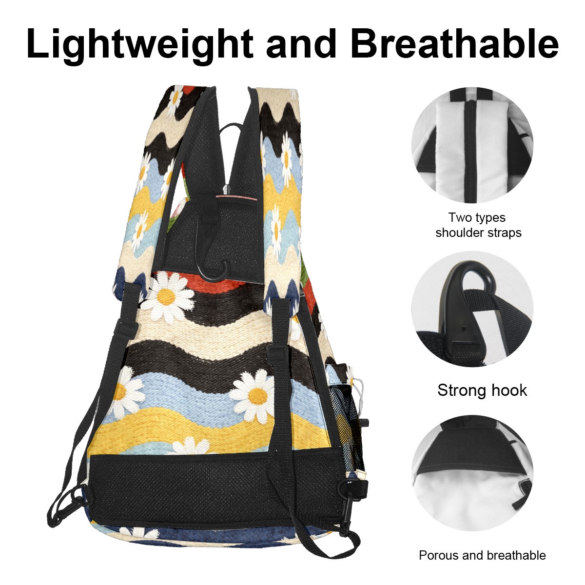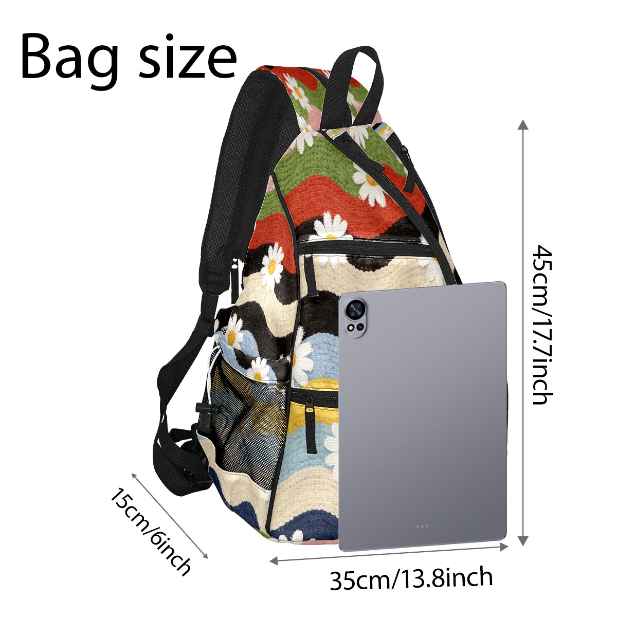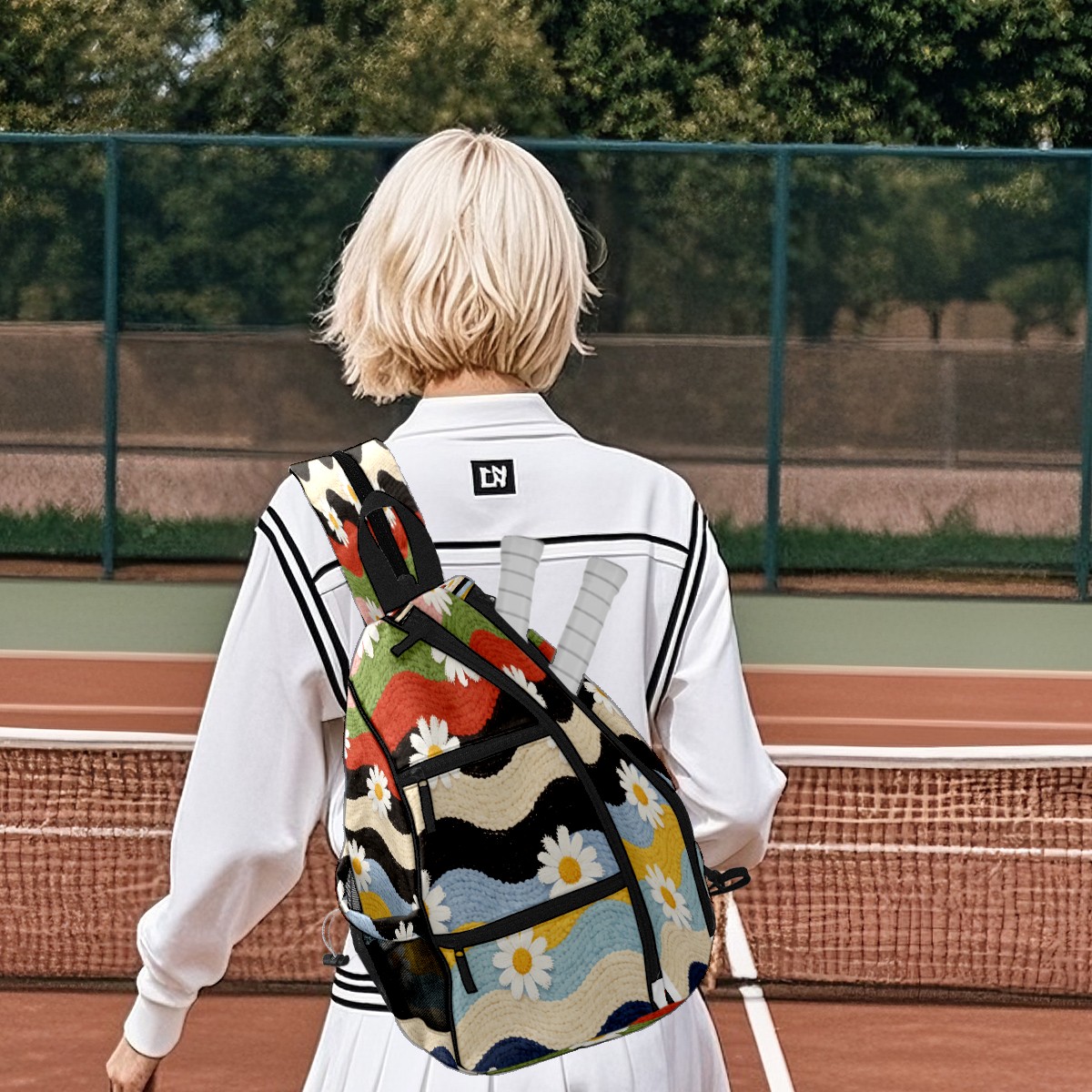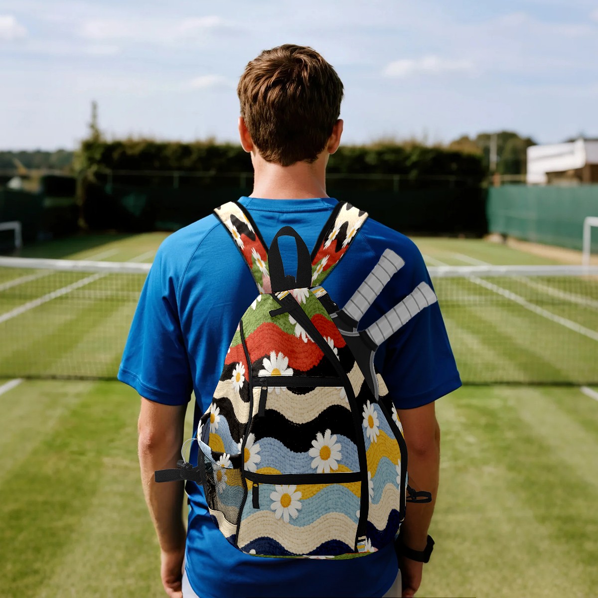 Pickleball Sling Bag for Women and Men - Backpack with Nylon Fabric/Woven Strap/Mesh Pocket/Fence Hook/Adjustable Bag Striped Daisy