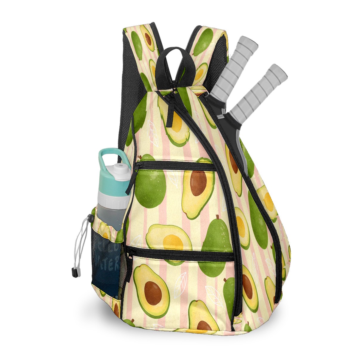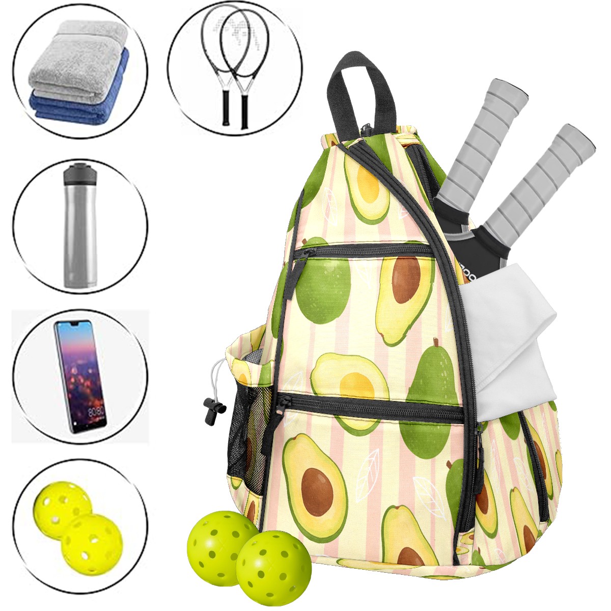 Pickleball Sling Bag for Women and Men - Backpack with Nylon Fabric/Woven Strap/Mesh Pocket/Fence Hook/Adjustable Bag Avocado Texture