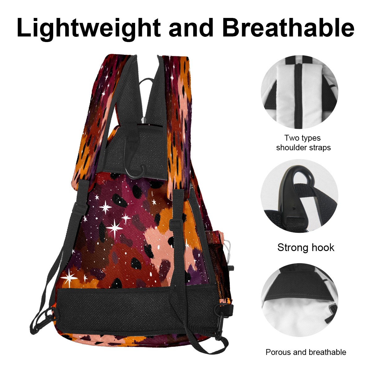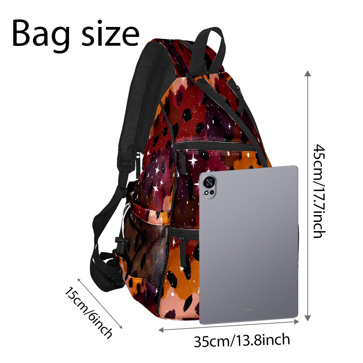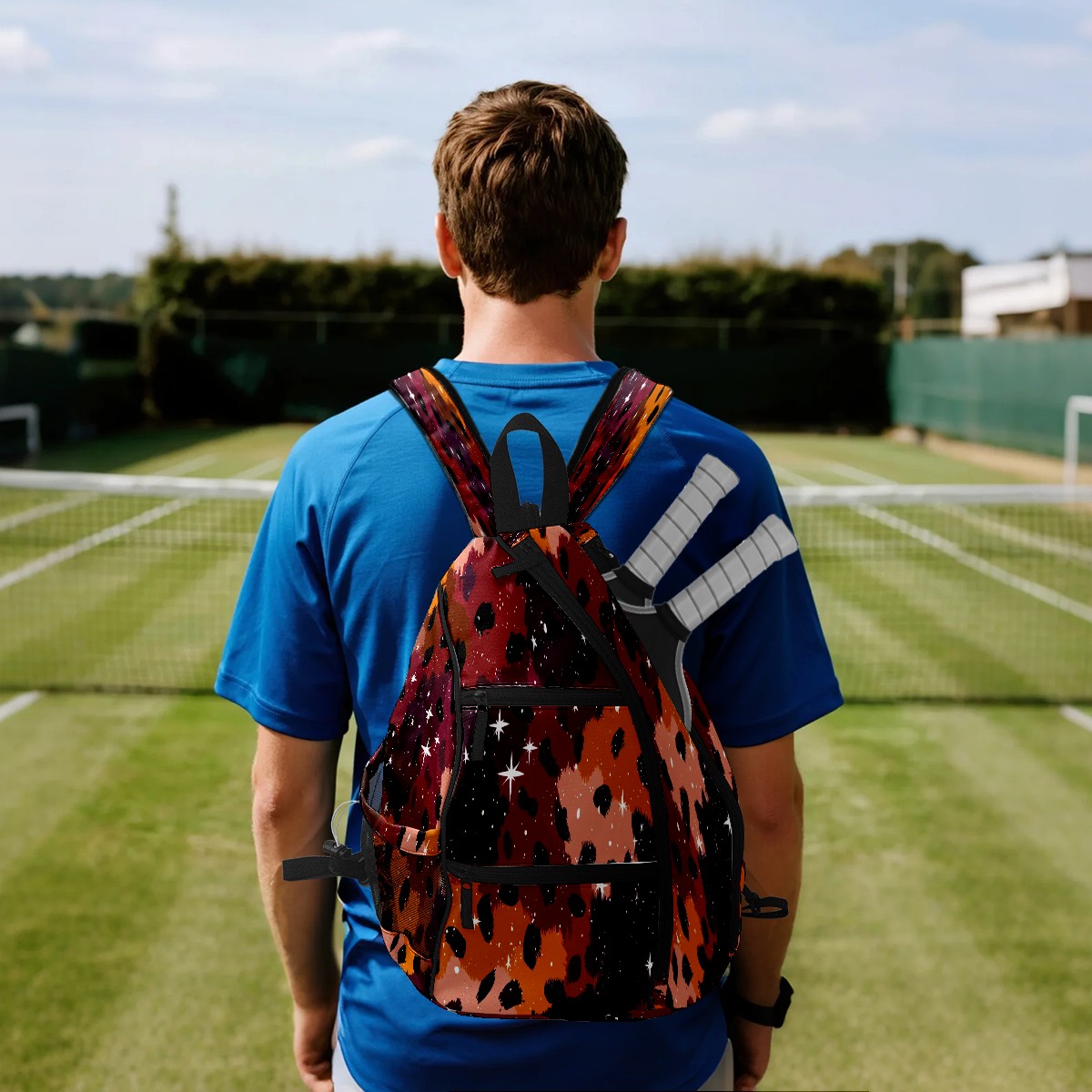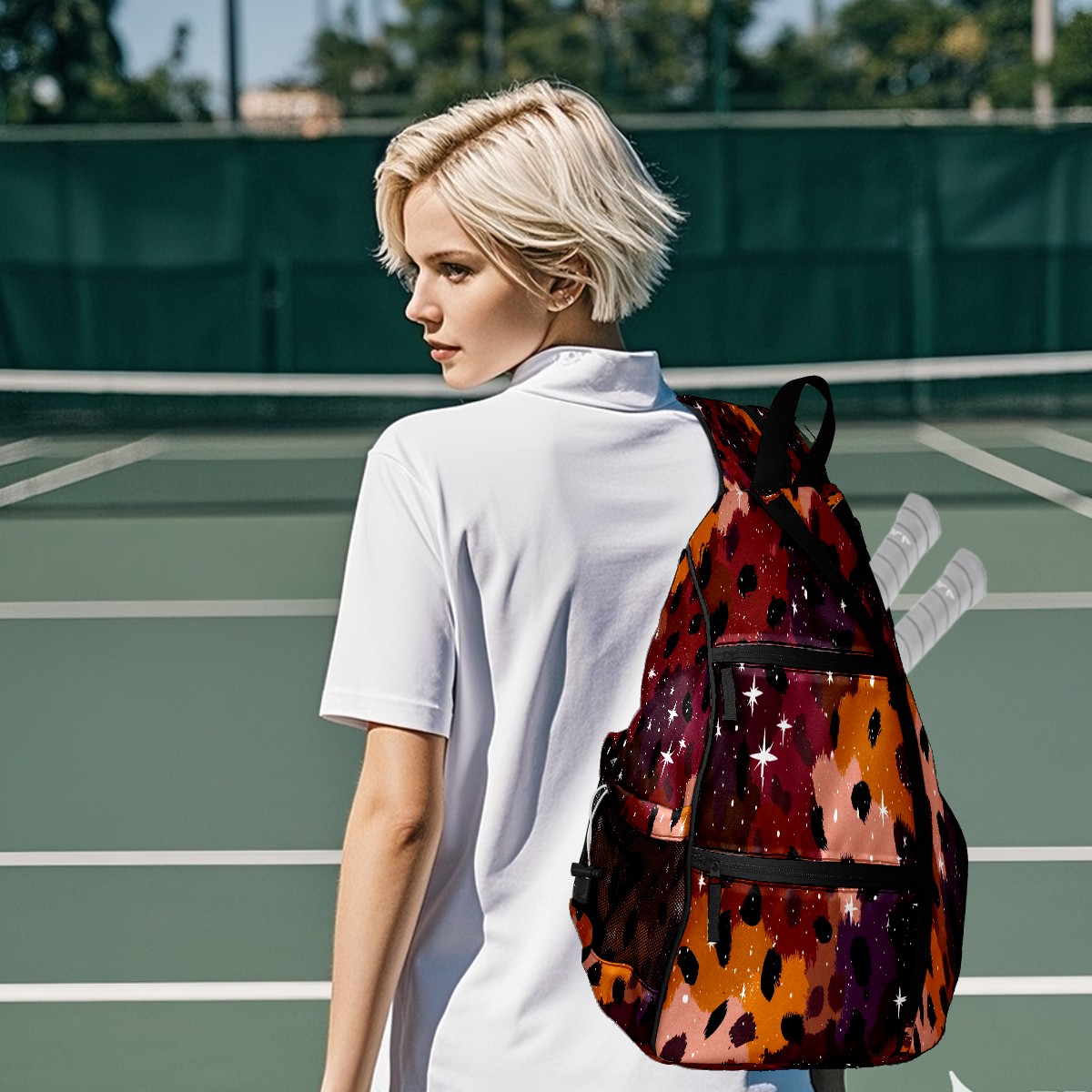 Pickleball Sling Bag for Women and Men - Backpack with Nylon Fabric/Woven Strap/Mesh Pocket/Fence Hook/Adjustable Bag Shiny Leopard Purple