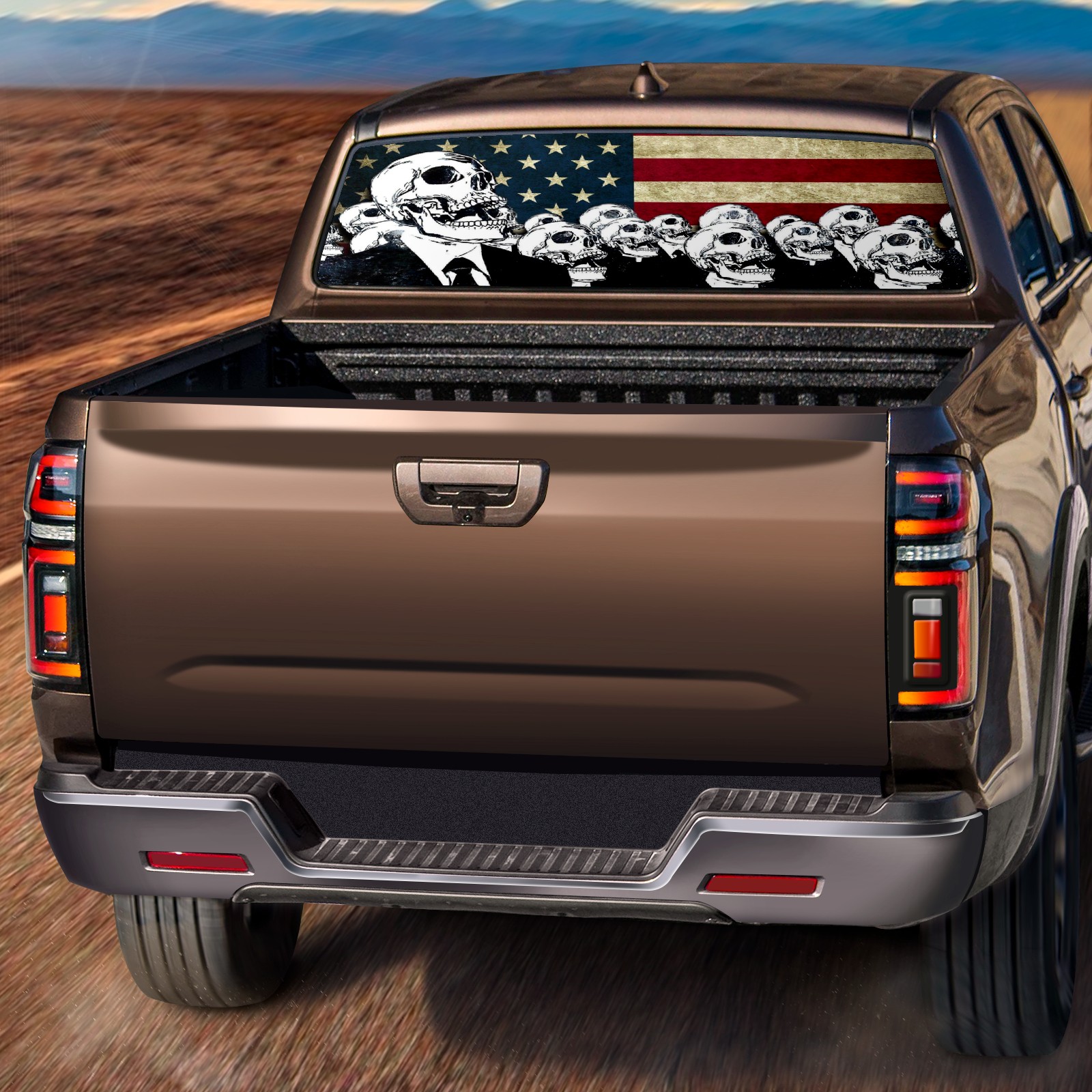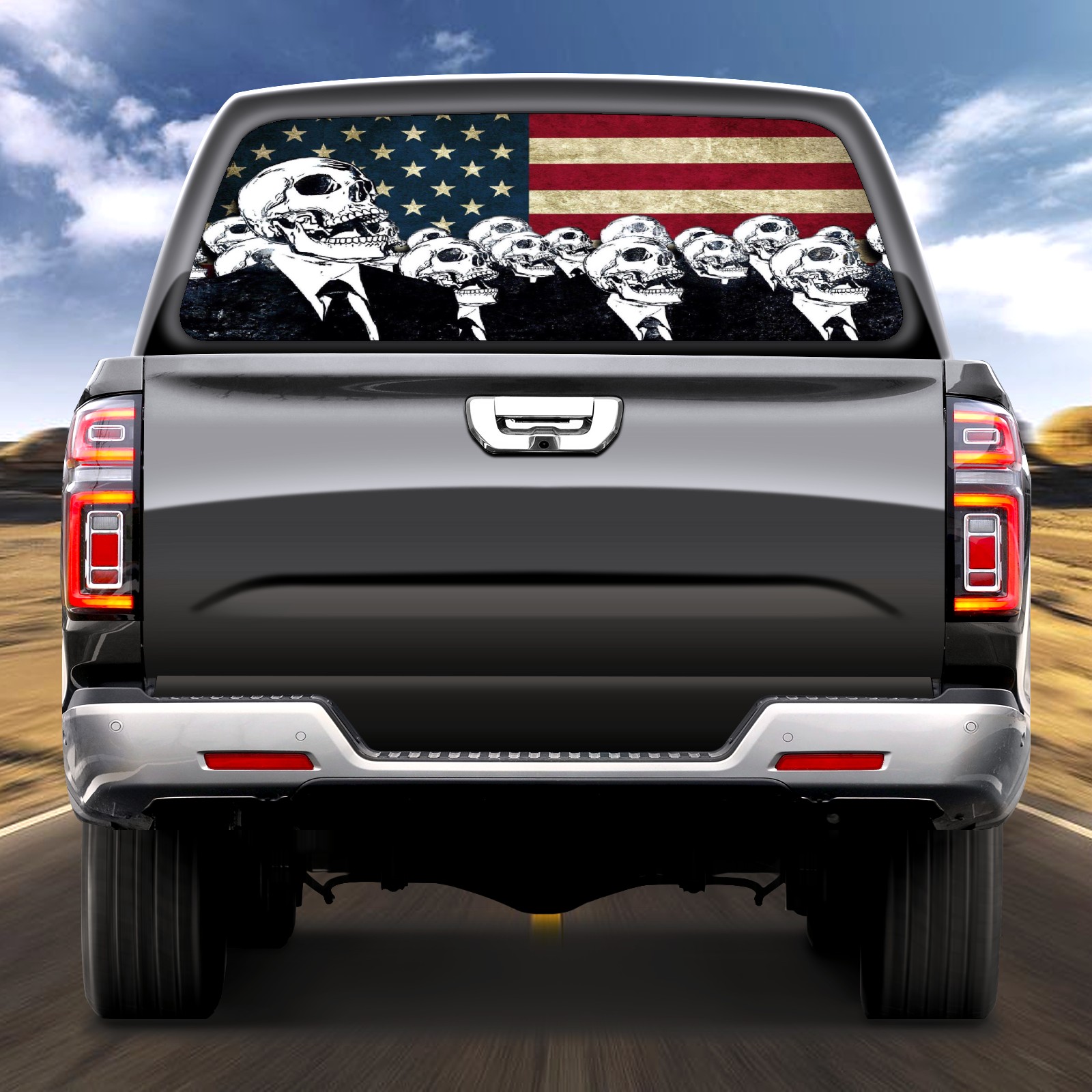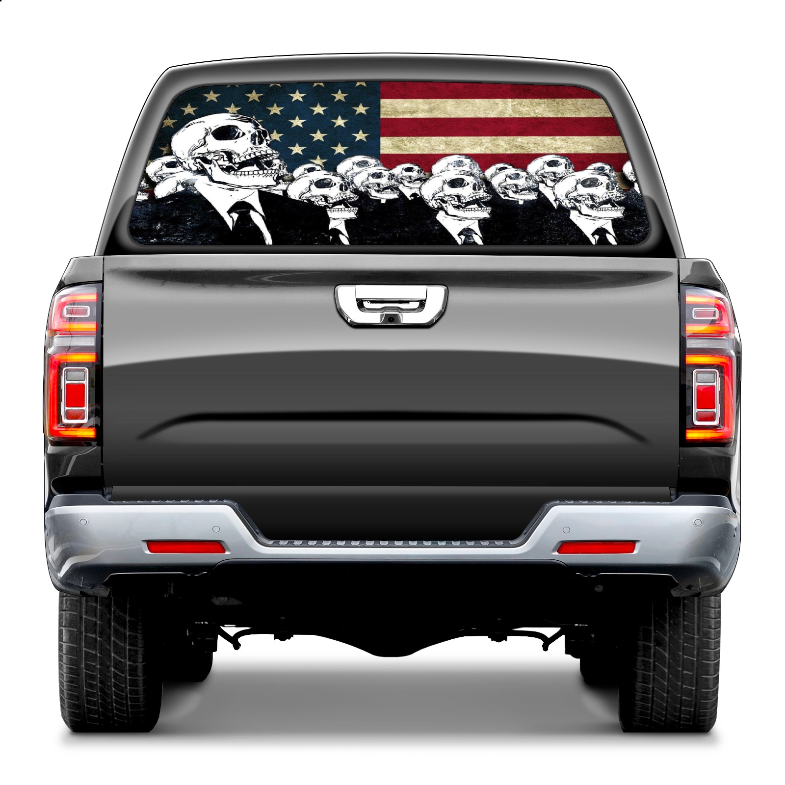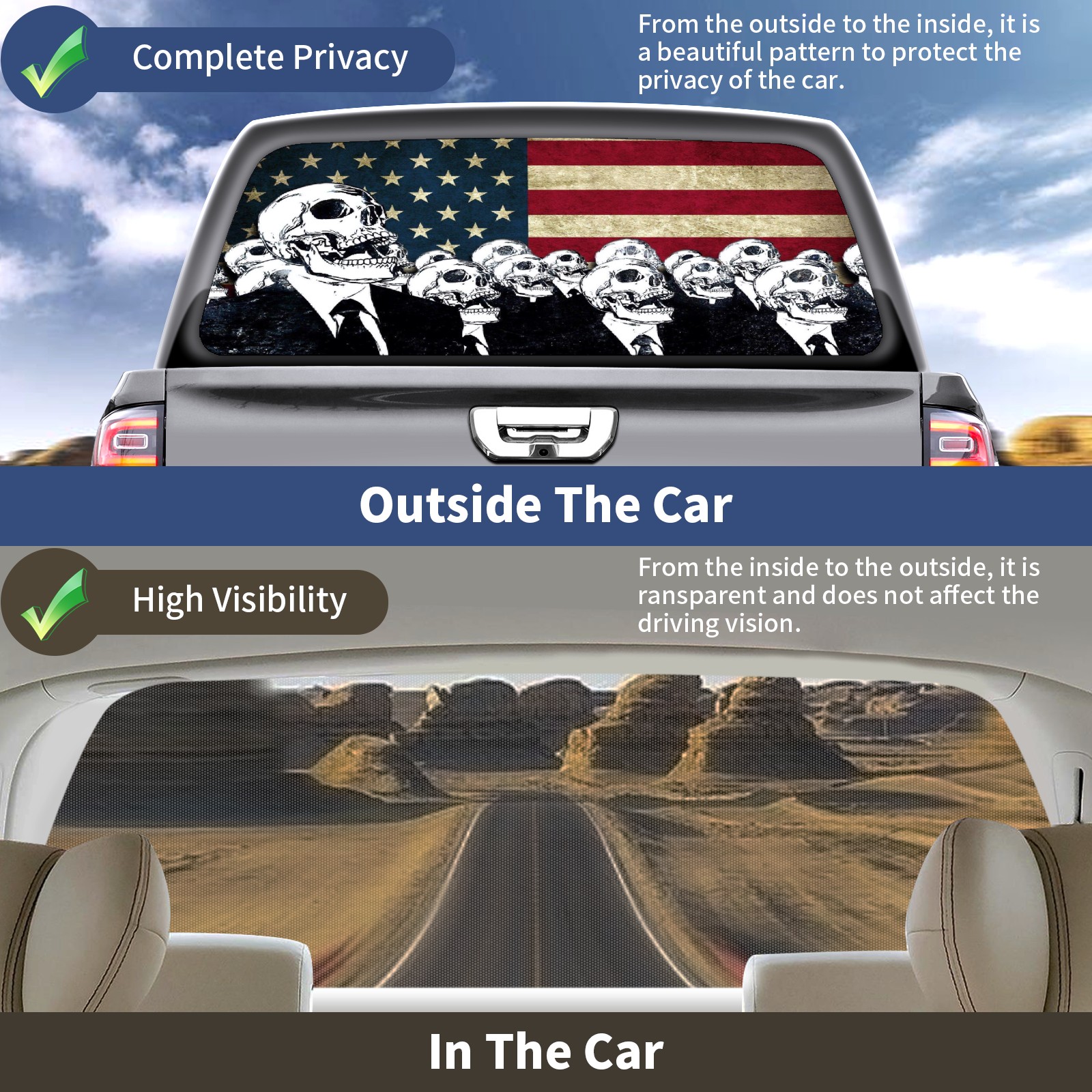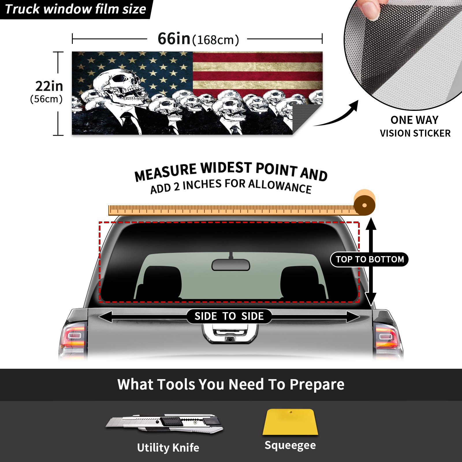 Pickup Car Window Stickers Decal Rear Window Decals for Trucks One Way Visual Waterproof Truck Back Window Tint Decal Graphic Perforated Vinyl Truck Stickers 66X 22inch American Flag Skull