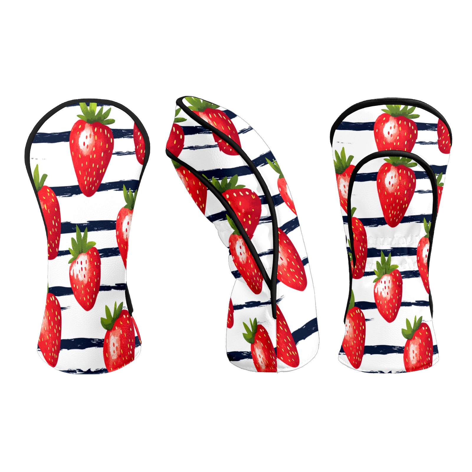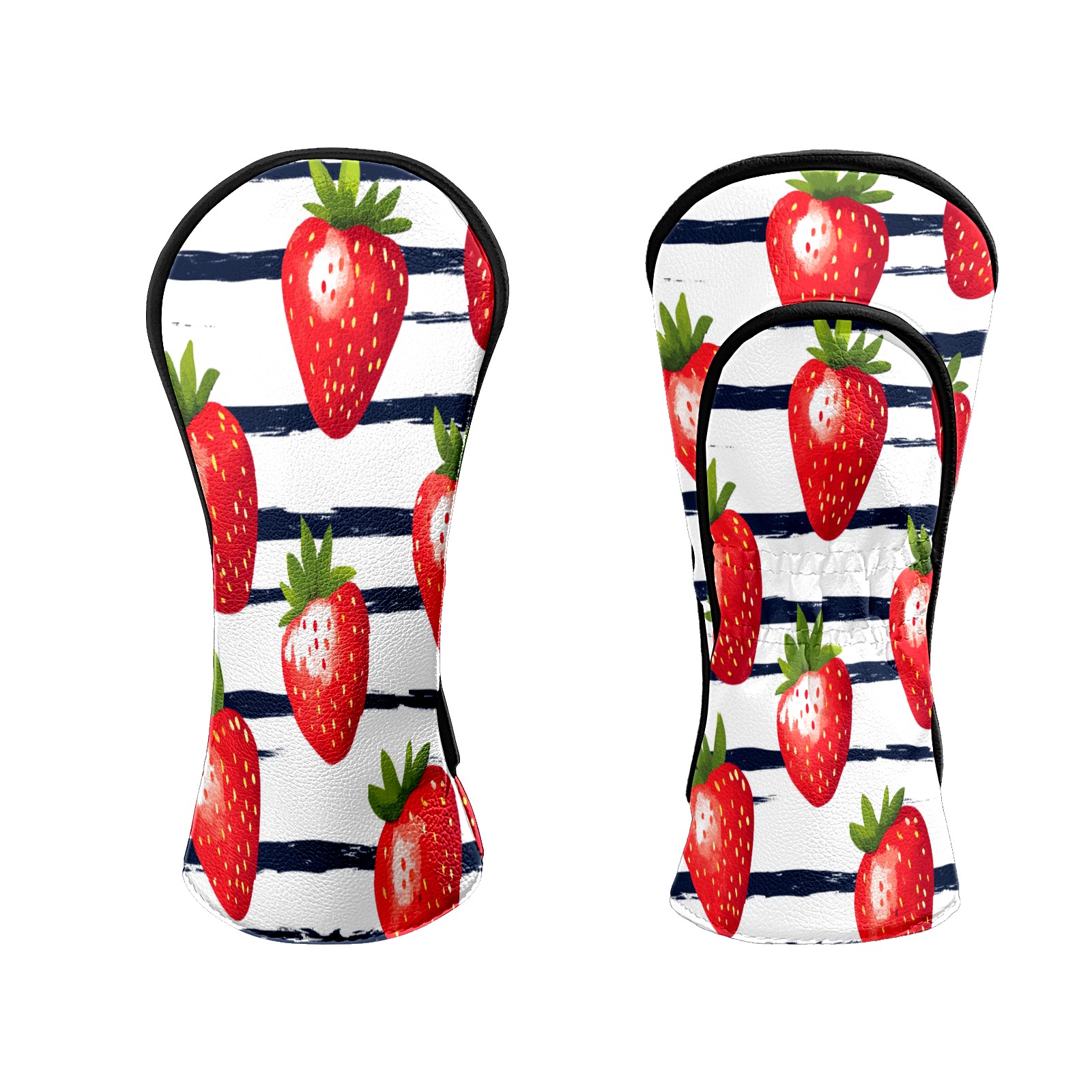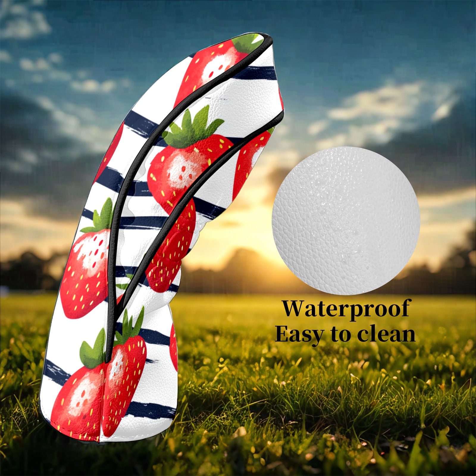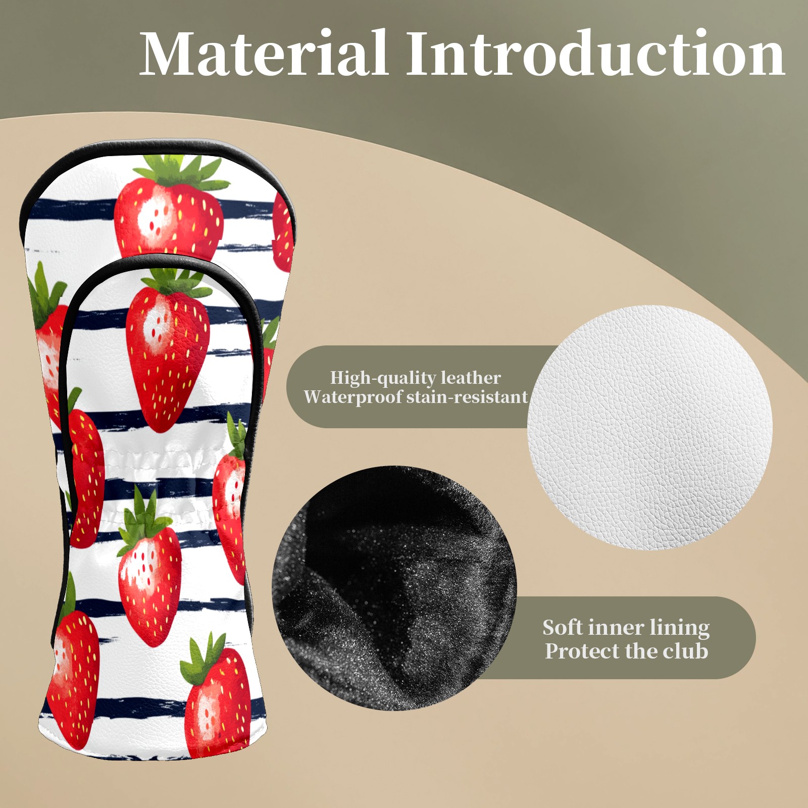 Golf Club Headcovers Waterproof PU Leather, Striped Strawberry Pattern Design for Driver Fairway Woods Headcover, Inspired Gifts for Men Women