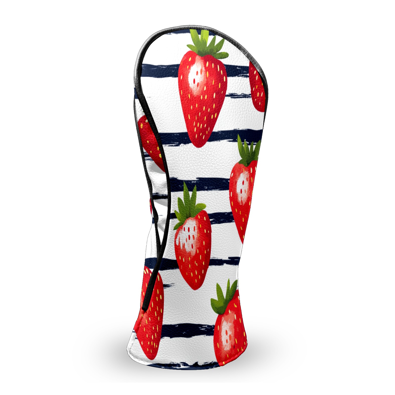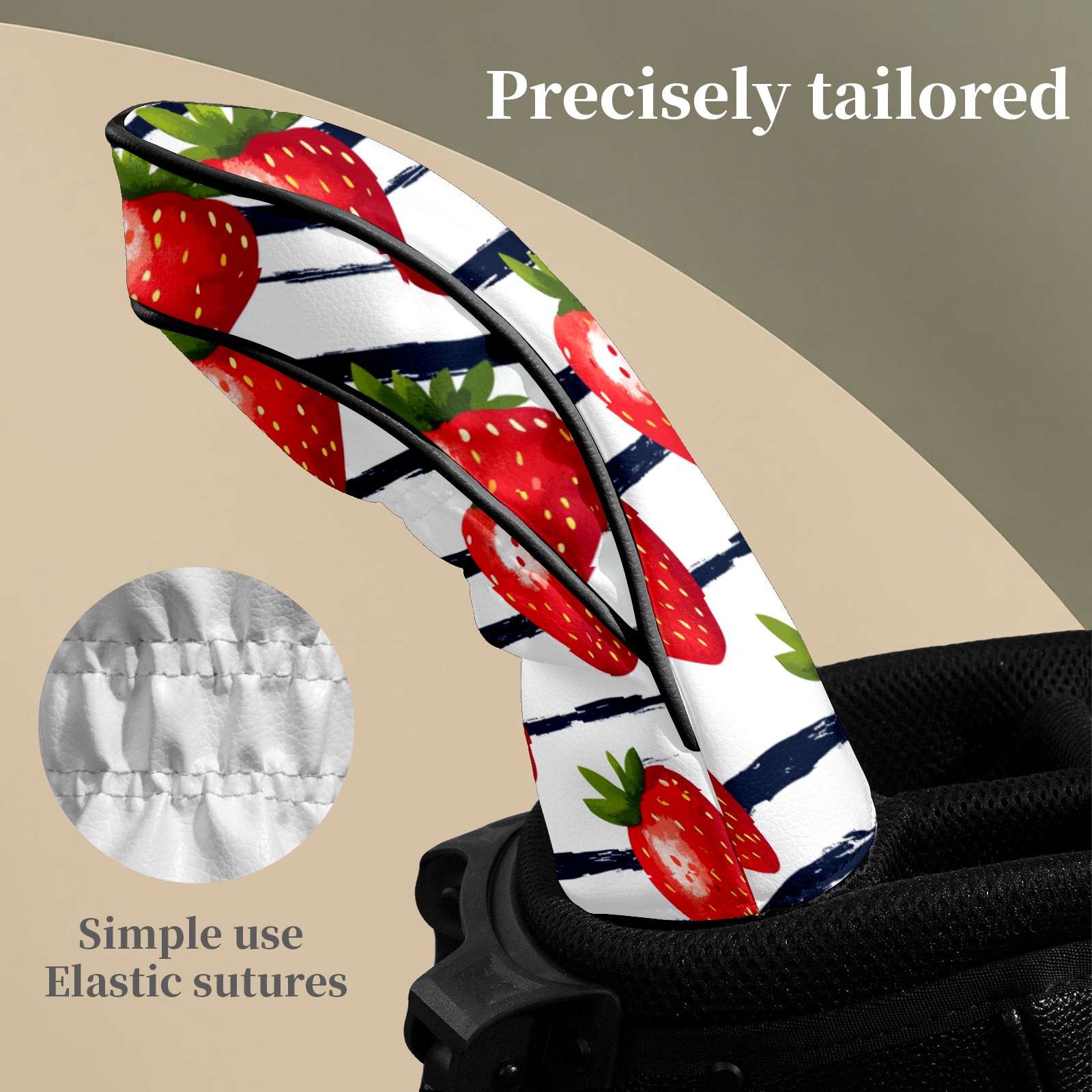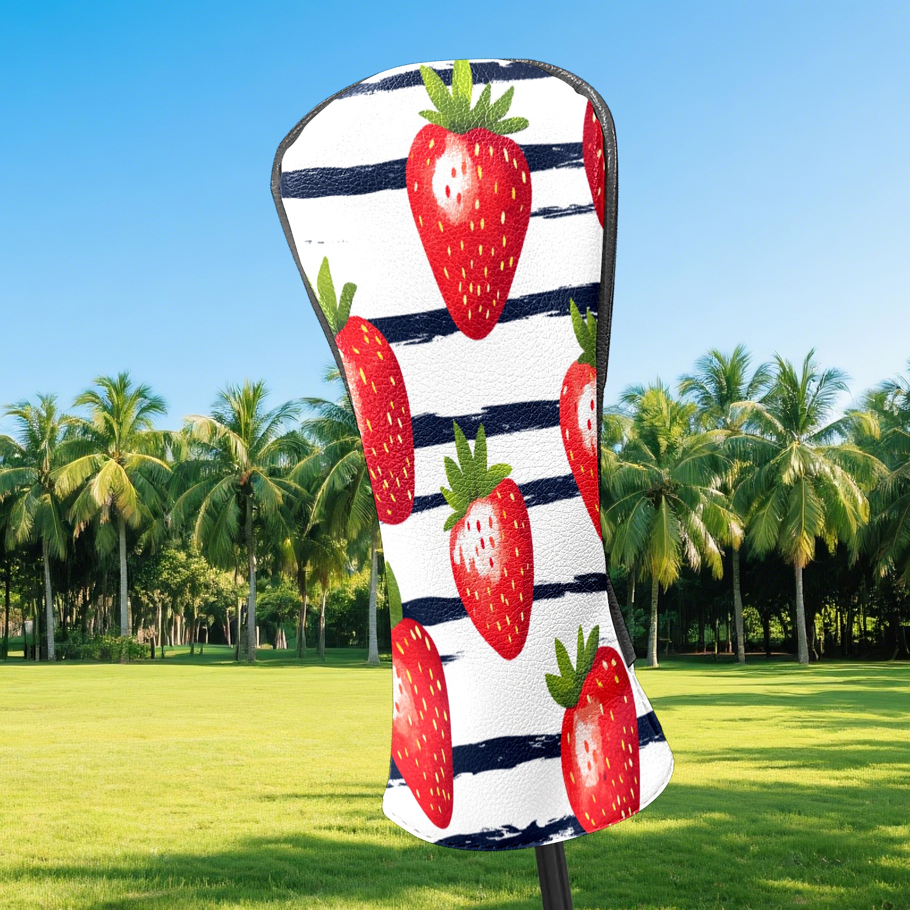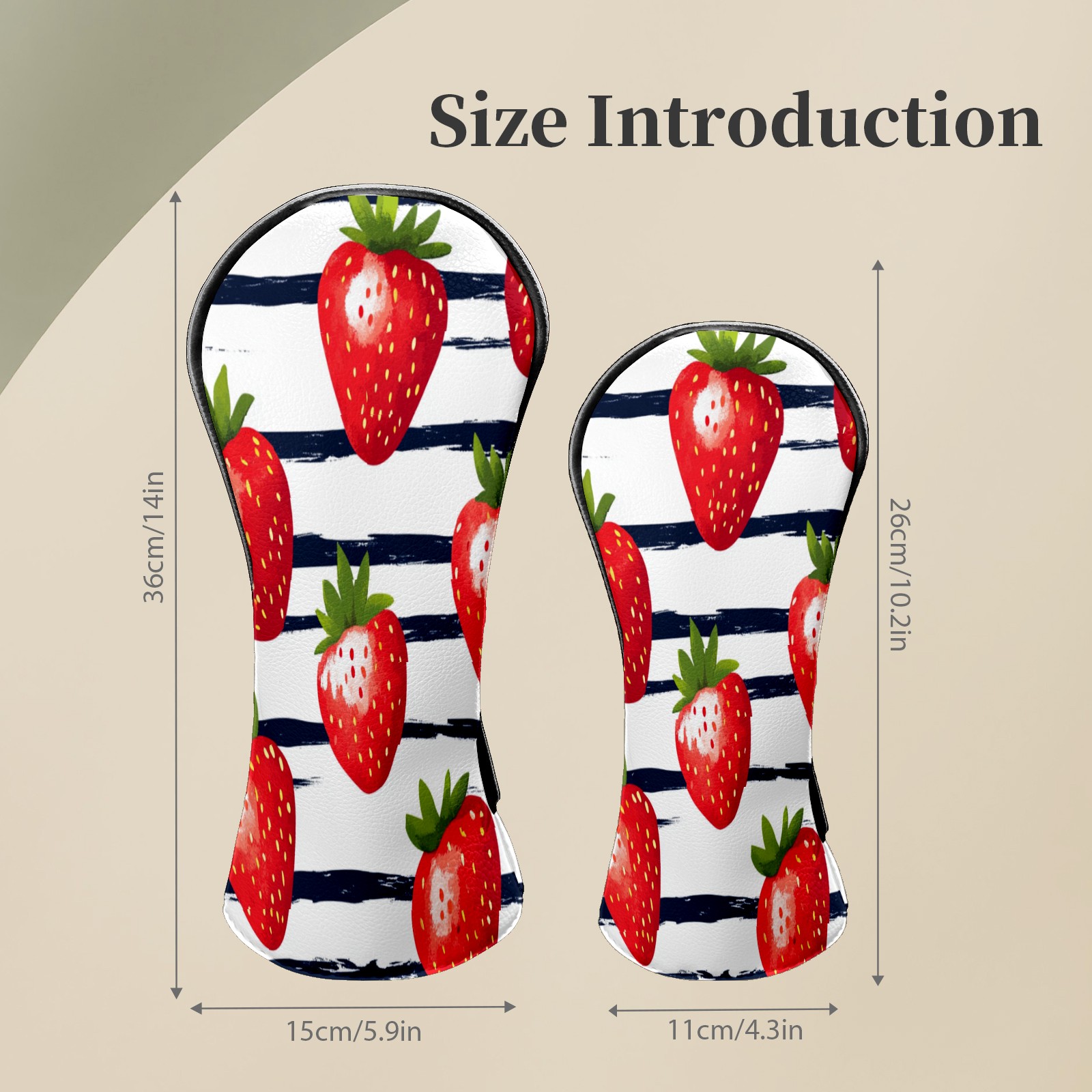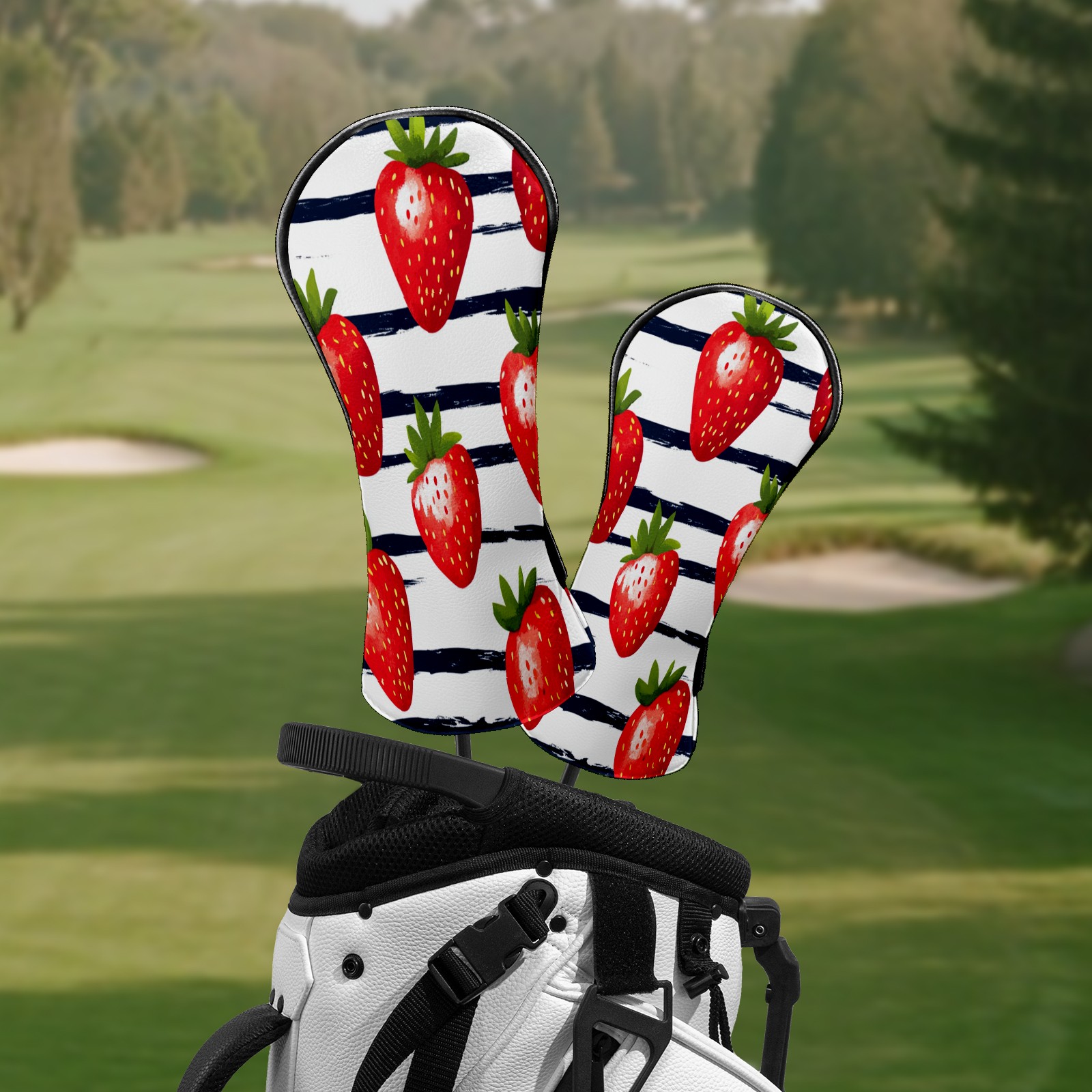 Golf Club Headcovers Waterproof PU Leather, Striped Strawberry Pattern Design for Driver Fairway Woods Headcover, Inspired Gifts for Men Women