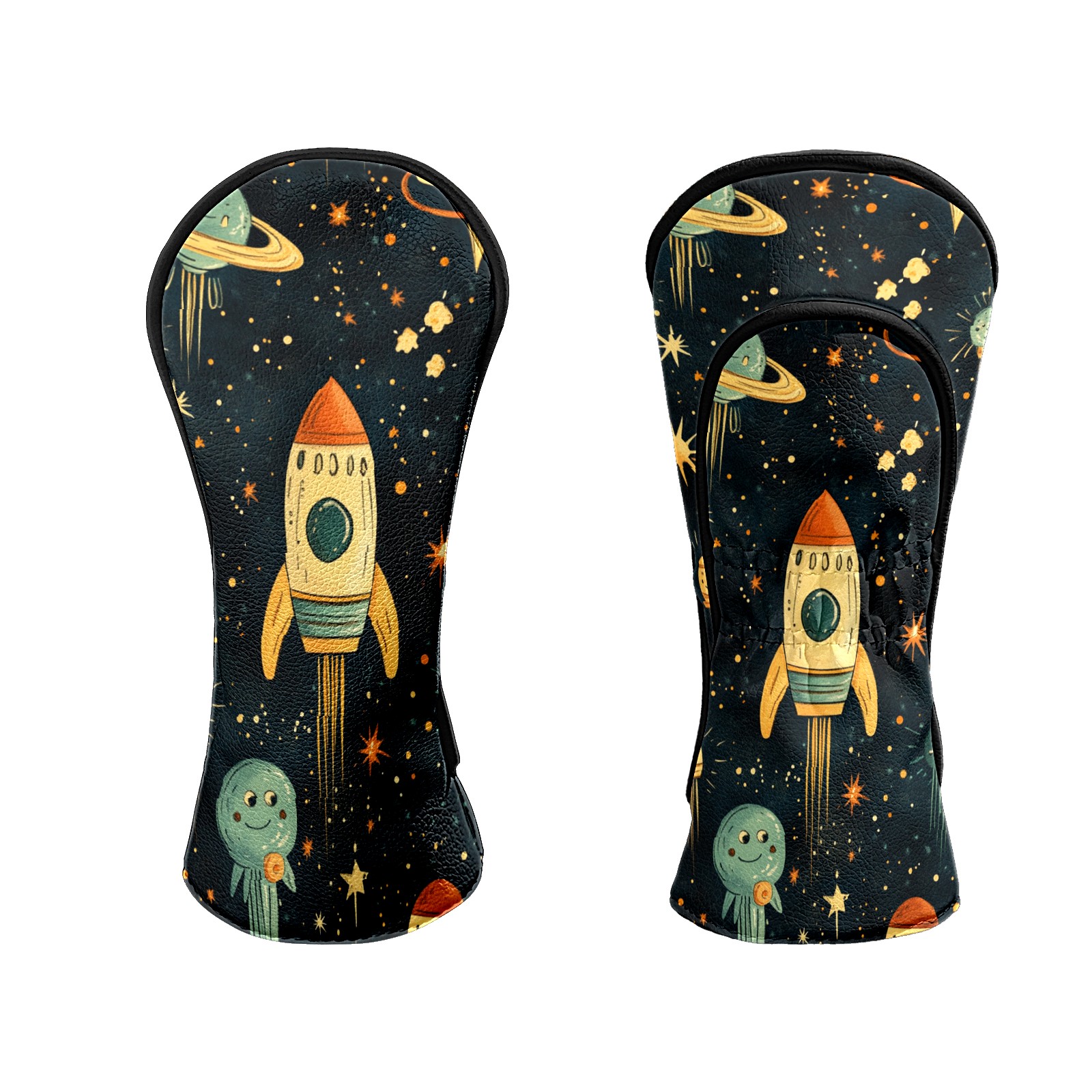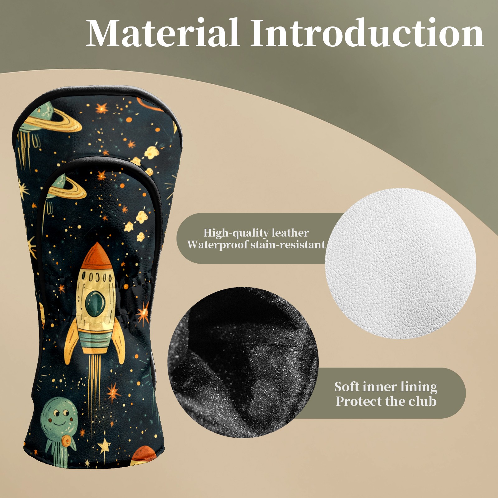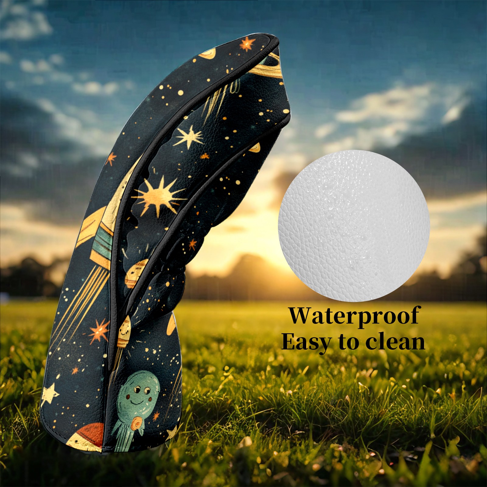 Golf Club Headcovers Waterproof PU Leather, Blue Planet Pattern Design for Driver Fairway Woods Headcover, Inspired Gifts for Men Women