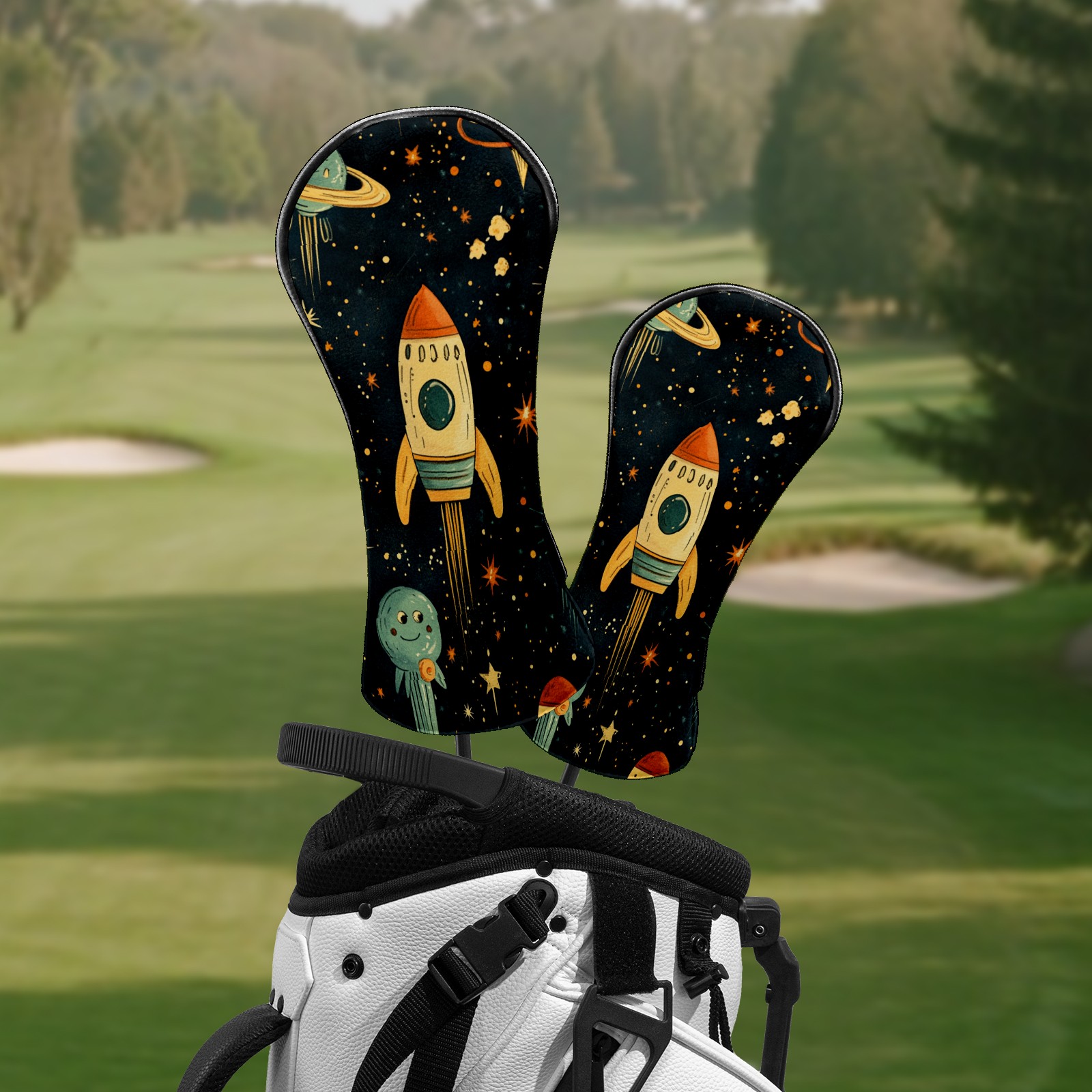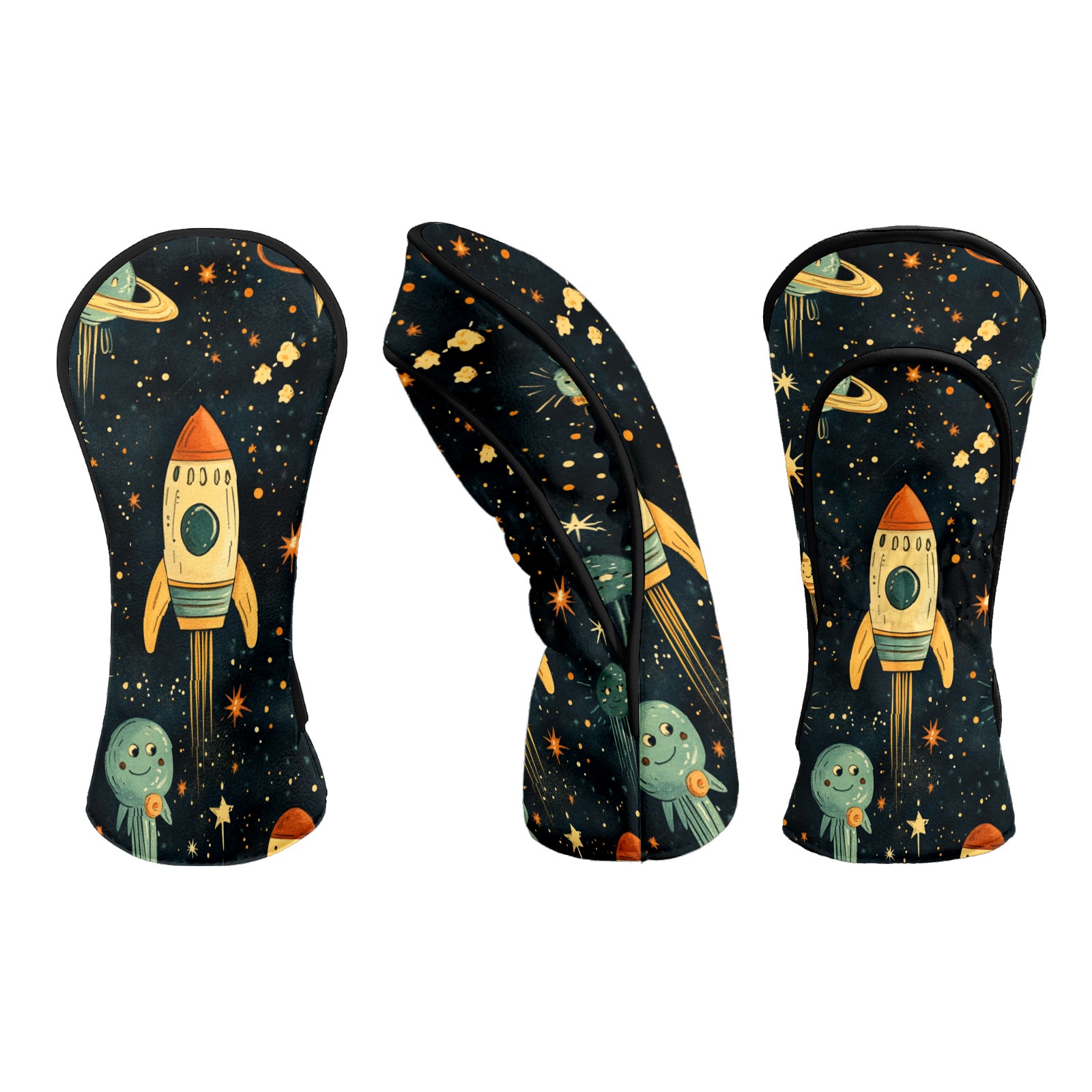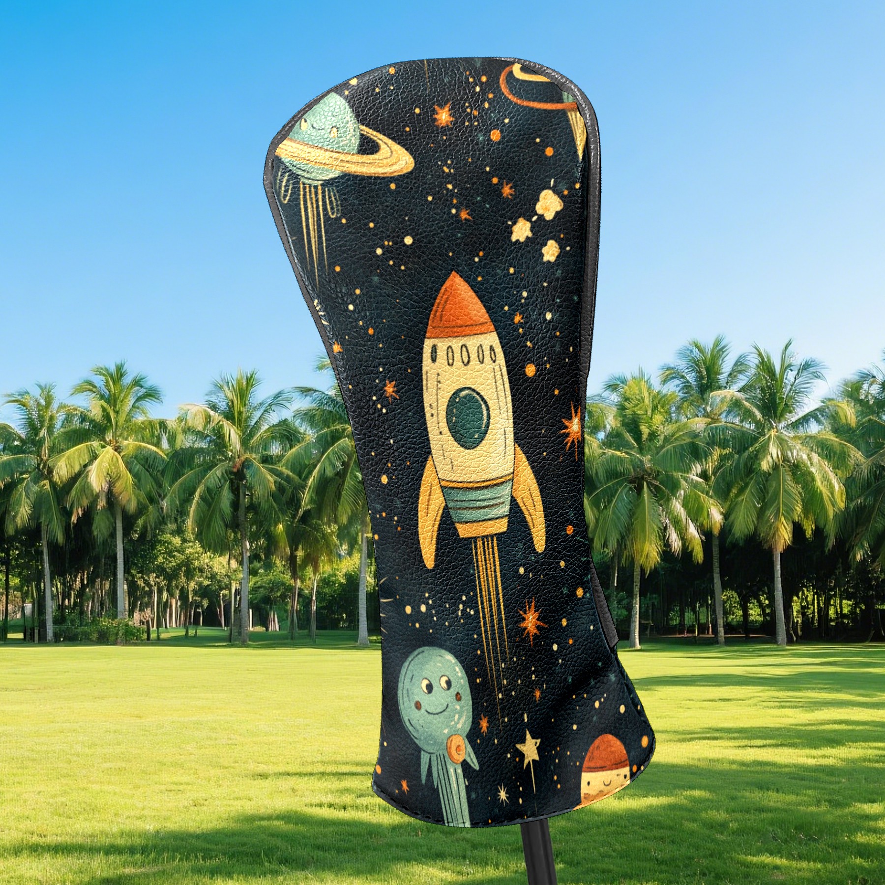 Golf Club Headcovers Waterproof PU Leather, Blue Planet Pattern Design for Driver Fairway Woods Headcover, Inspired Gifts for Men Women