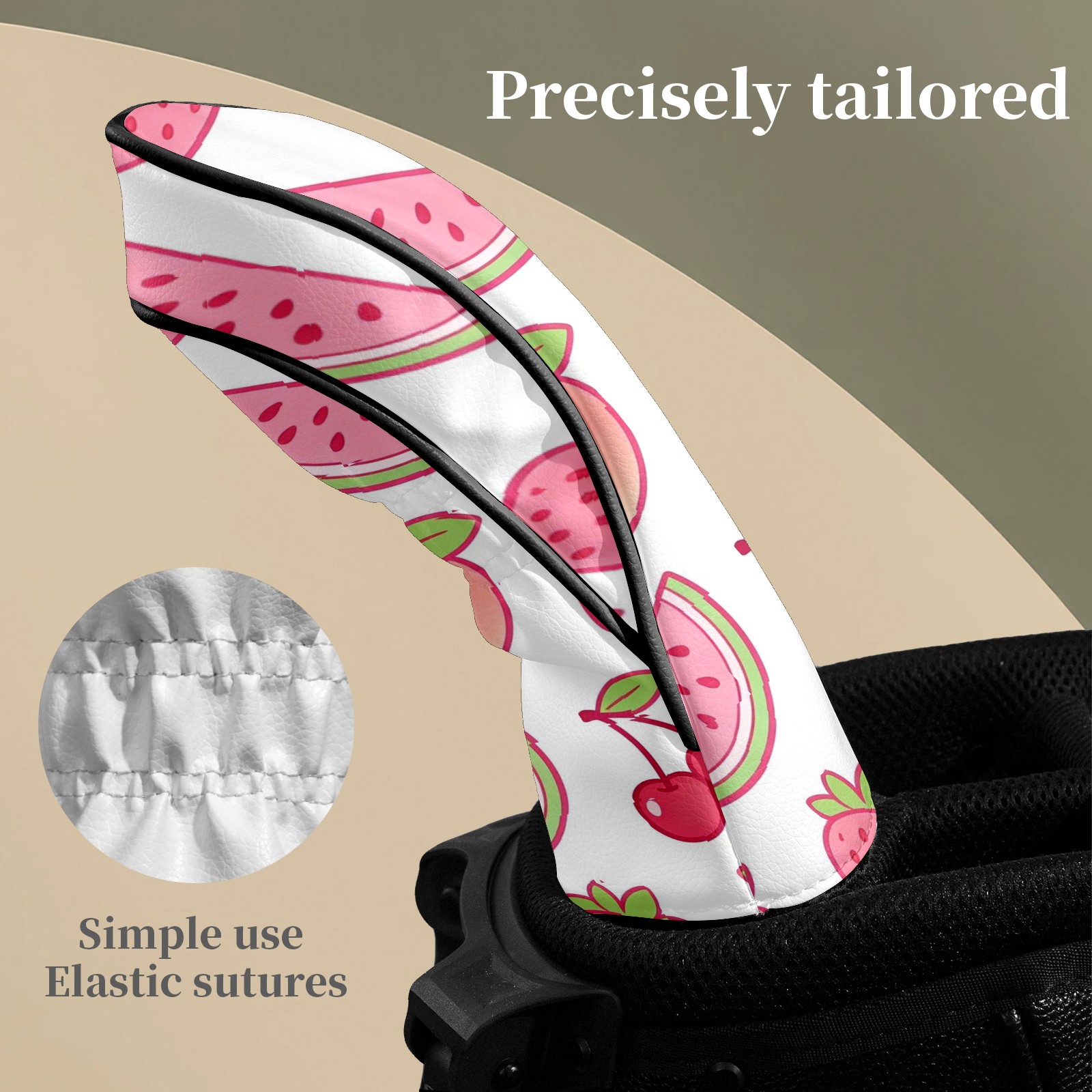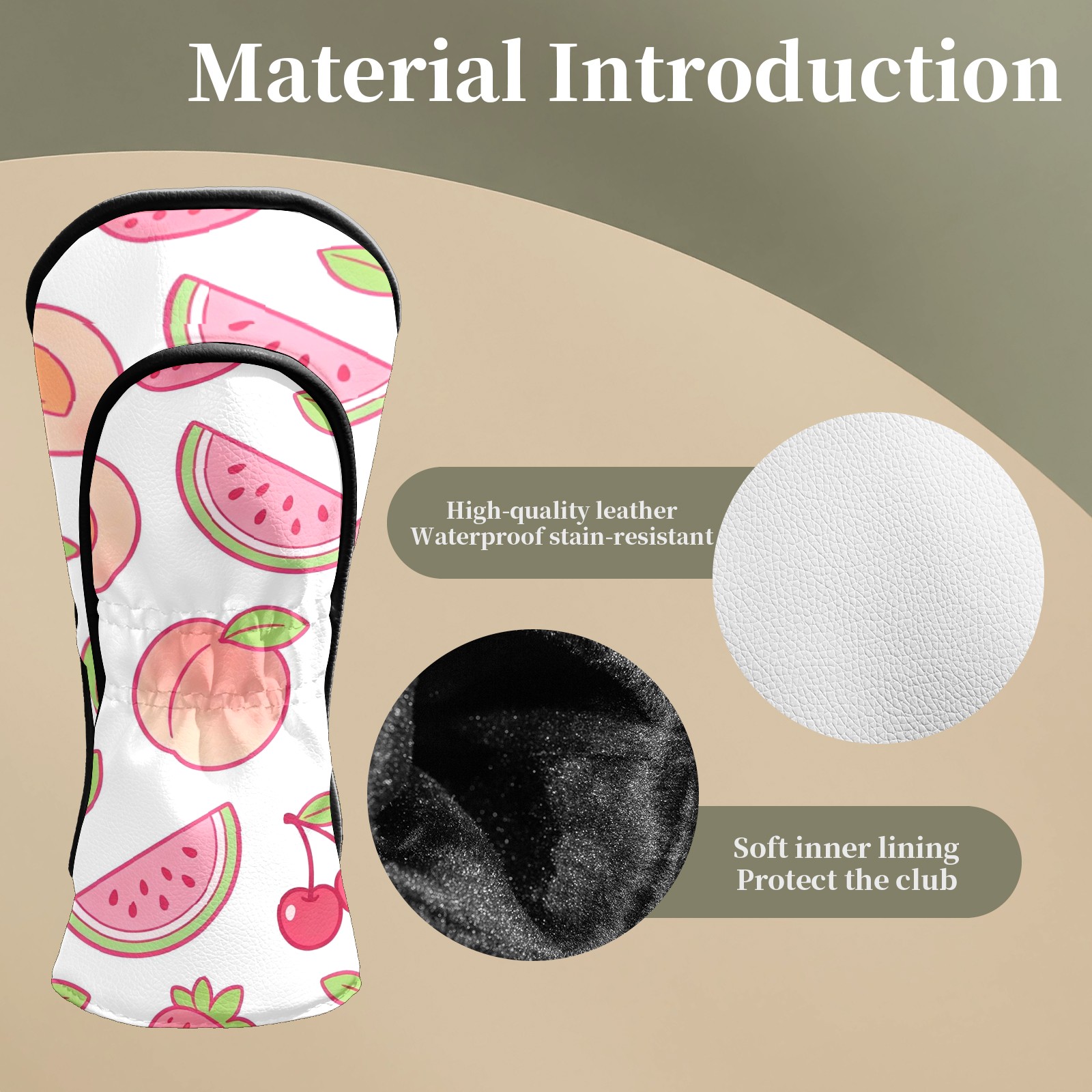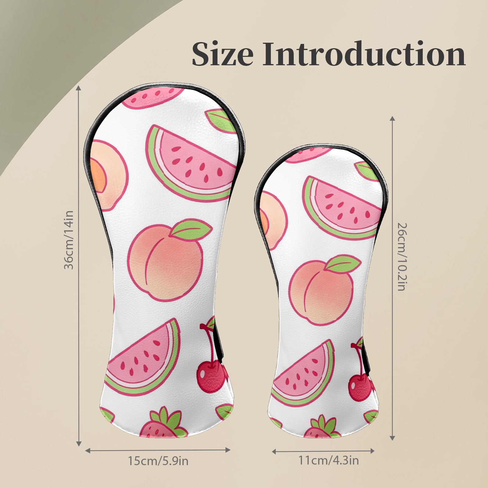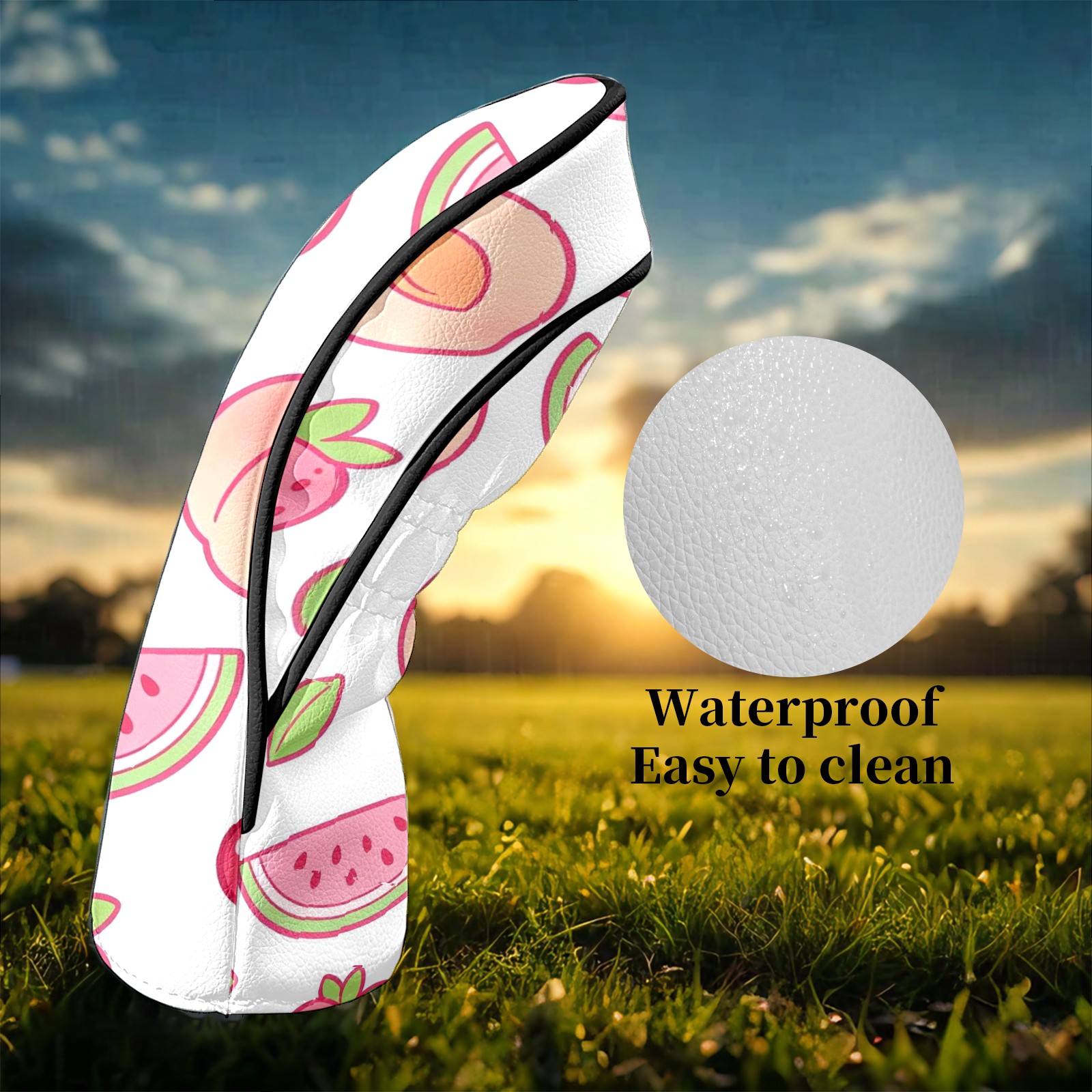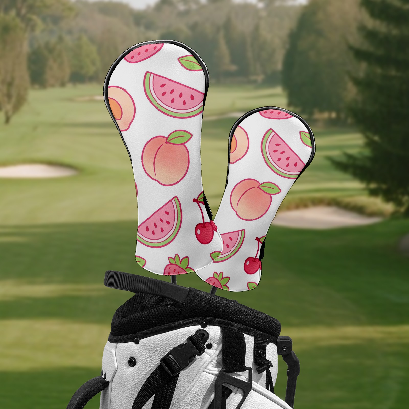 Golf Club Headcovers Waterproof PU Leather, Peach Pattern Design for Driver Fairway Woods Headcover, Inspired Gifts for Men Women
