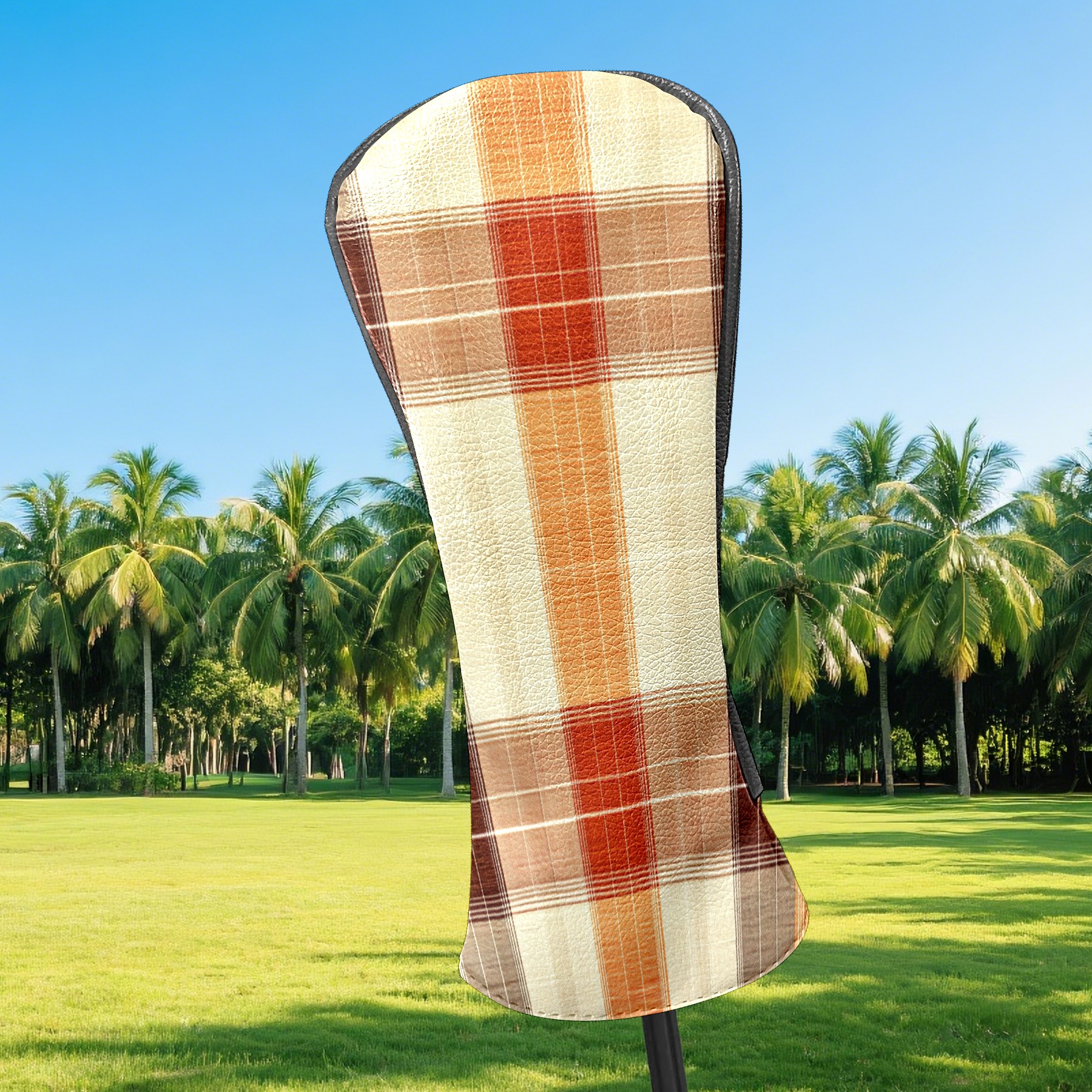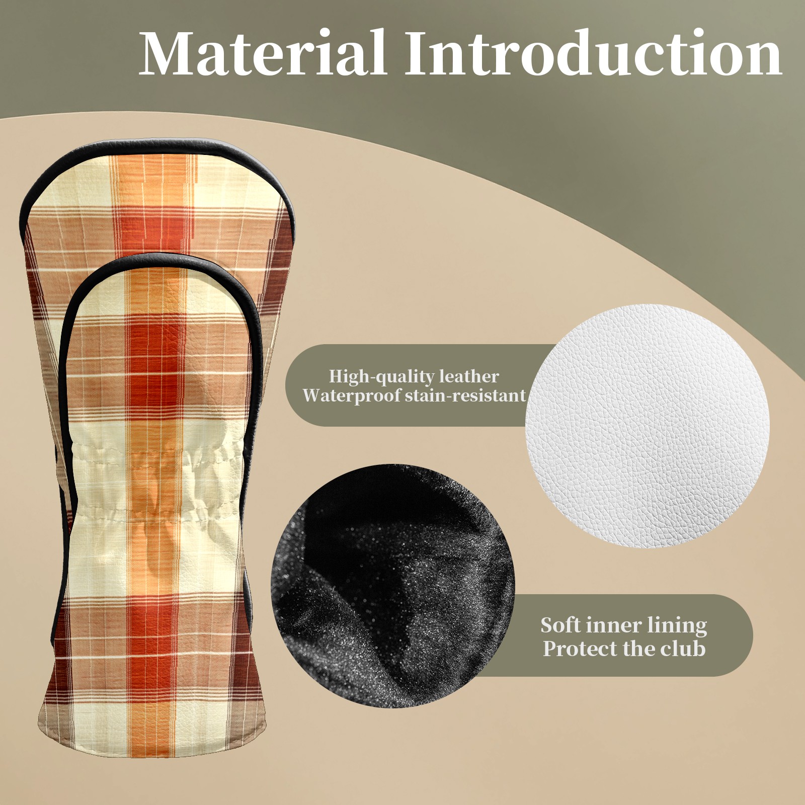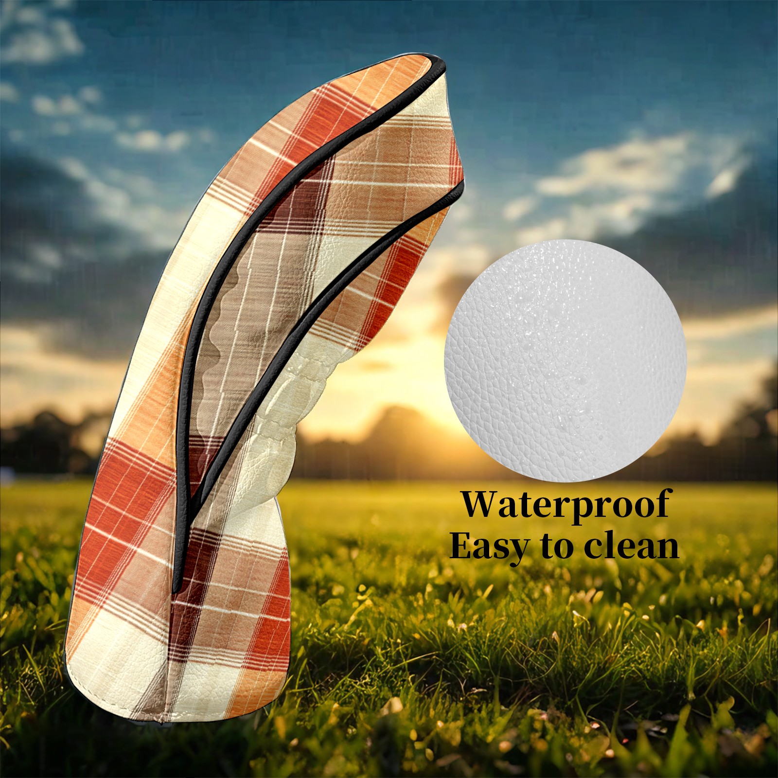 Golf Club Headcovers Waterproof PU Leather, Brown Checkered Pattern Design for Driver Fairway Woods Headcover, Inspired Gifts for Men Women