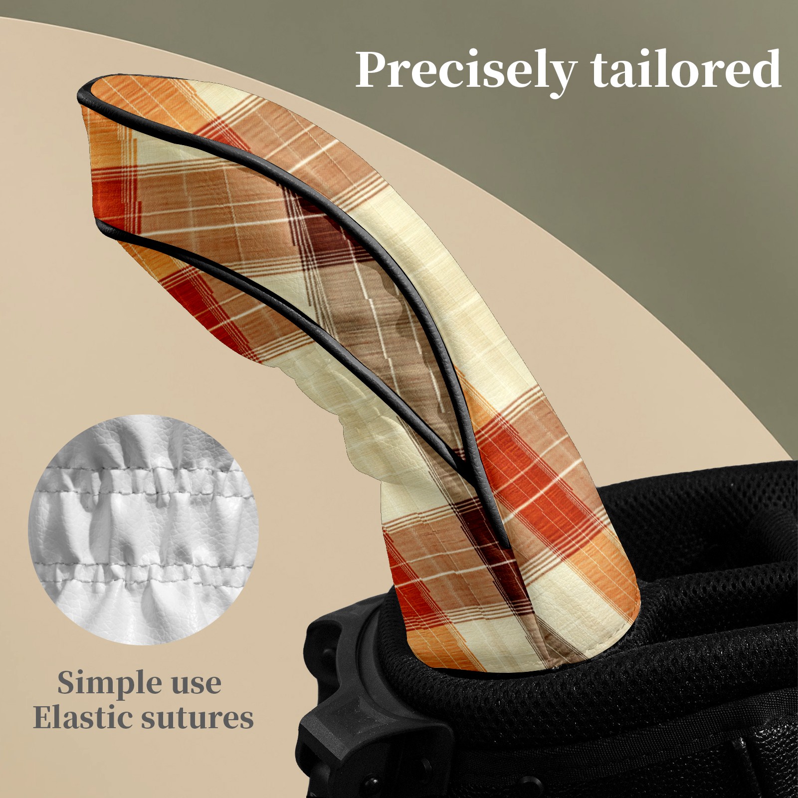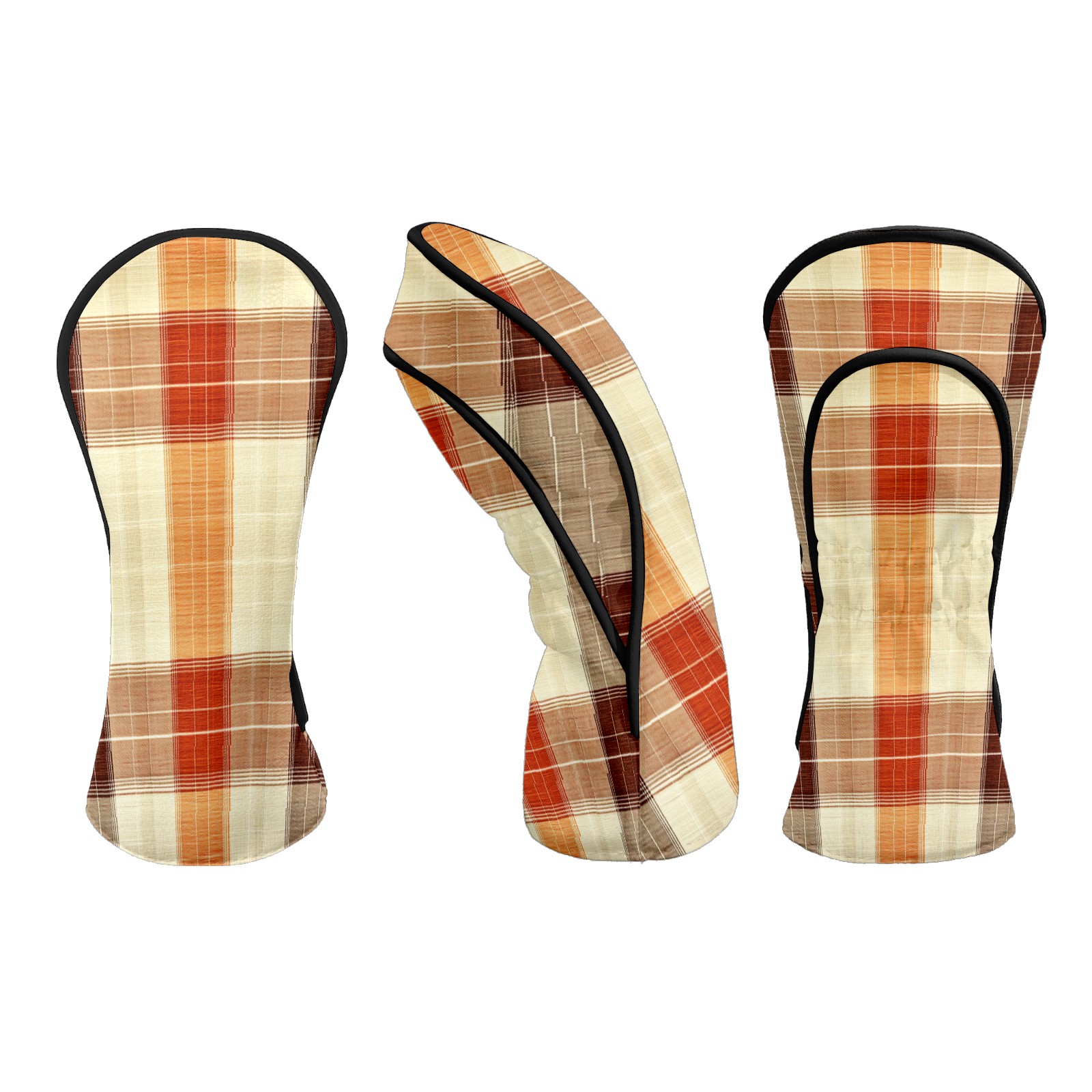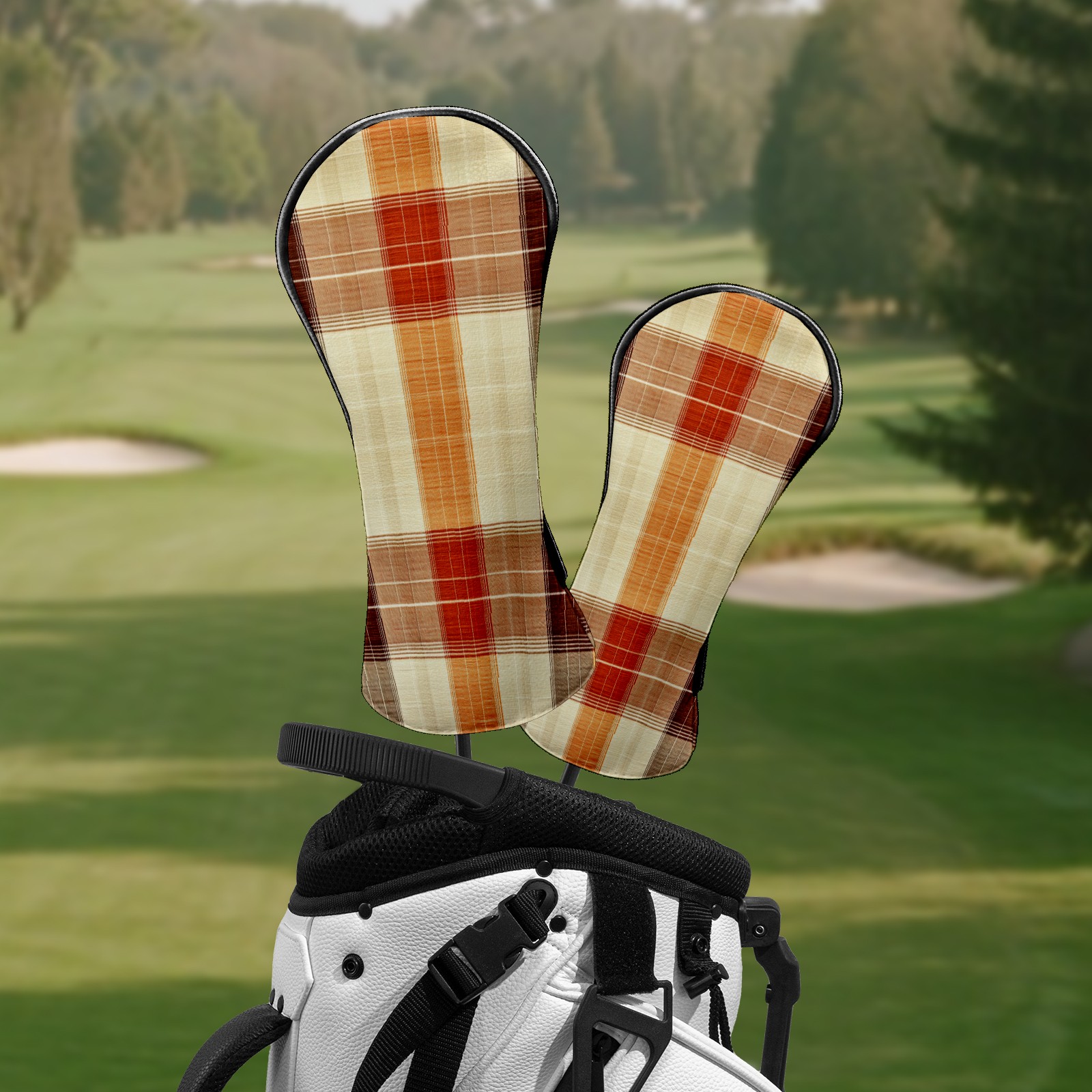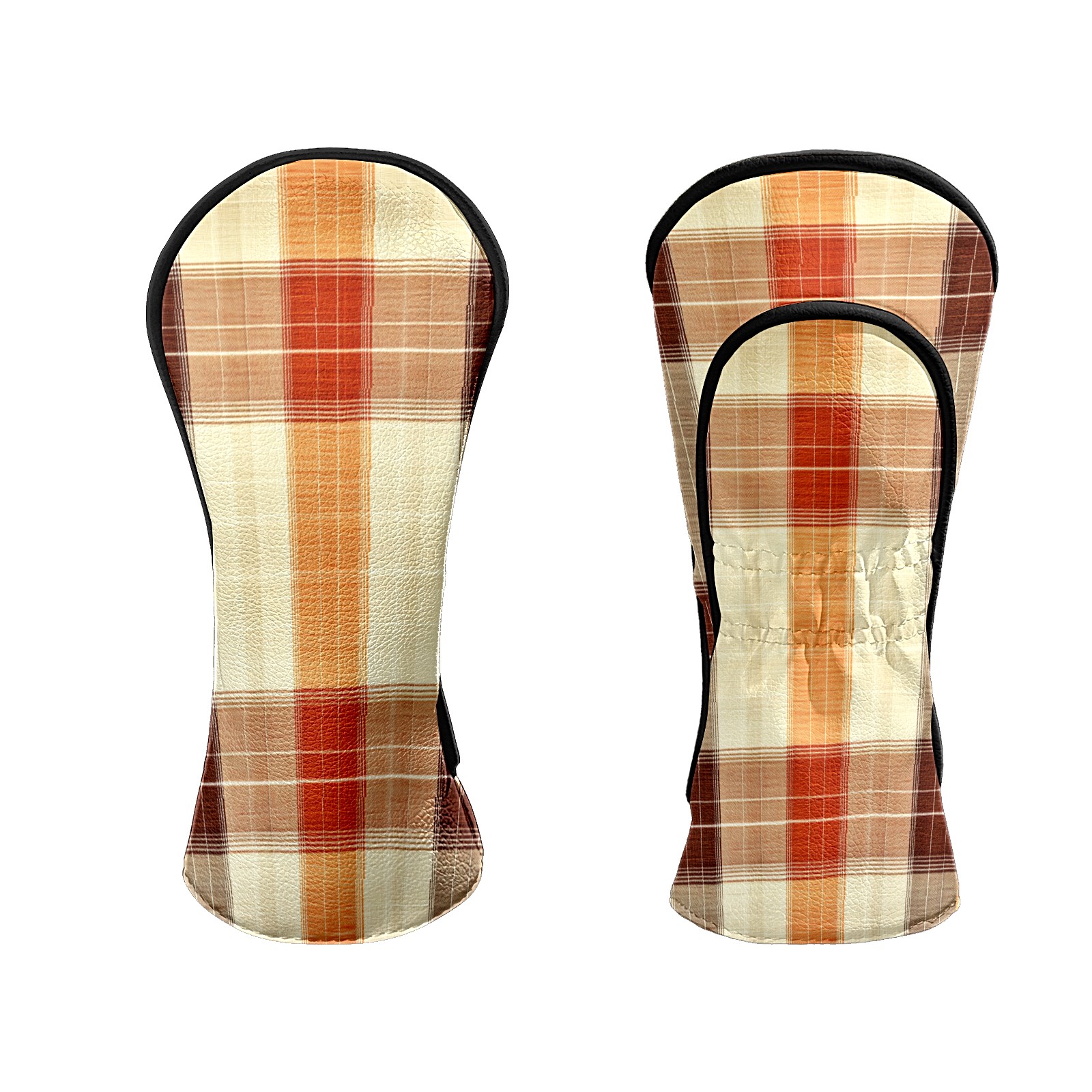 Golf Club Headcovers Waterproof PU Leather, Brown Checkered Pattern Design for Driver Fairway Woods Headcover, Inspired Gifts for Men Women