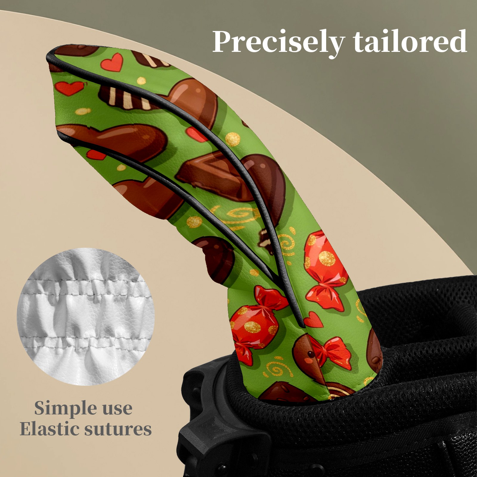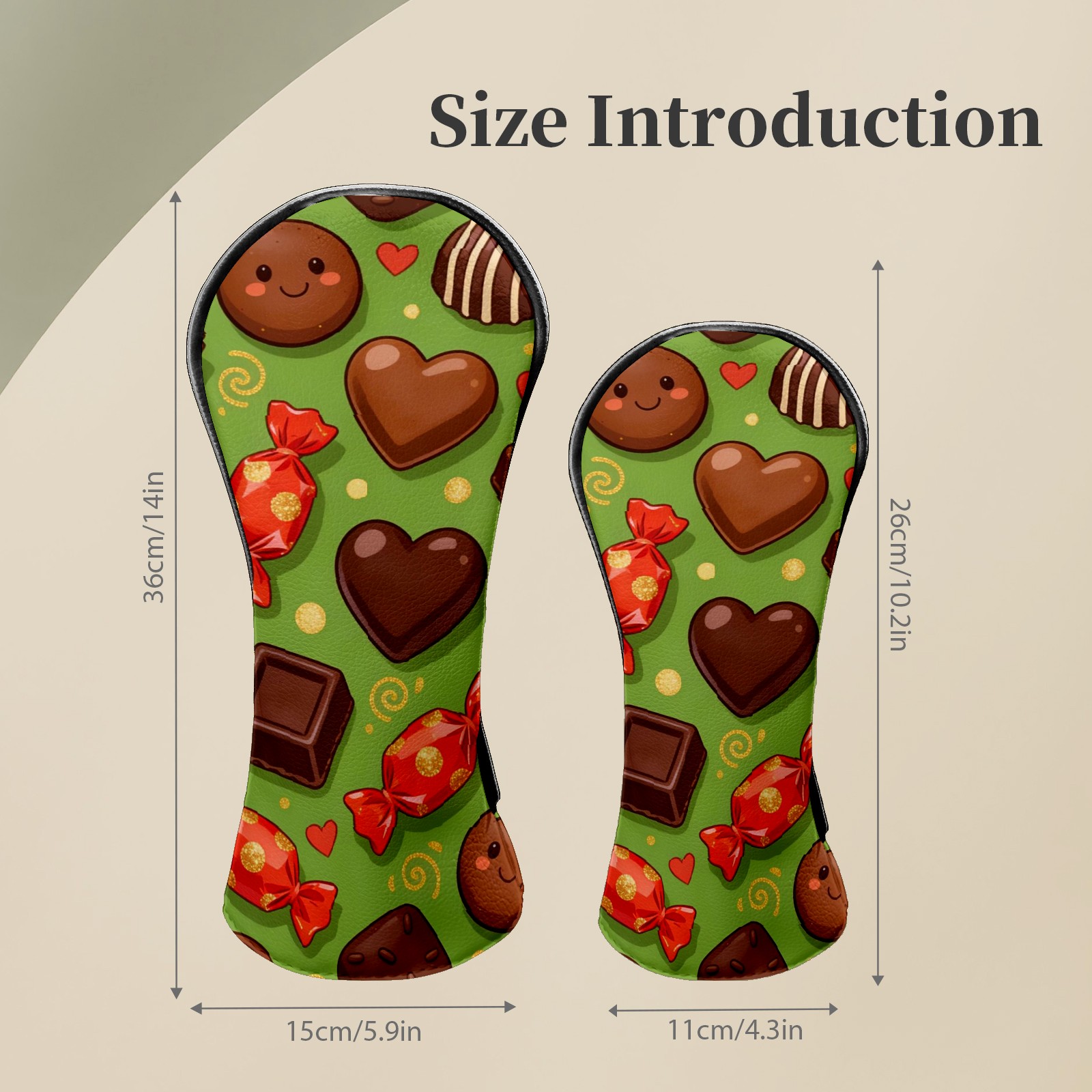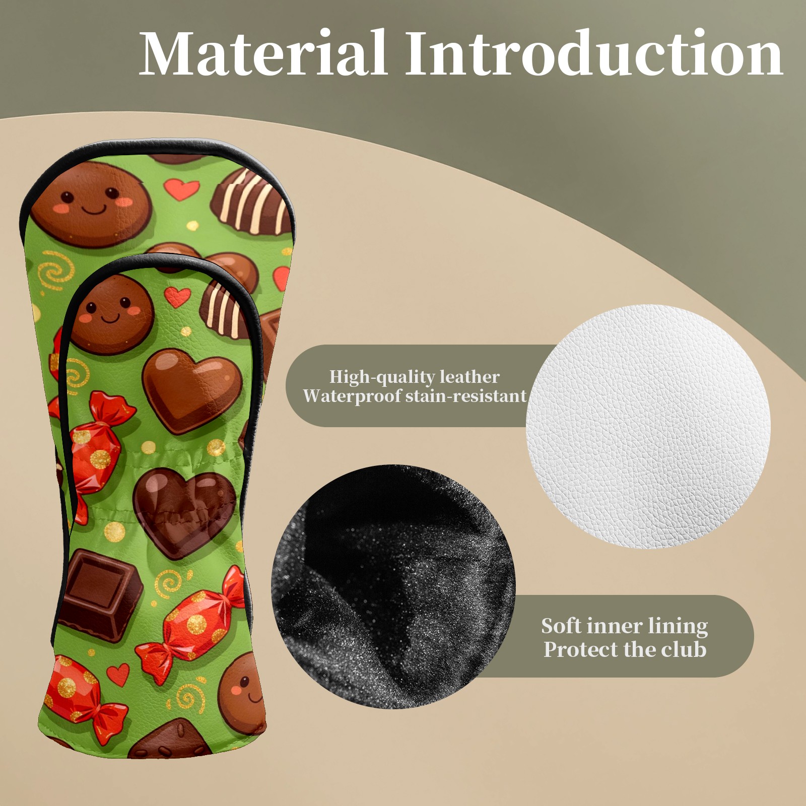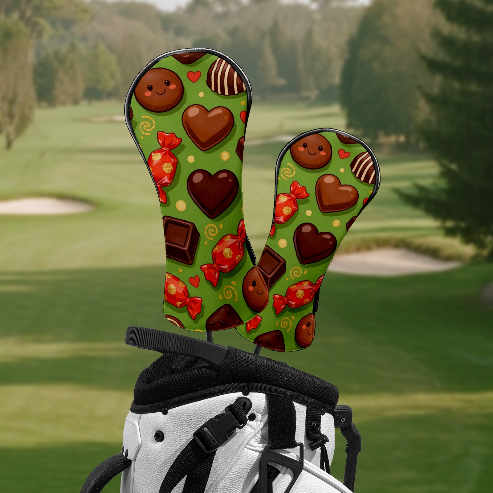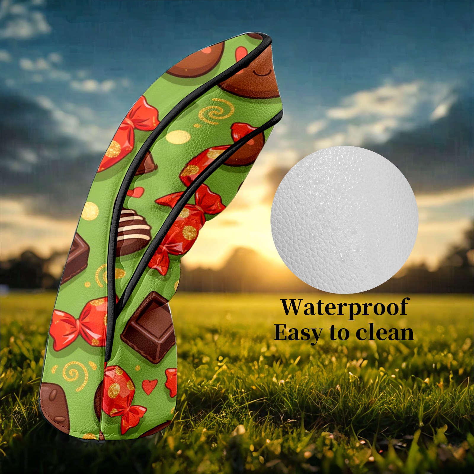 Golf Club Headcovers Waterproof PU Leather, Delicious Chocolate Pattern Design for Driver Fairway Woods Headcover, Inspired Gifts for Men Women