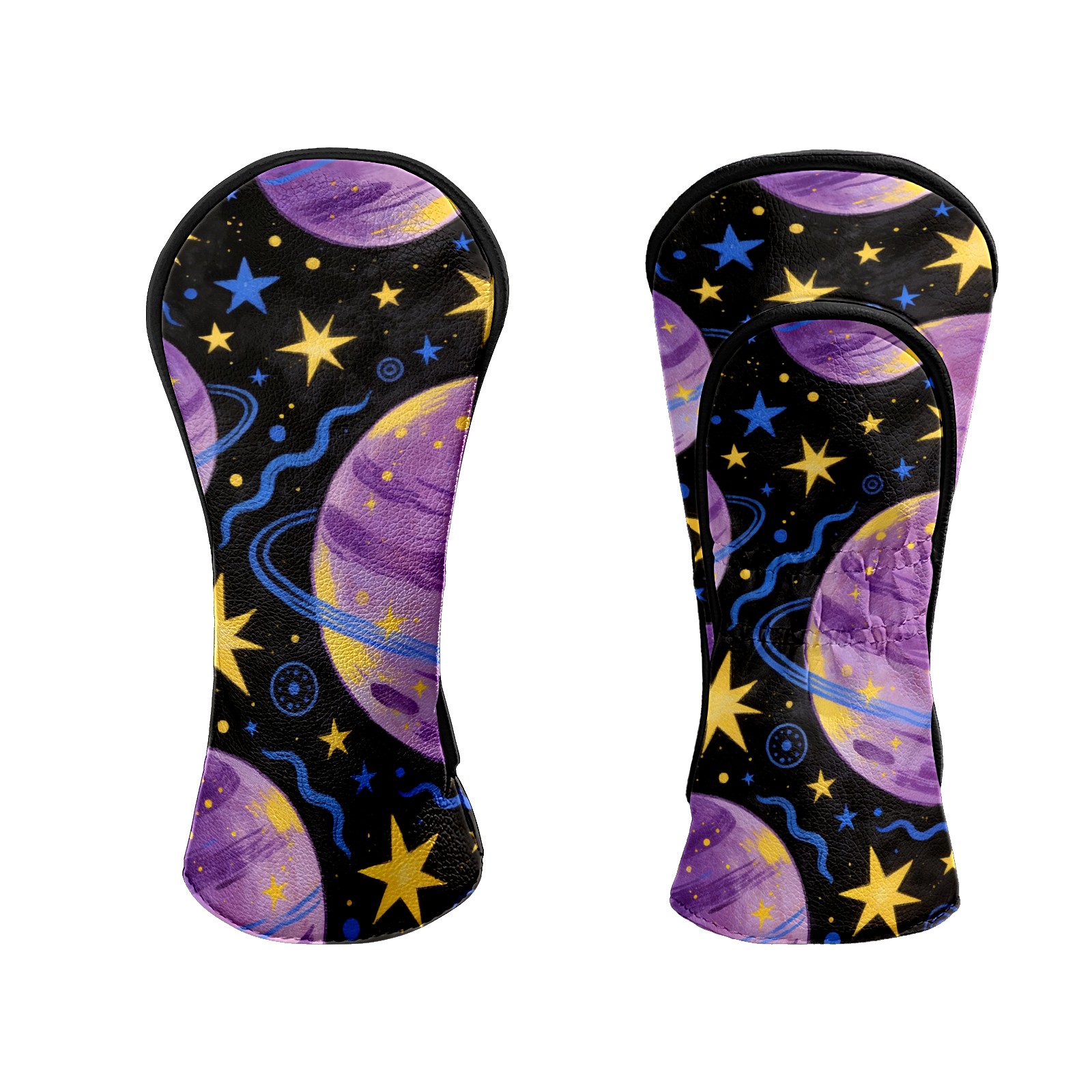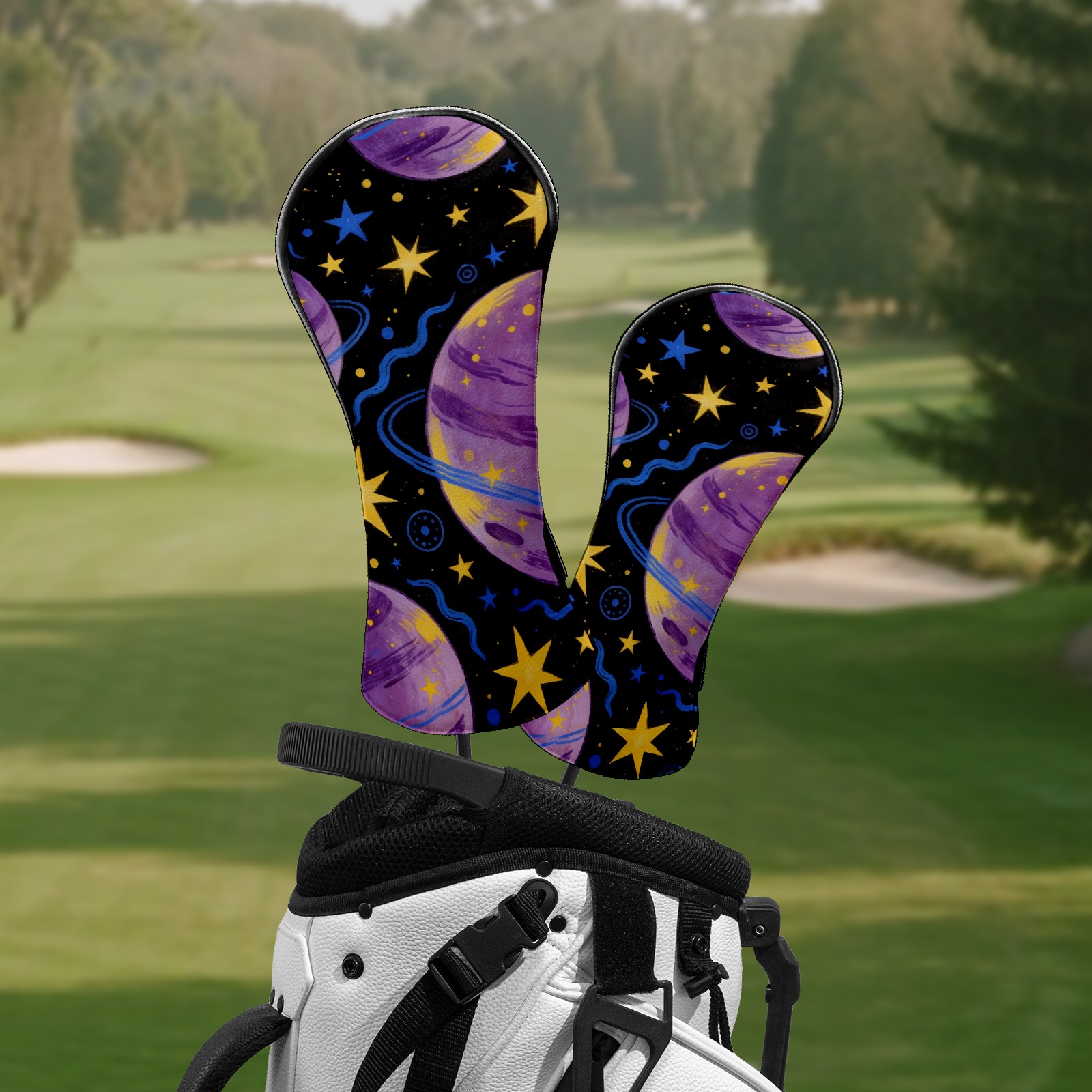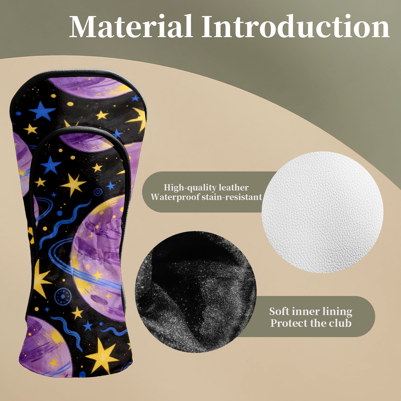 Golf Club Headcovers Waterproof PU Leather, Purple Planet Pattern Design for Driver Fairway Woods Headcover, Inspired Gifts for Men Women