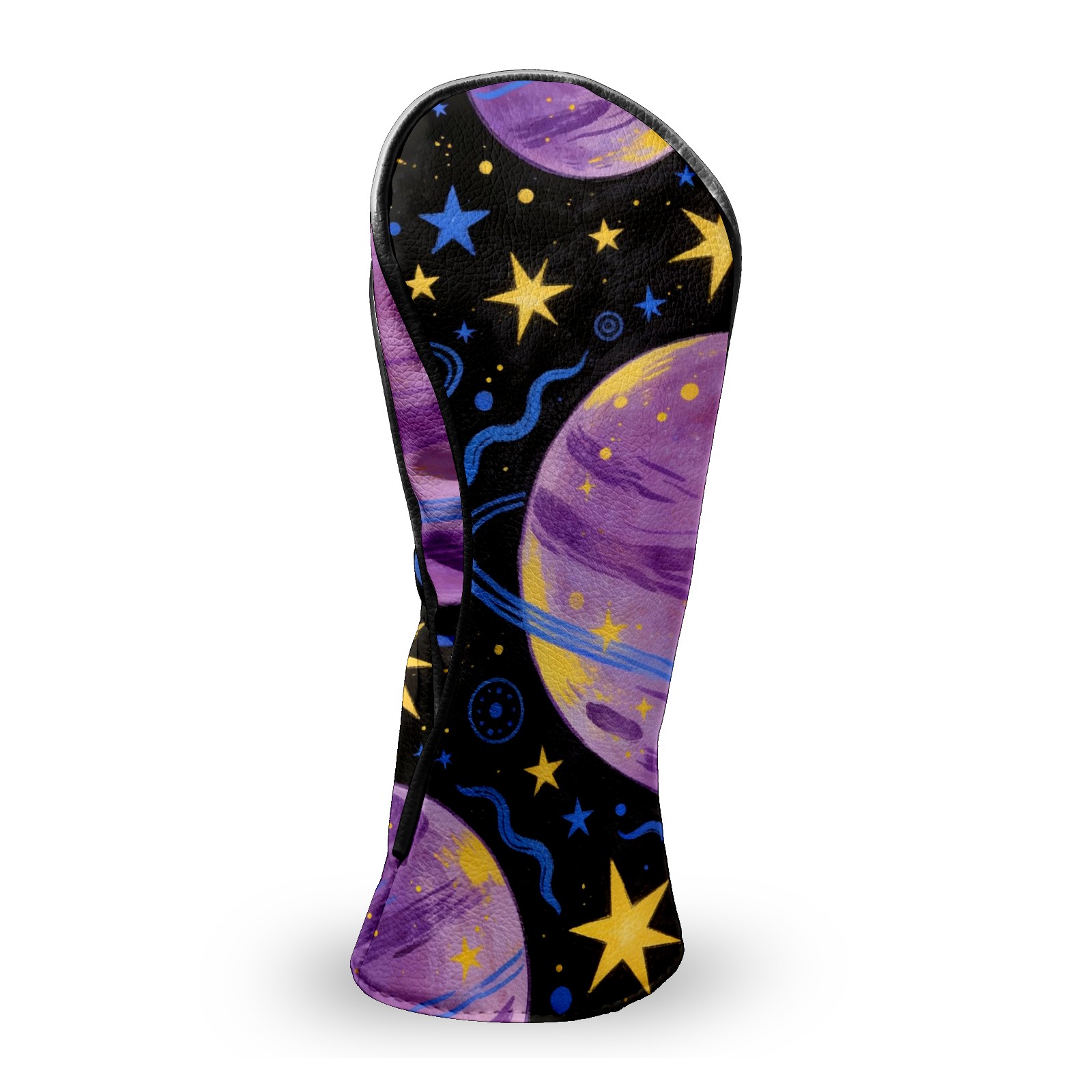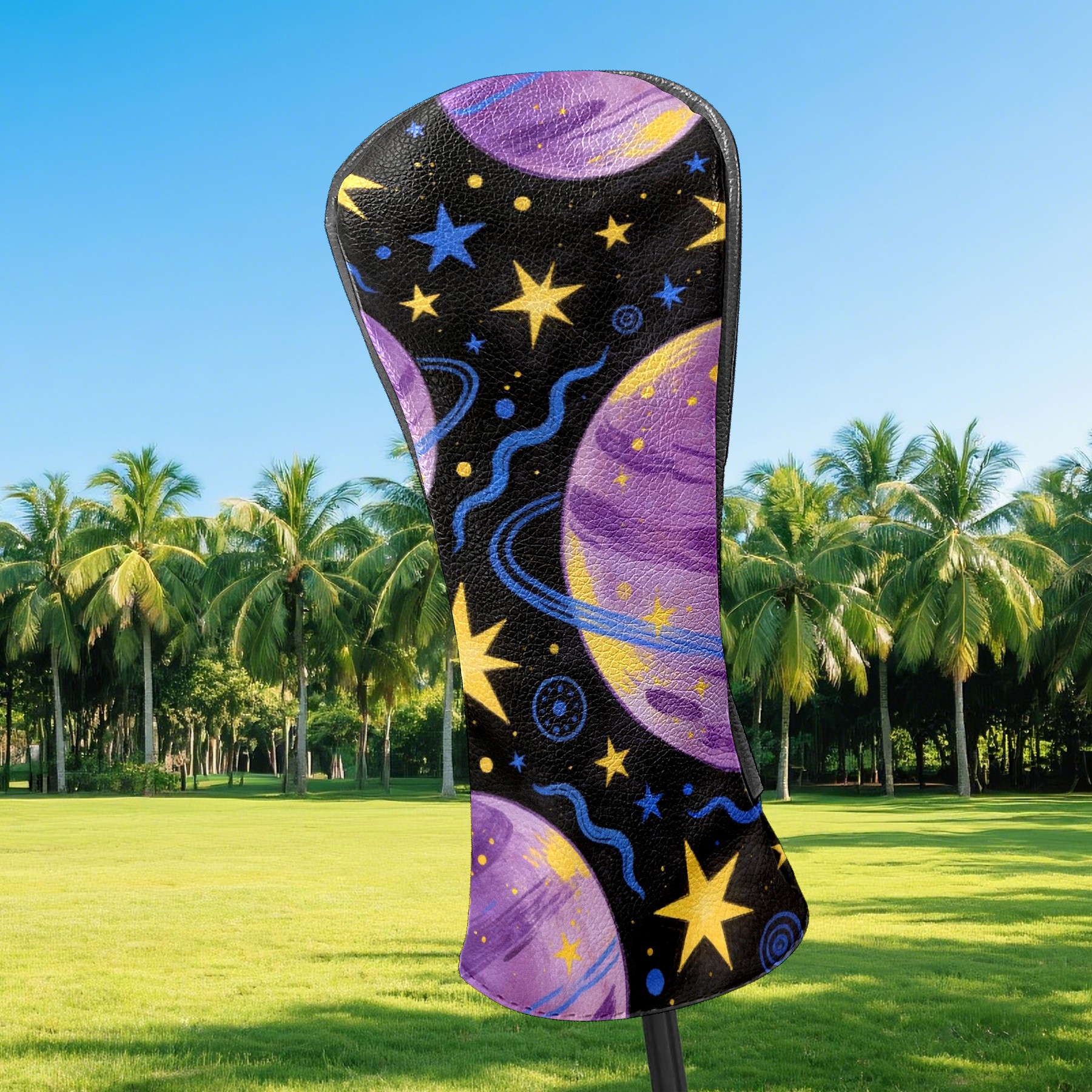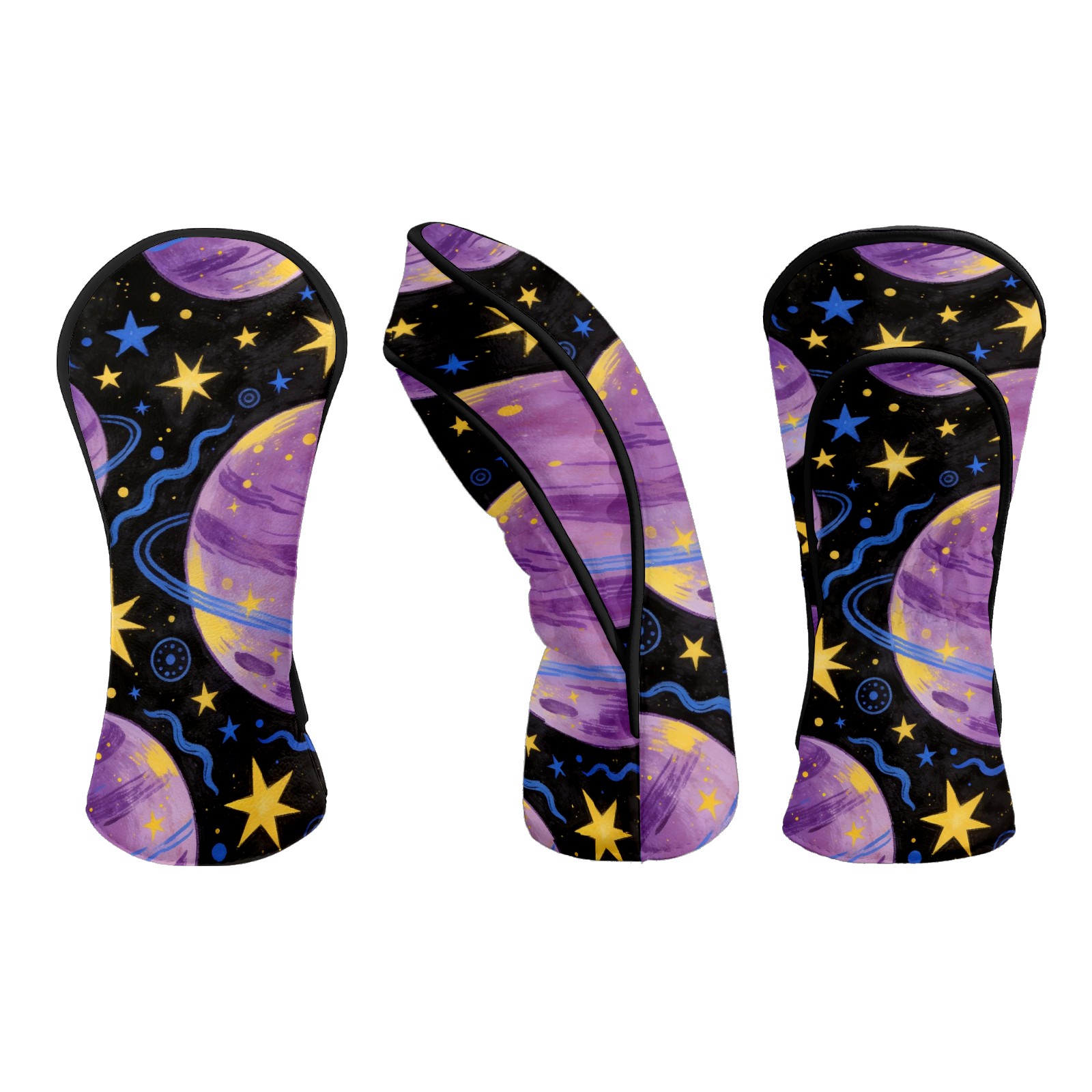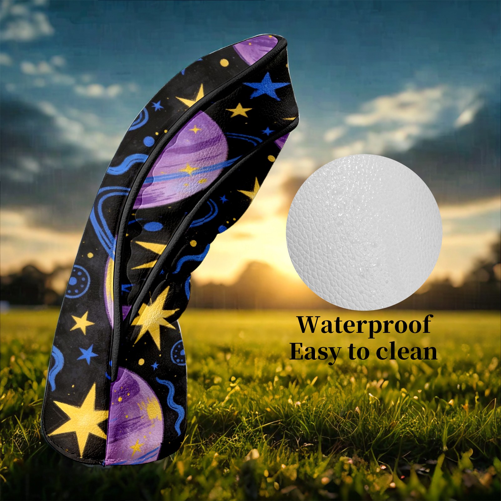 Golf Club Headcovers Waterproof PU Leather, Purple Planet Pattern Design for Driver Fairway Woods Headcover, Inspired Gifts for Men Women