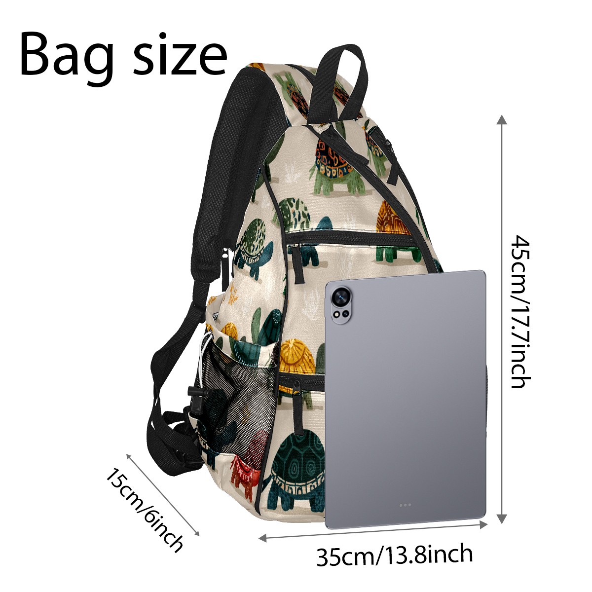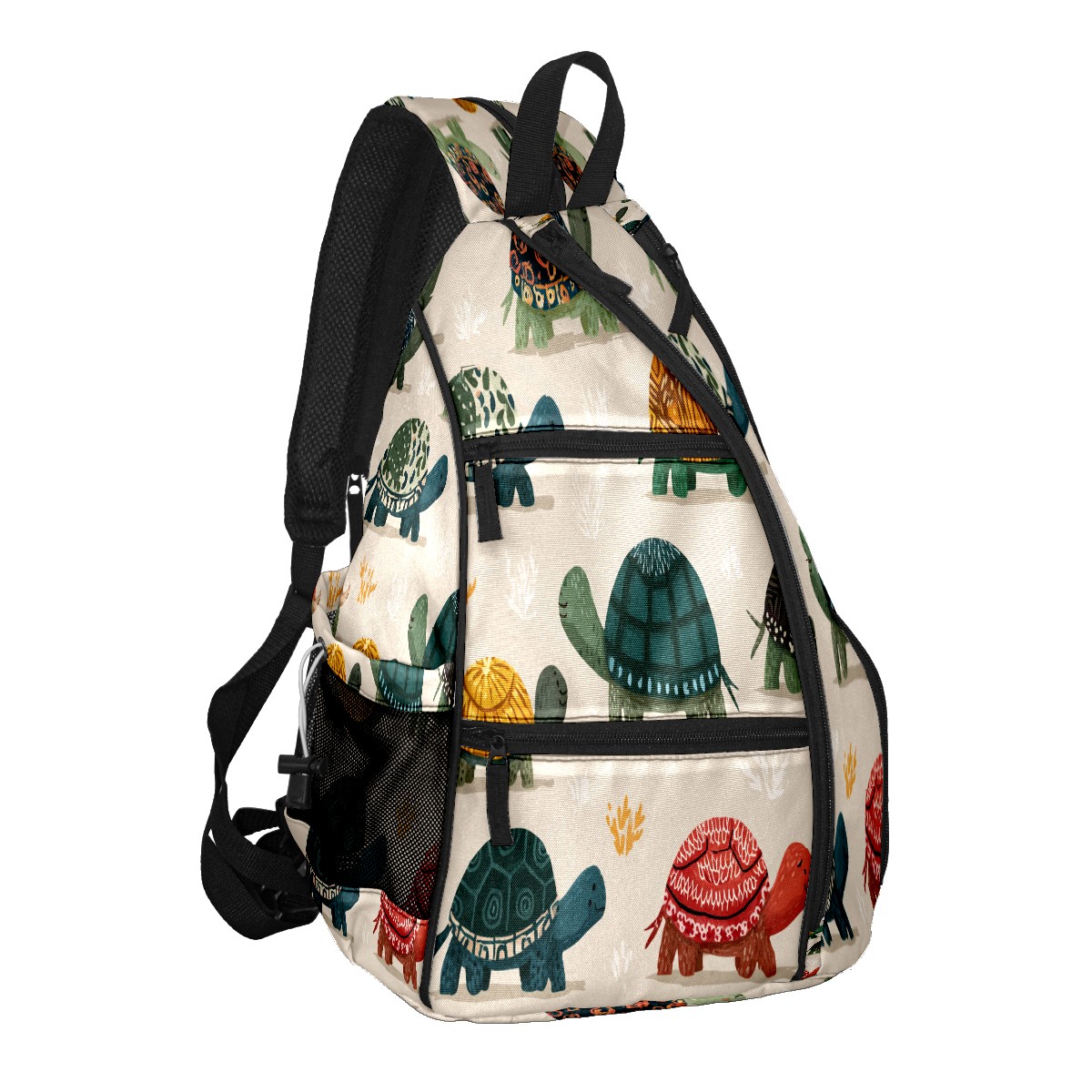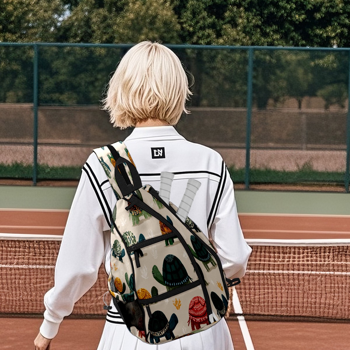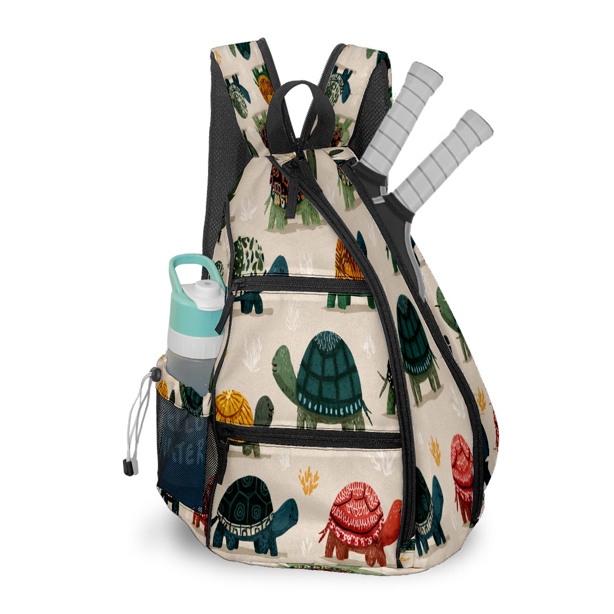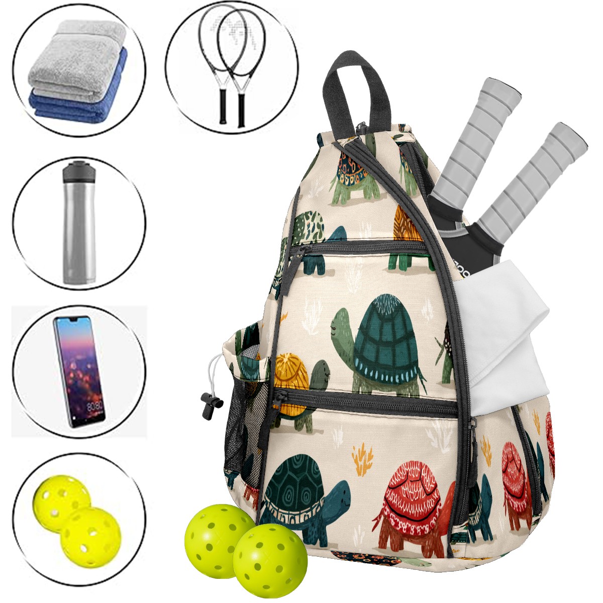 Counullo Vintage Turtle Brown Premium Nylon Pickleball Backpack, 3-in-1 Convertible Shoulder Crossbody Sling Bag for Women Men, Fits 2-4 Pickleball Paddles & Tennis Sports Gear