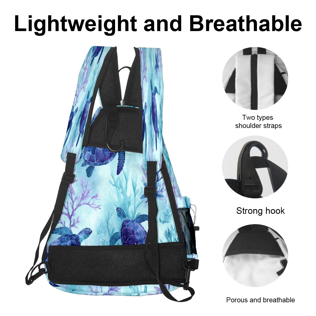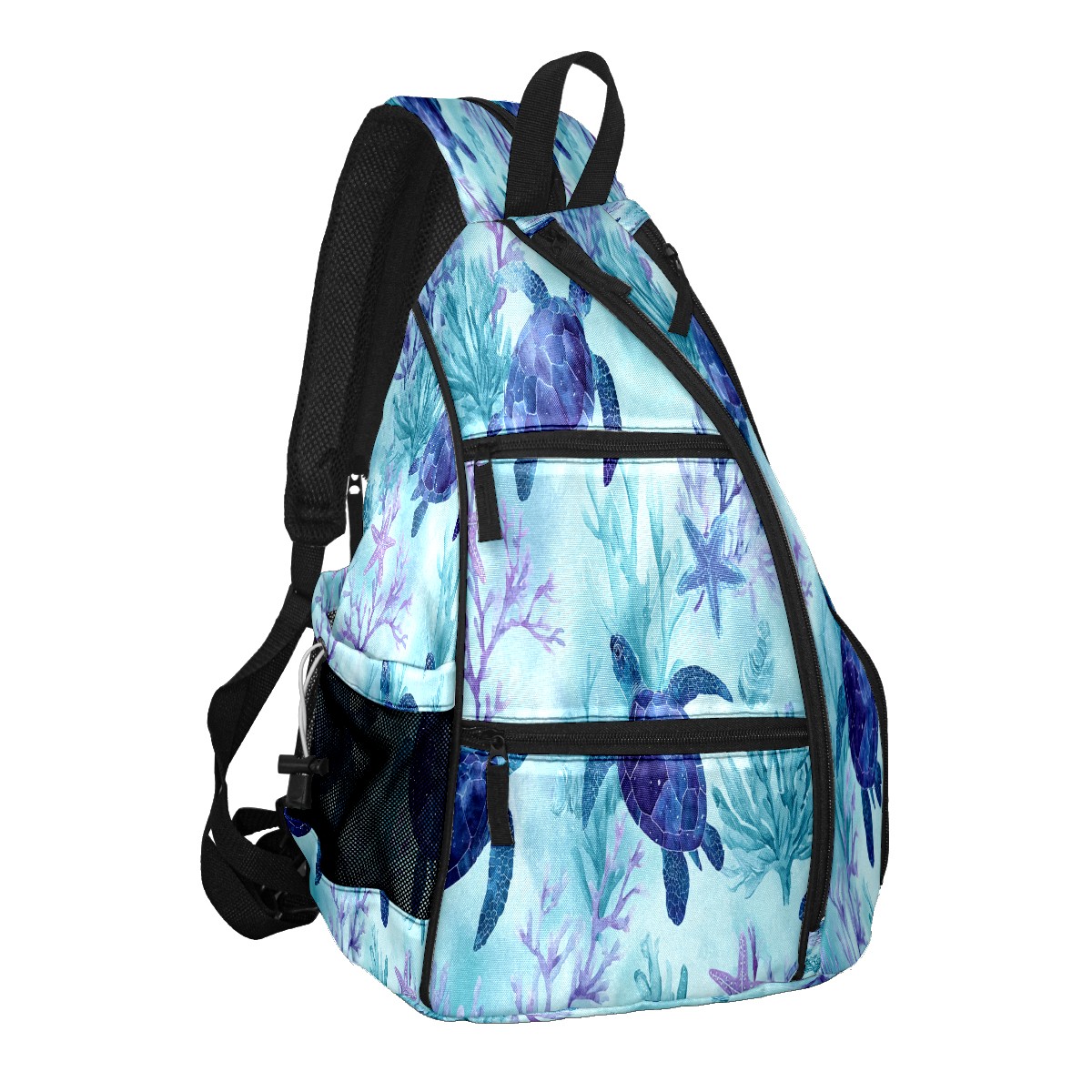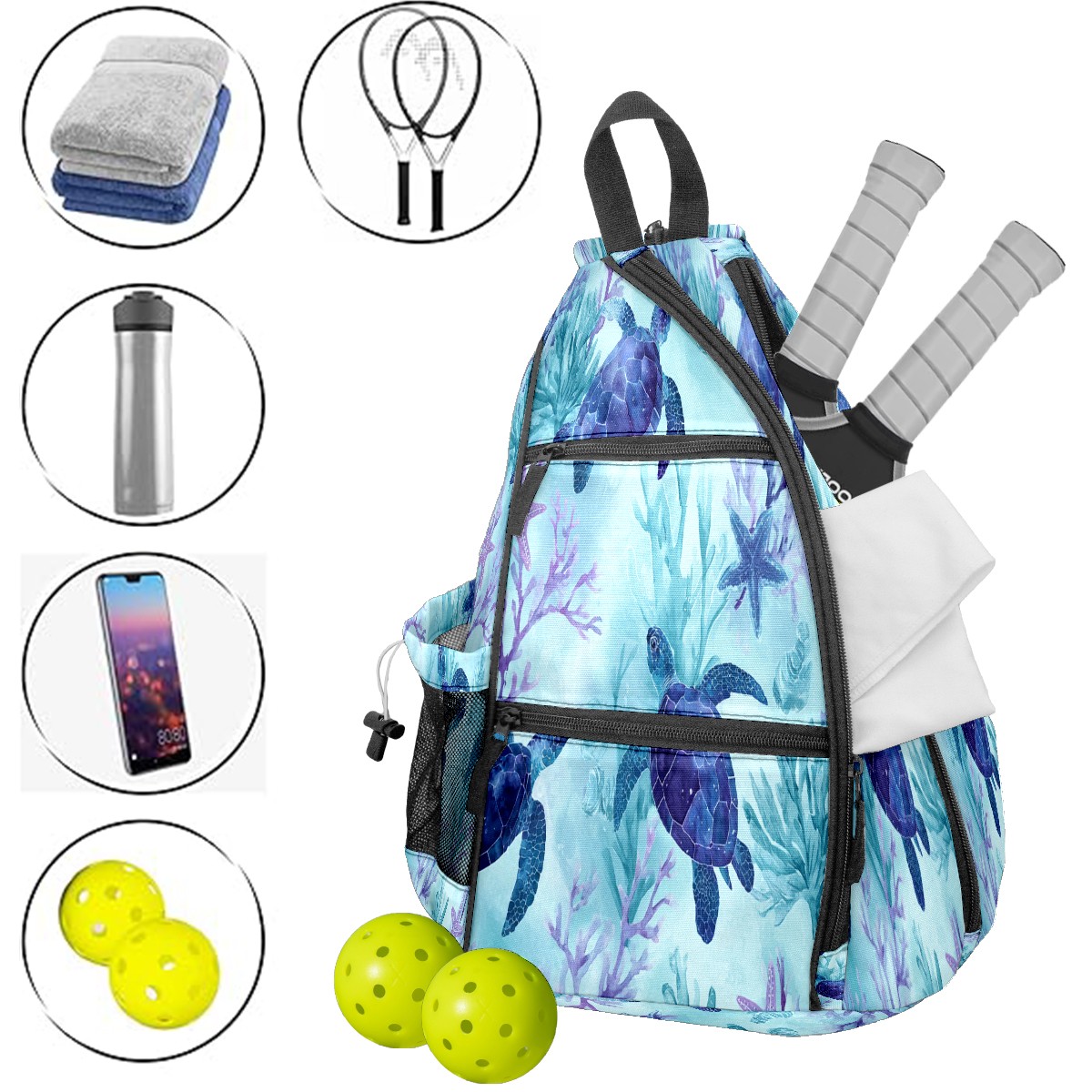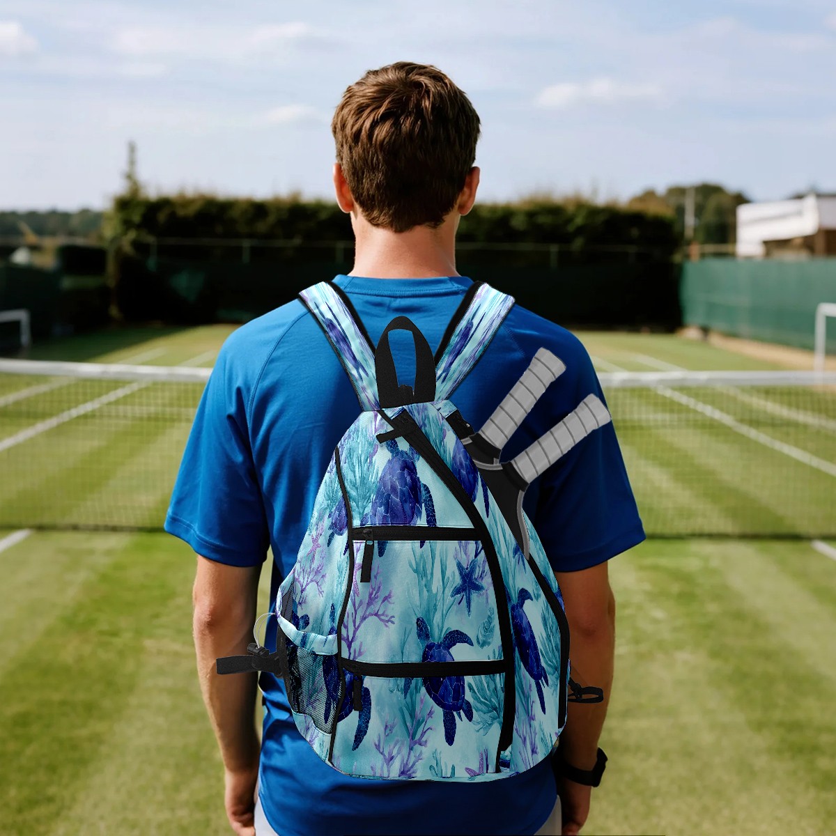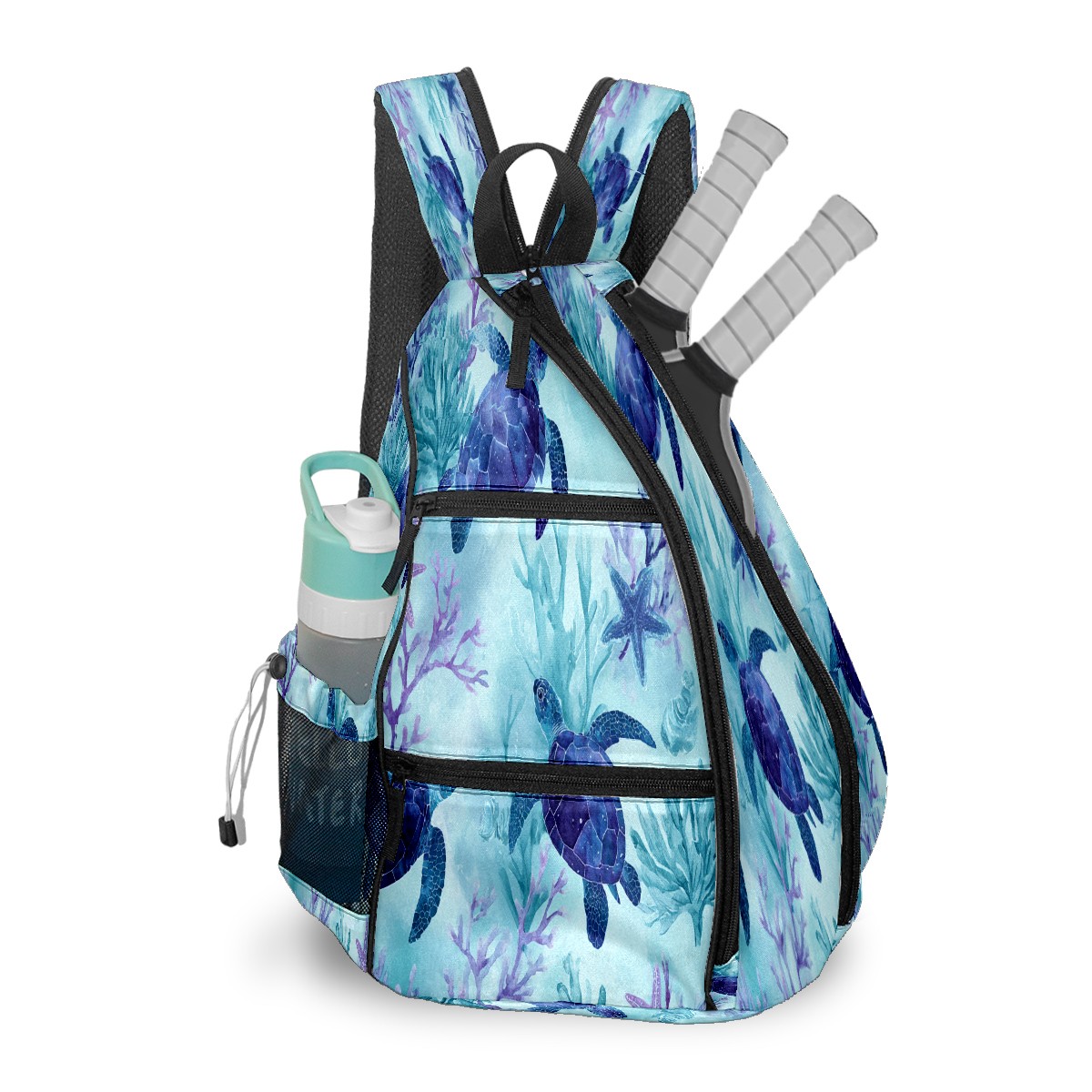 Counullo Dreamy Turtle Blue Premium Nylon Pickleball Backpack, 3-in-1 Convertible Shoulder Crossbody Sling Bag for Women Men, Fits 2-4 Pickleball Paddles & Tennis Sports Gear