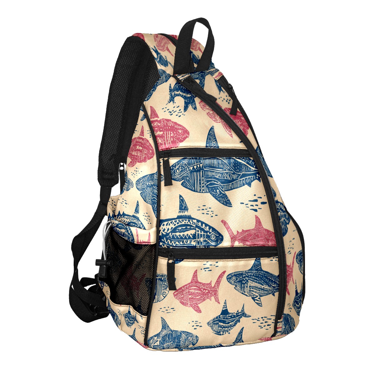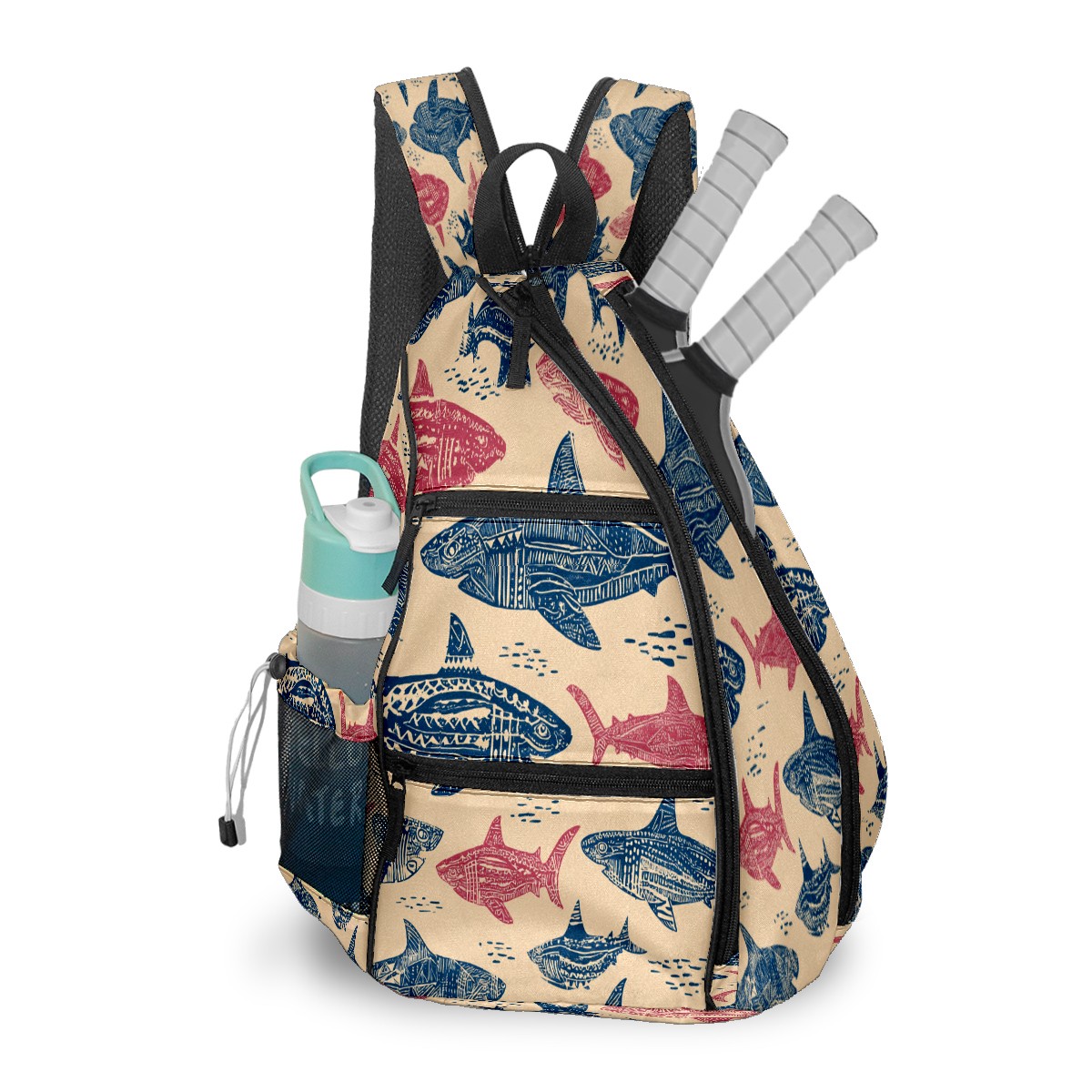 Counullo Chilly Shark Pink Premium Nylon Pickleball Backpack, 3-in-1 Convertible Shoulder Crossbody Sling Bag for Women Men, Fits 2-4 Pickleball Paddles & Tennis Sports Gear