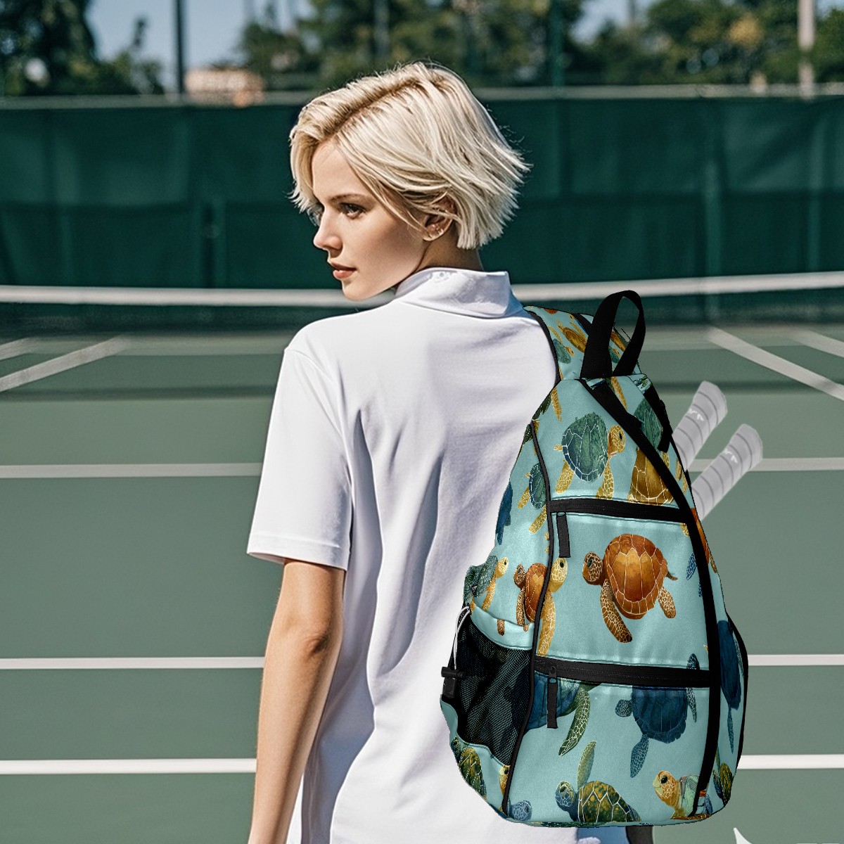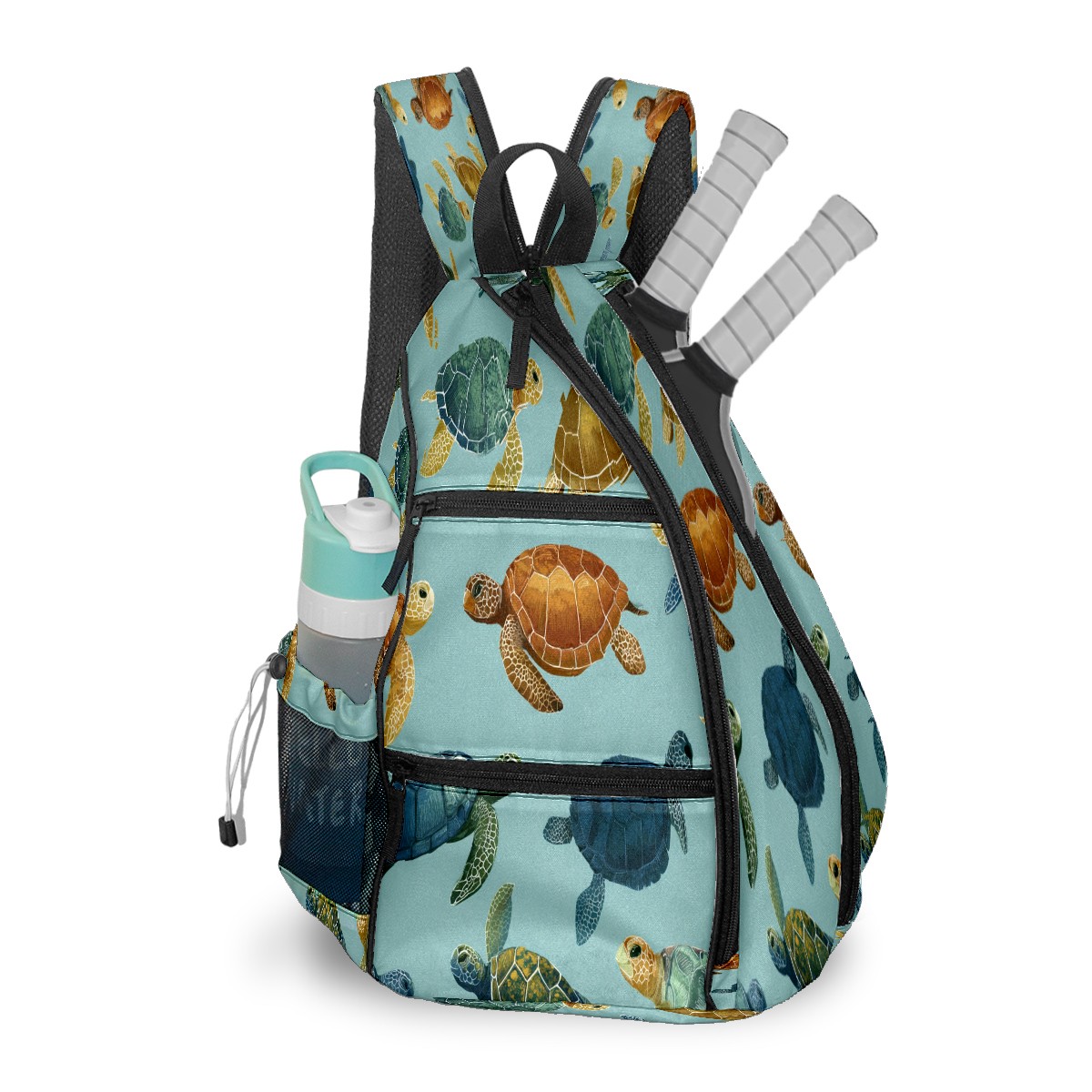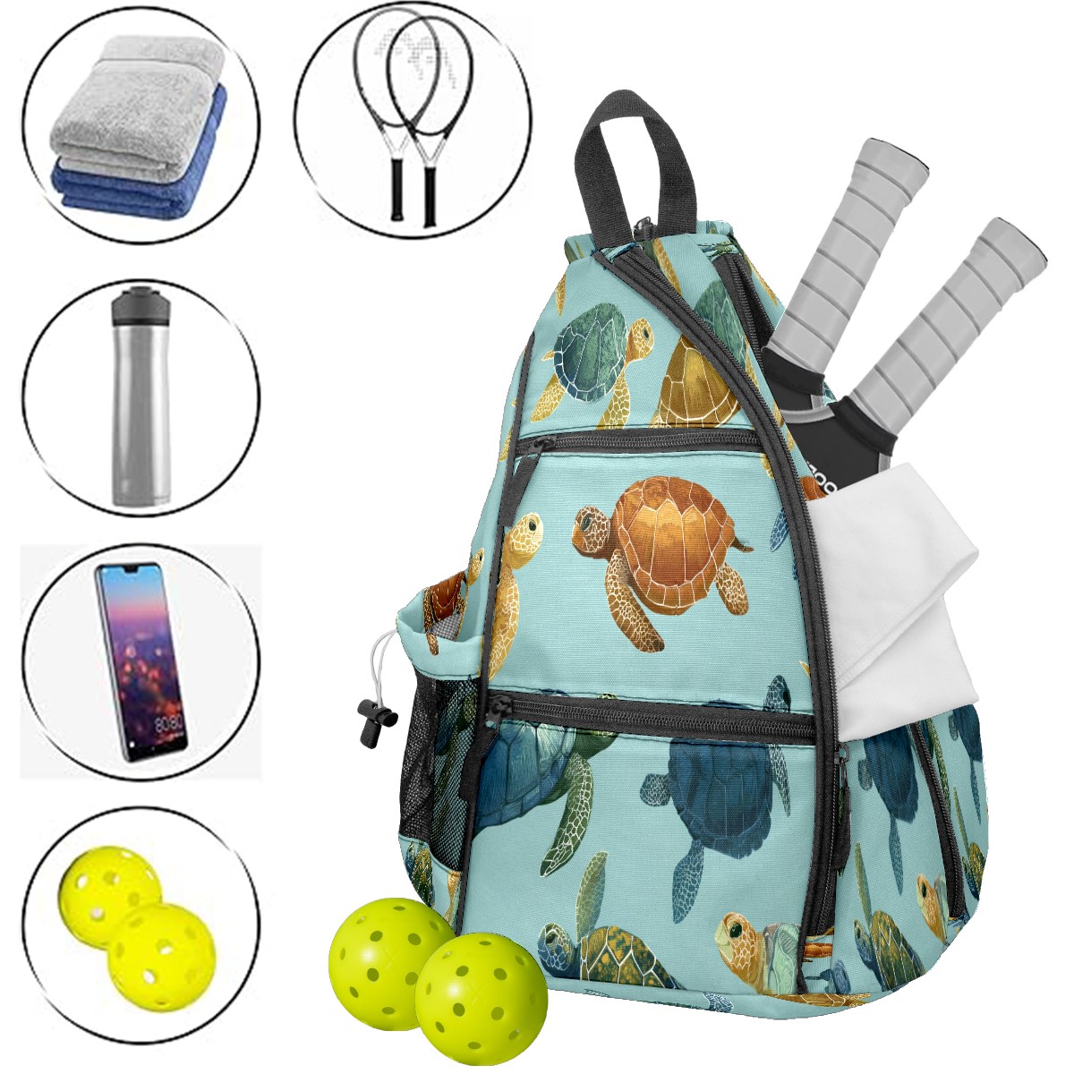 Counullo Fresh Turtle Teal Premium Nylon Pickleball Backpack, 3-in-1 Convertible Shoulder Crossbody Sling Bag for Women Men, Fits 2-4 Pickleball Paddles & Tennis Sports Gear