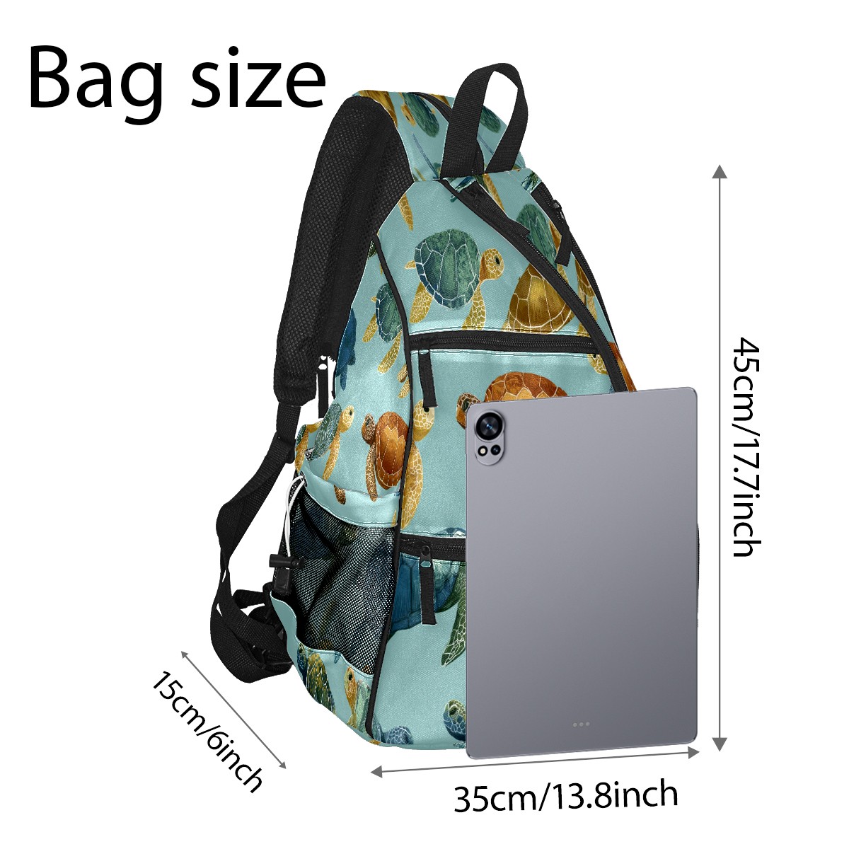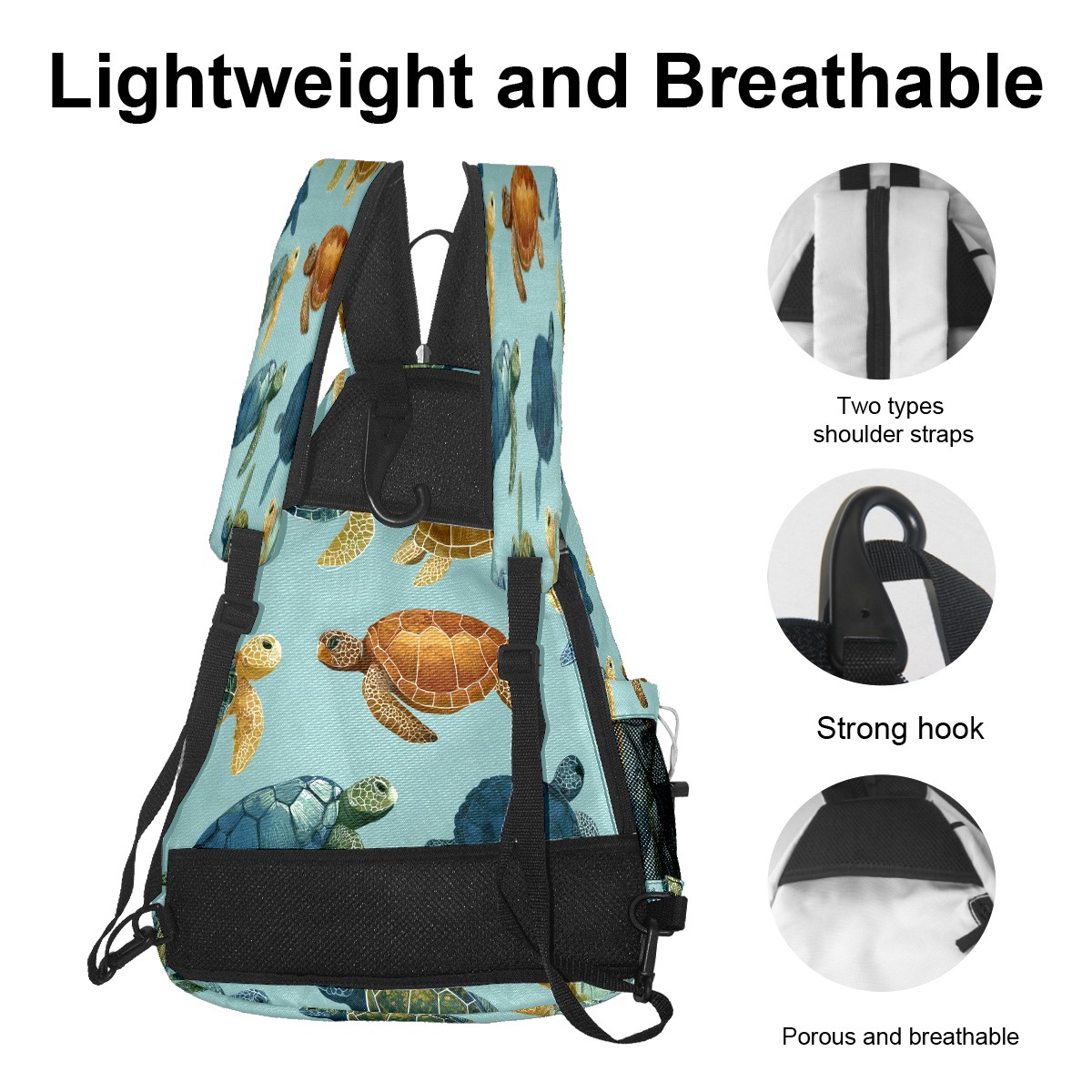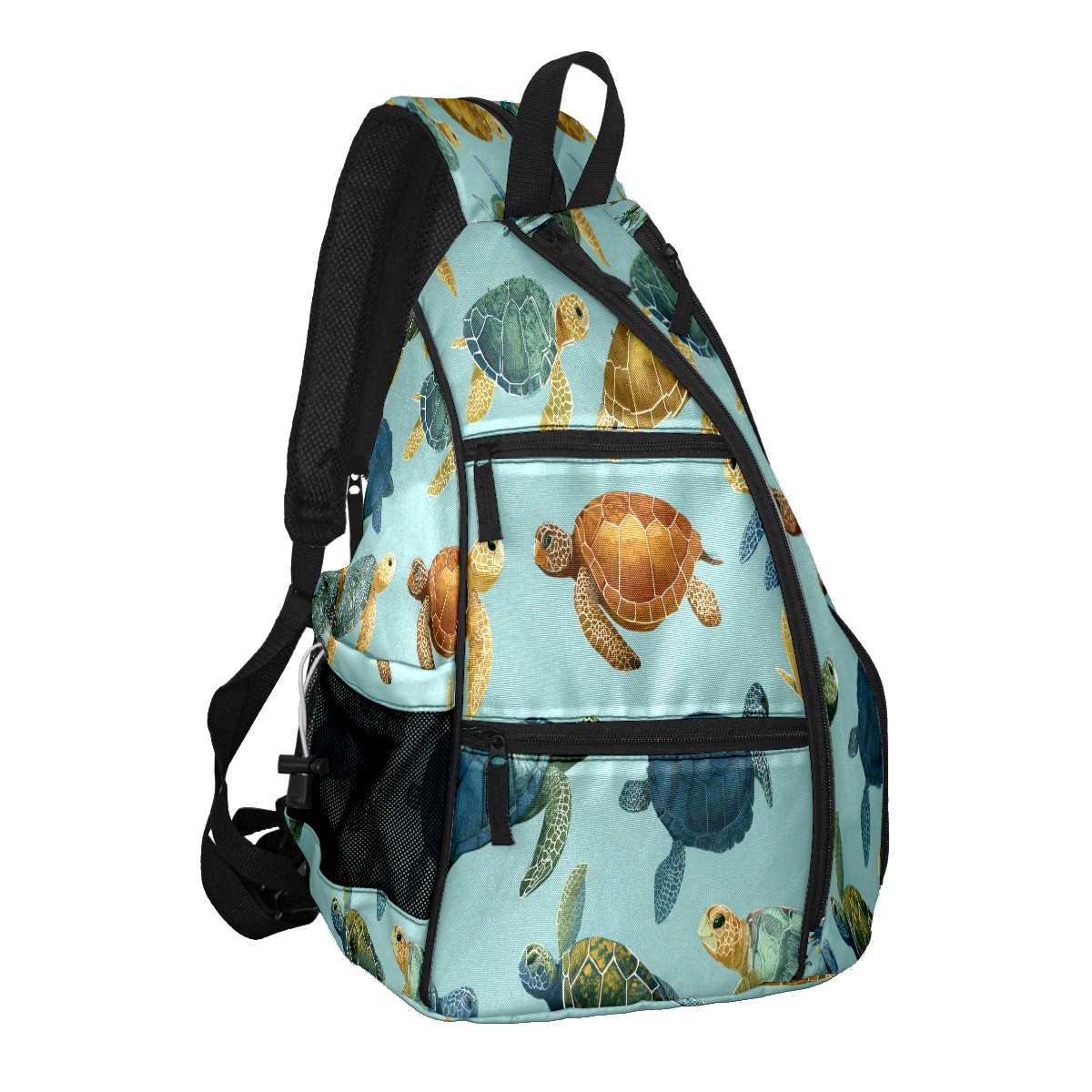 Counullo Fresh Turtle Teal Premium Nylon Pickleball Backpack, 3-in-1 Convertible Shoulder Crossbody Sling Bag for Women Men, Fits 2-4 Pickleball Paddles & Tennis Sports Gear