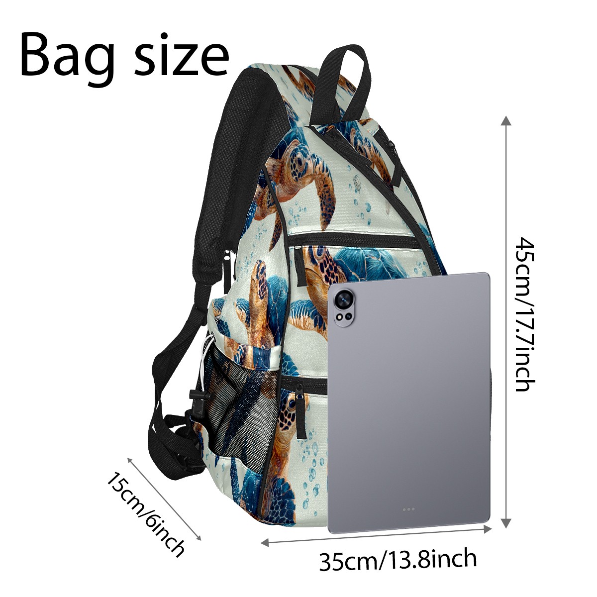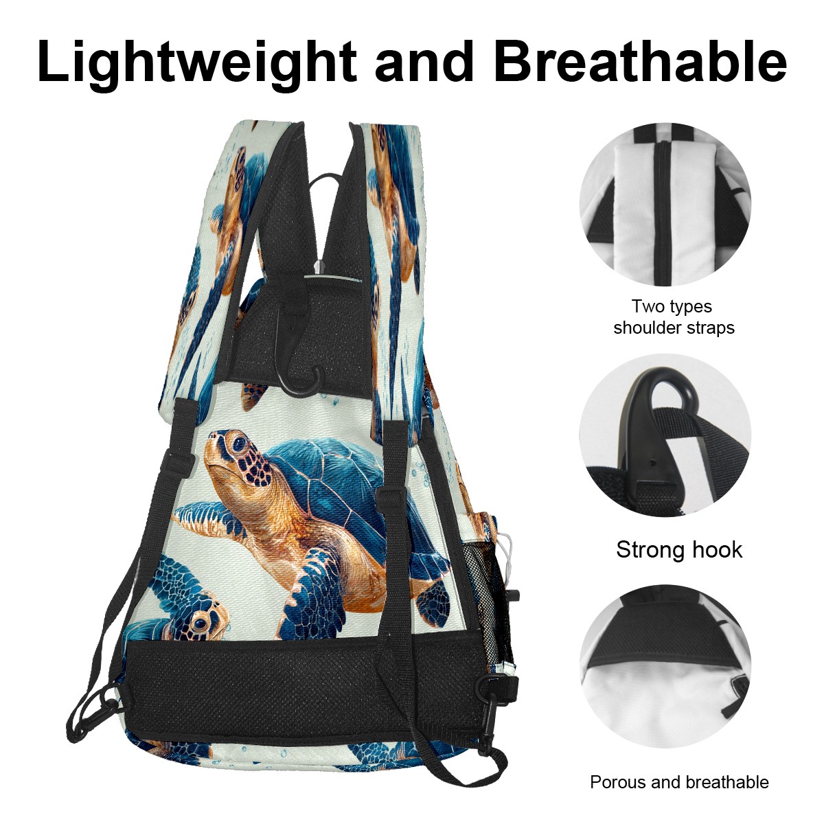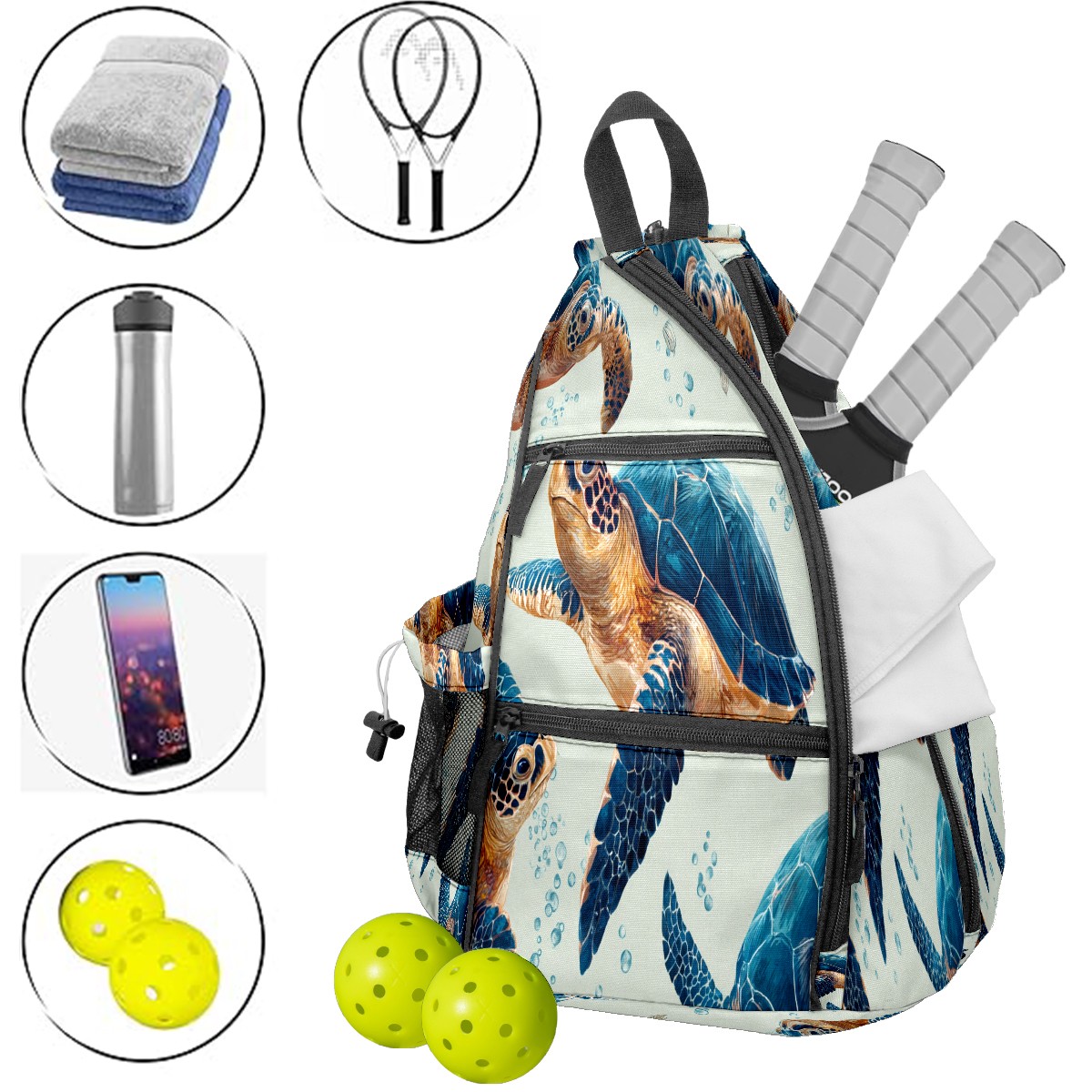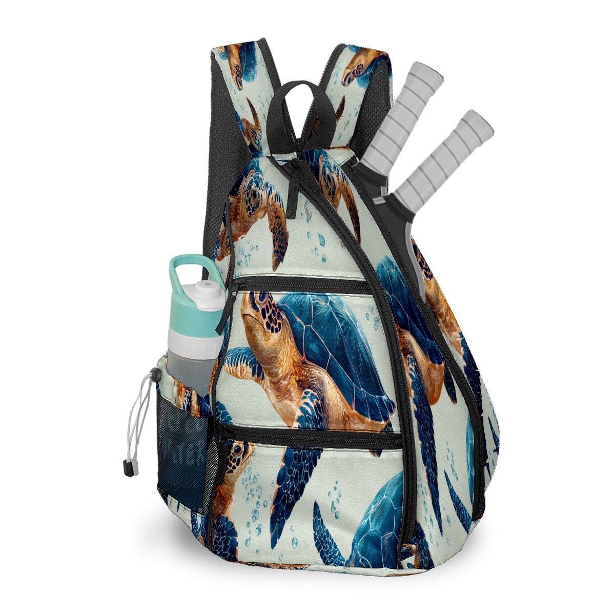 Counullo Vivid Turtle Blue Premium Nylon Pickleball Backpack, 3-in-1 Convertible Shoulder Crossbody Sling Bag for Women Men, Fits 2-4 Pickleball Paddles & Tennis Sports Gear