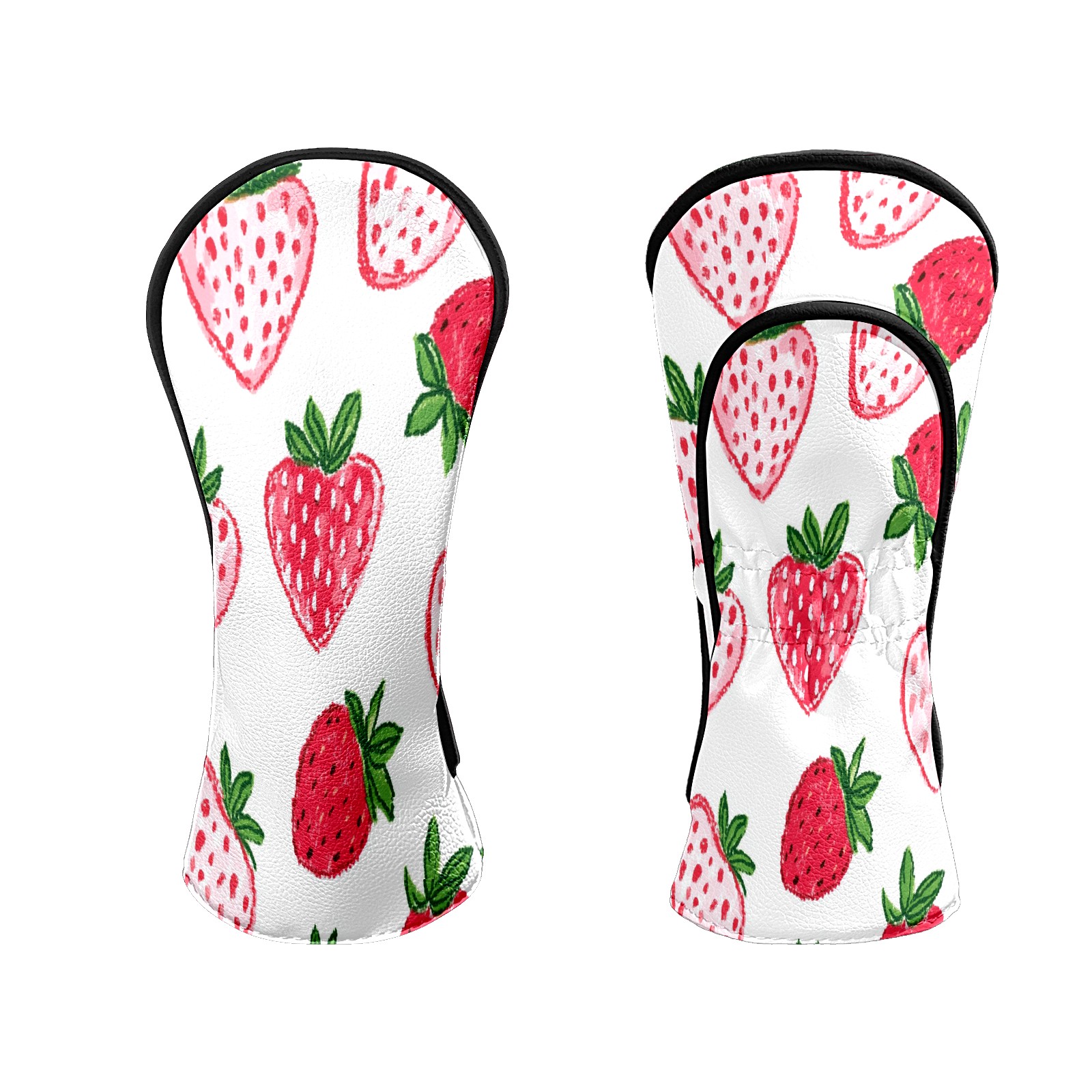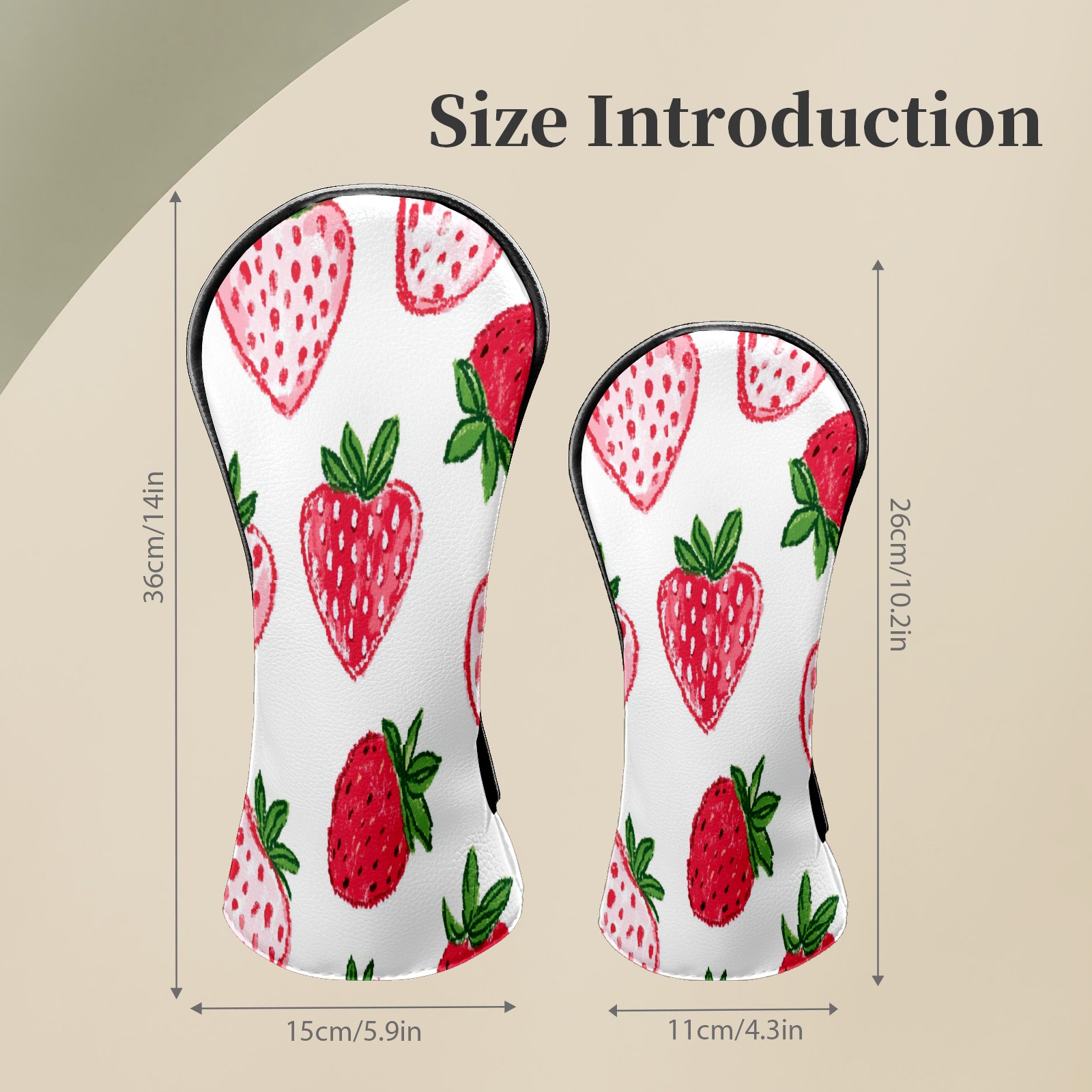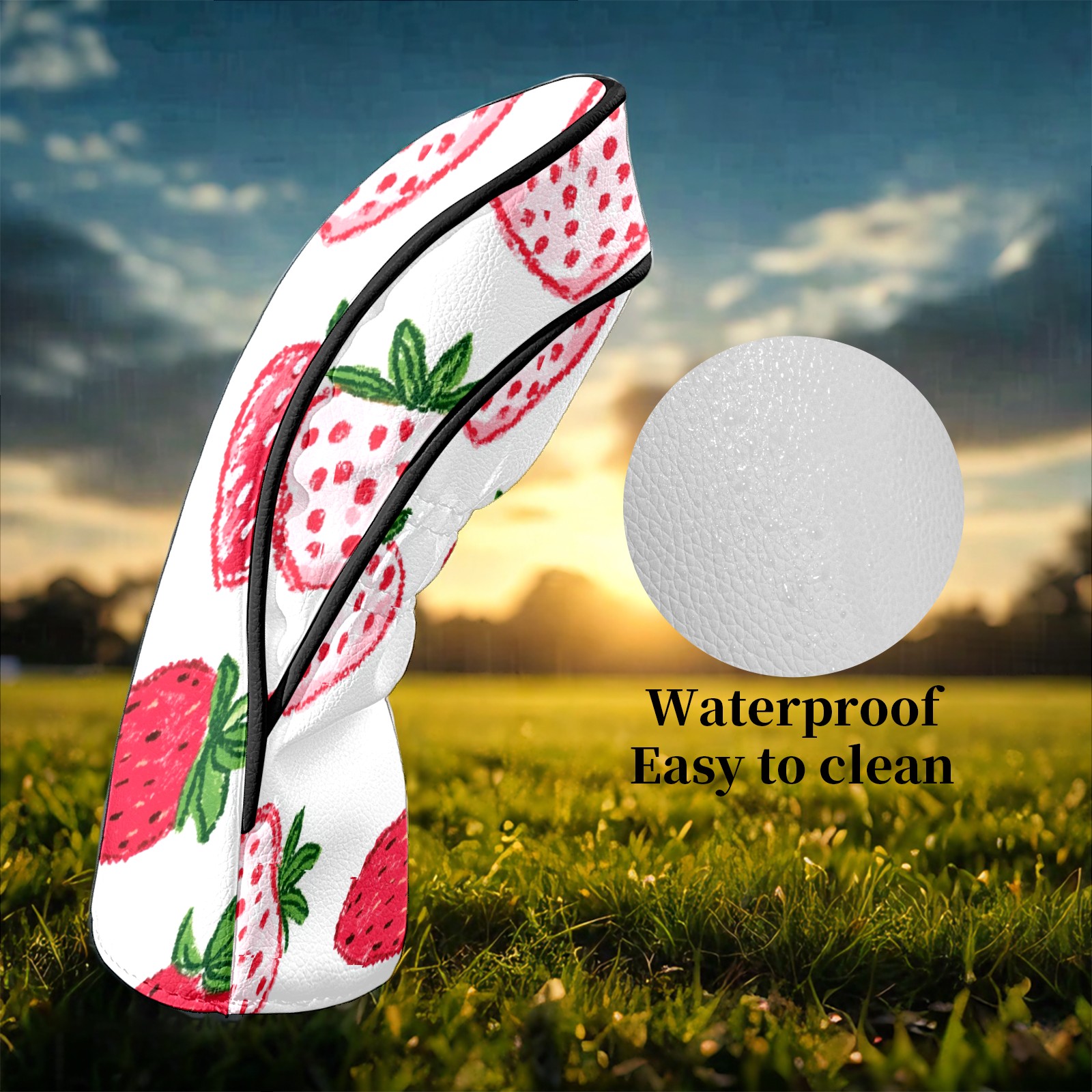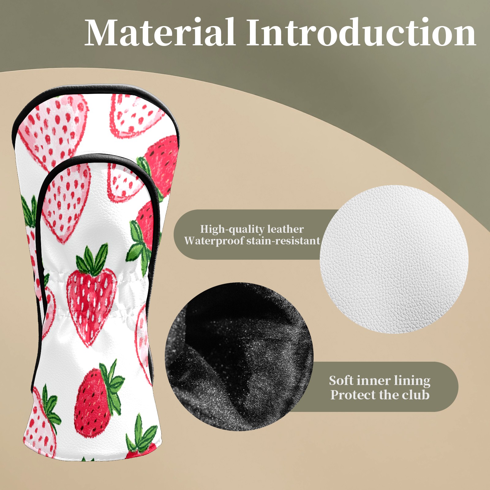 Golf Club Head Covers for Driver and Fairway Woods, Waterproof Leather Headcovers for Golf Clubs, Ideal Golf Accessories Gift for Men Women (Strawberry Hearts)