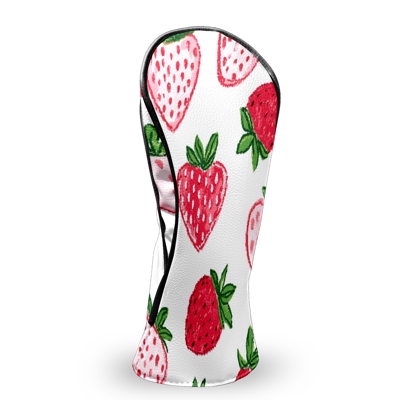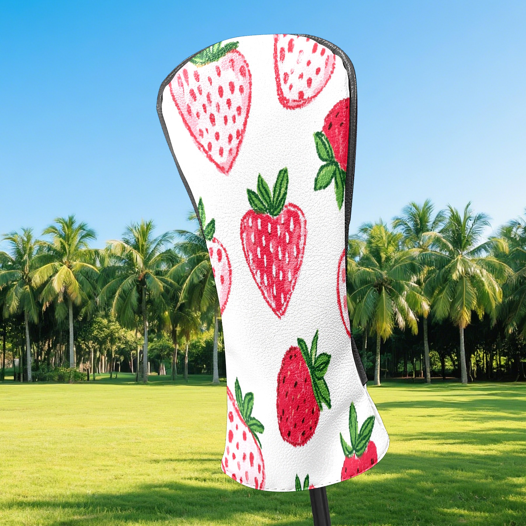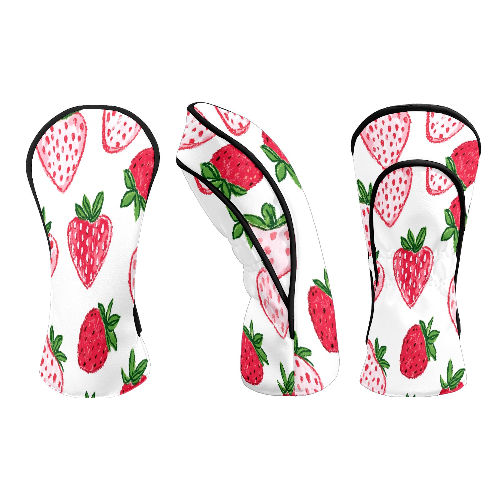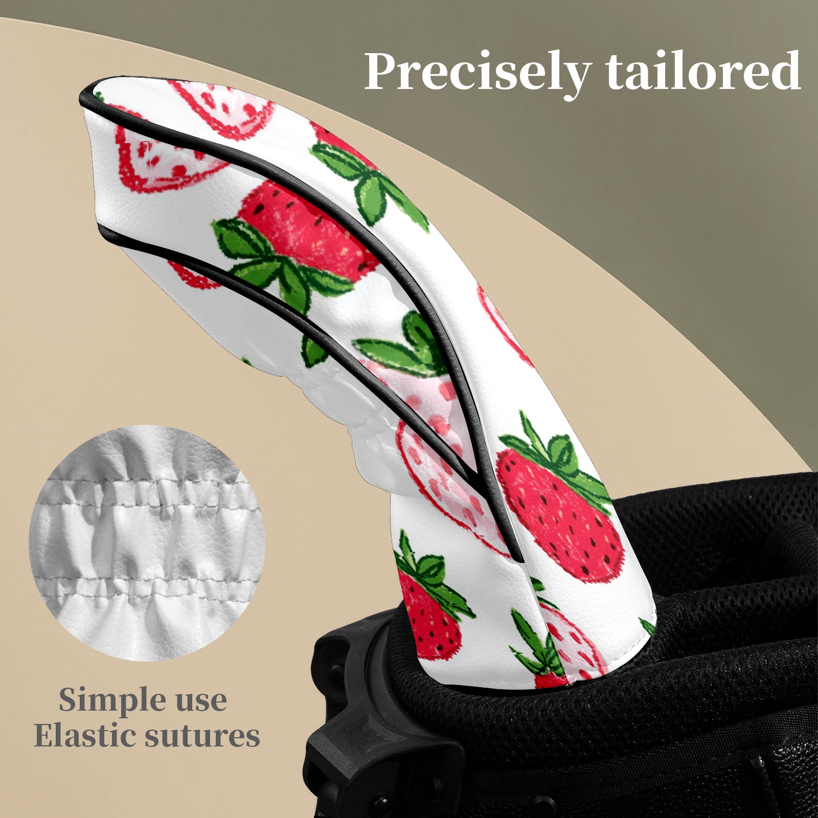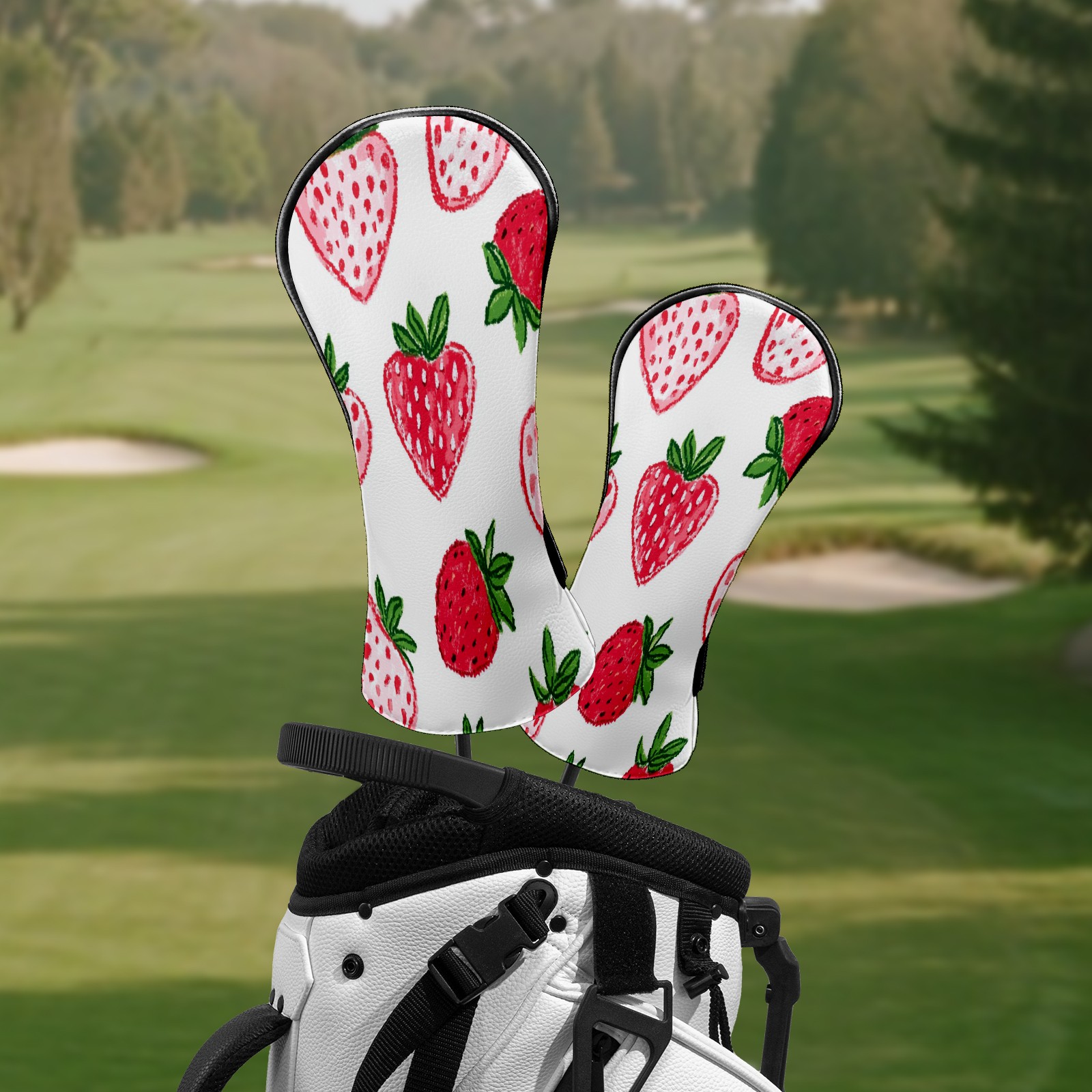 Golf Club Head Covers for Driver and Fairway Woods, Waterproof Leather Headcovers for Golf Clubs, Ideal Golf Accessories Gift for Men Women (Strawberry Hearts)