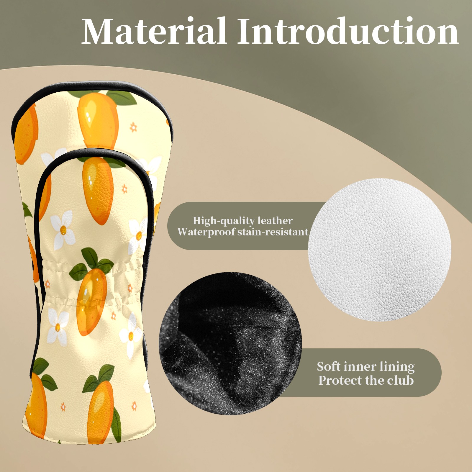 Golf Club Head Covers for Driver and Fairway Woods, Waterproof Leather Headcovers for Golf Clubs, Ideal Golf Accessories Gift for Men Women (Mango)