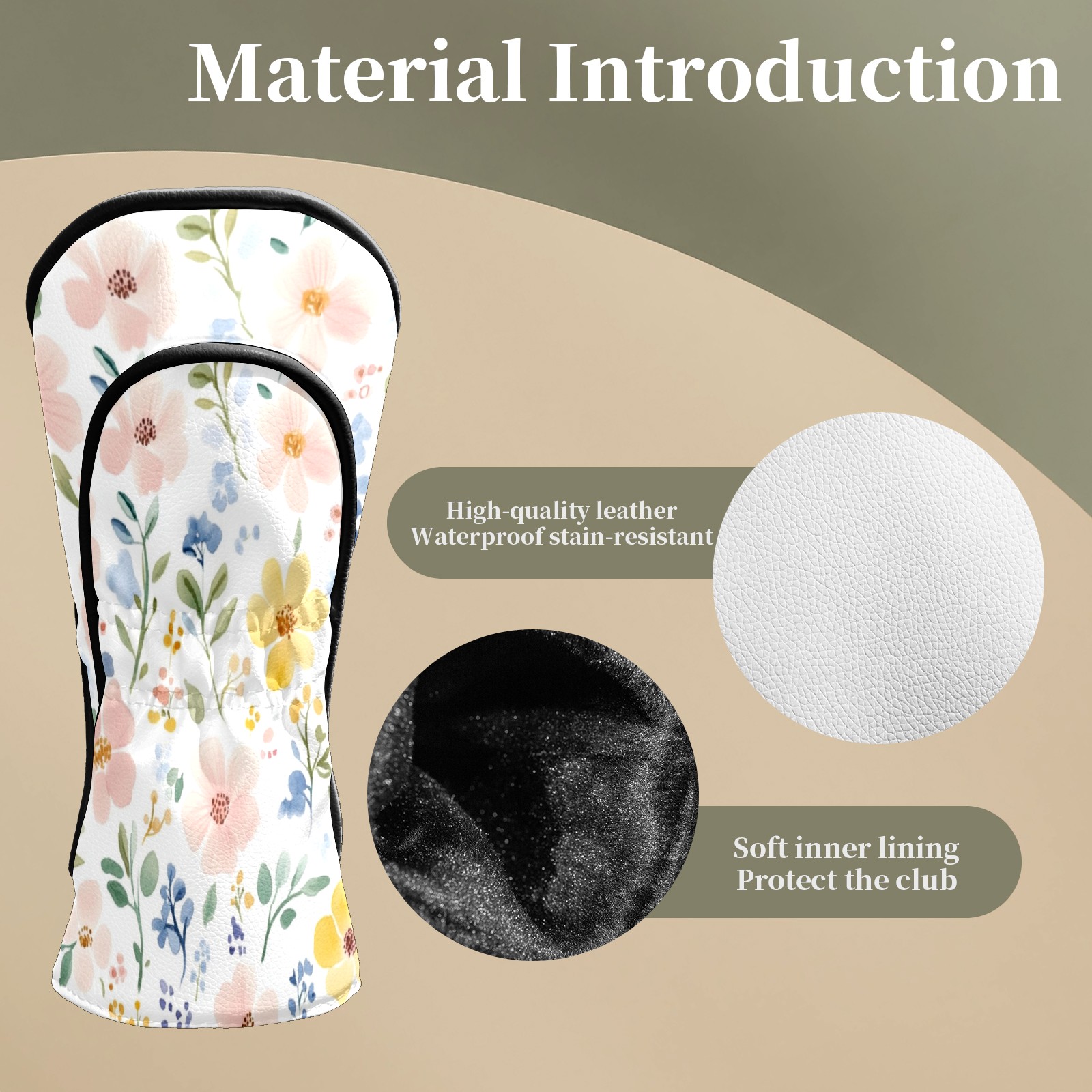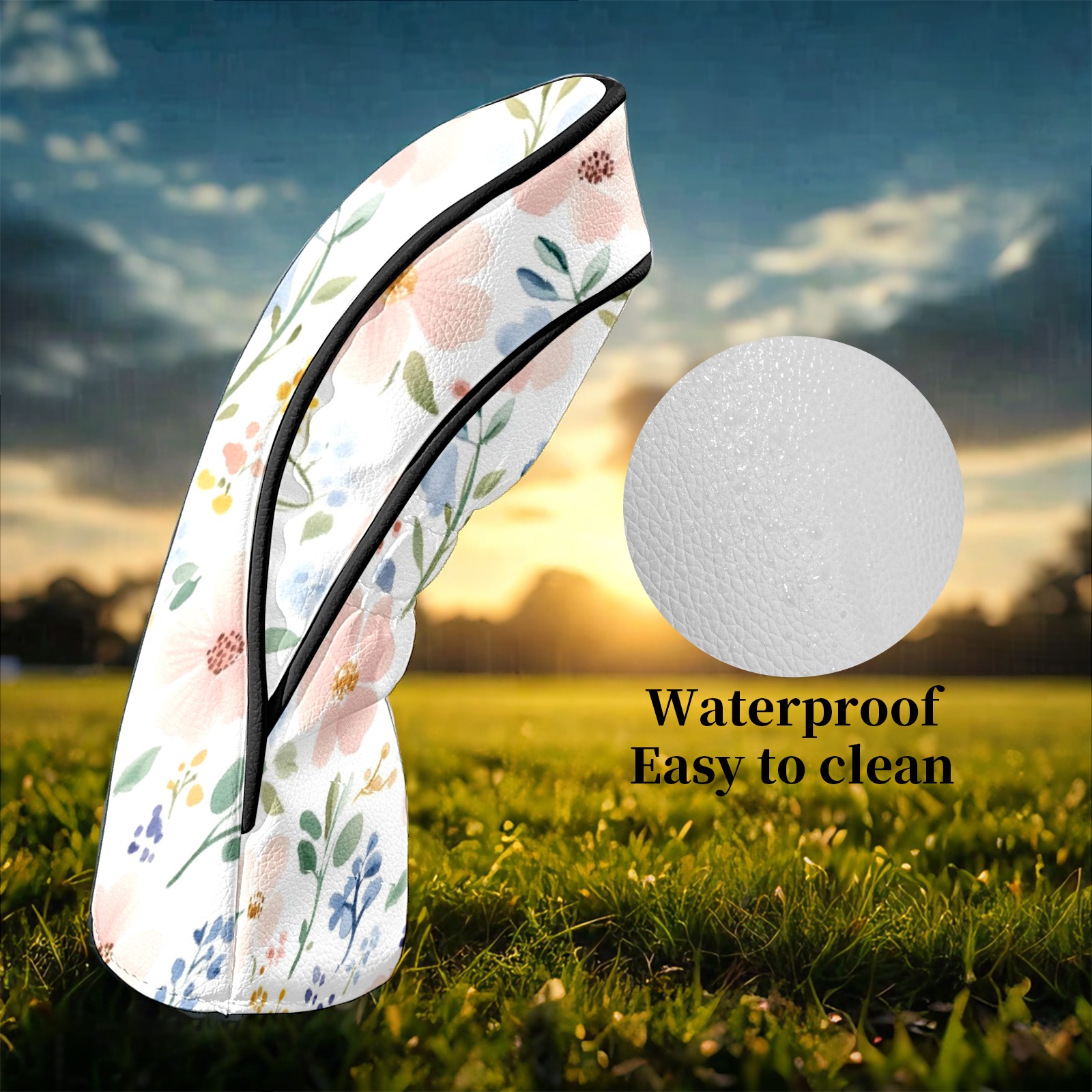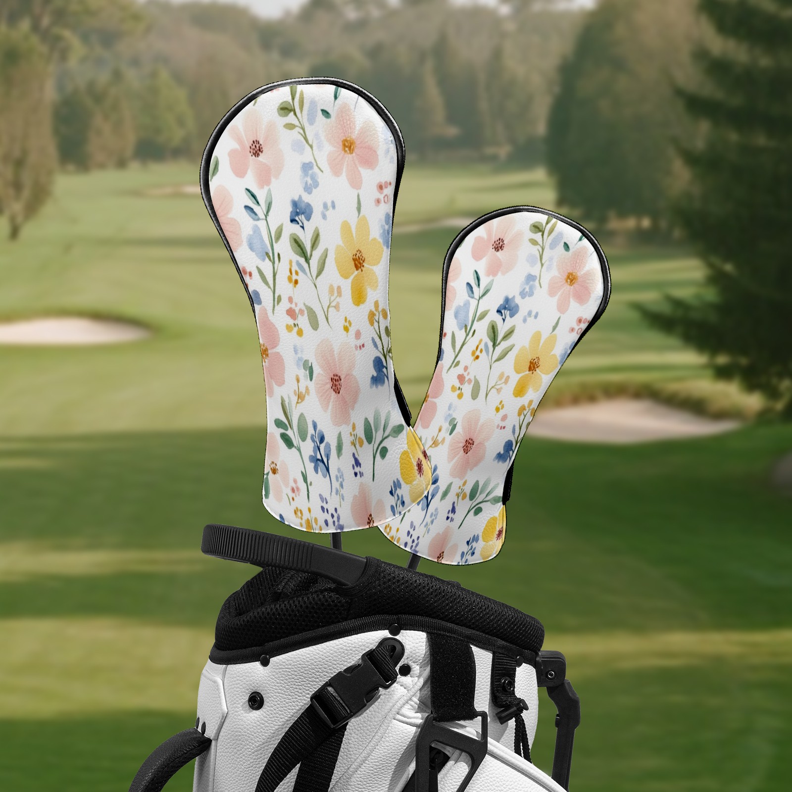 Golf Club Head Covers for Driver and Fairway Woods, Waterproof Leather Headcovers for Golf Clubs, Ideal Golf Accessories Gift for Men Women (Watercolor Floral)