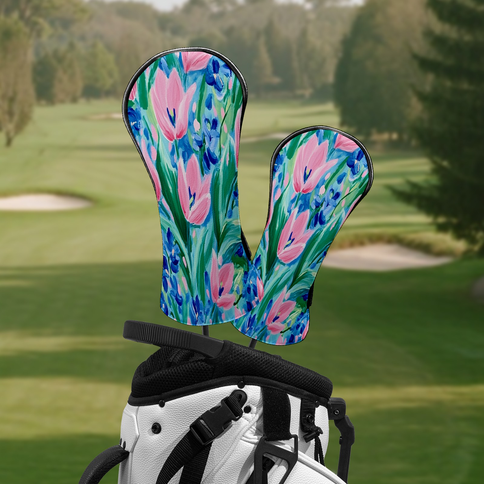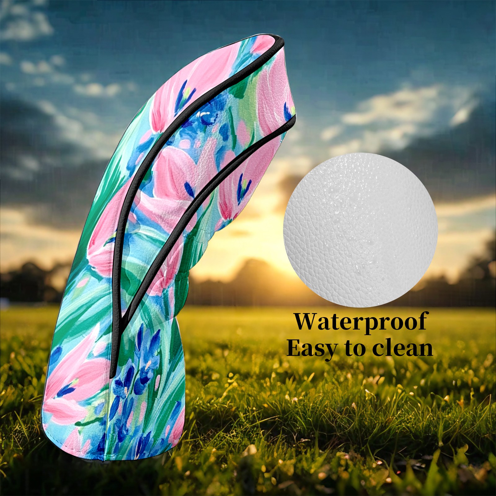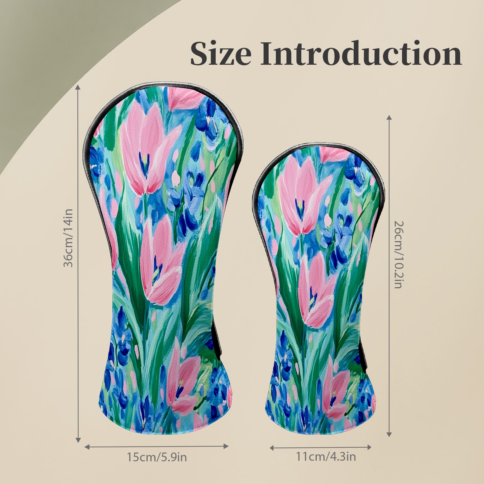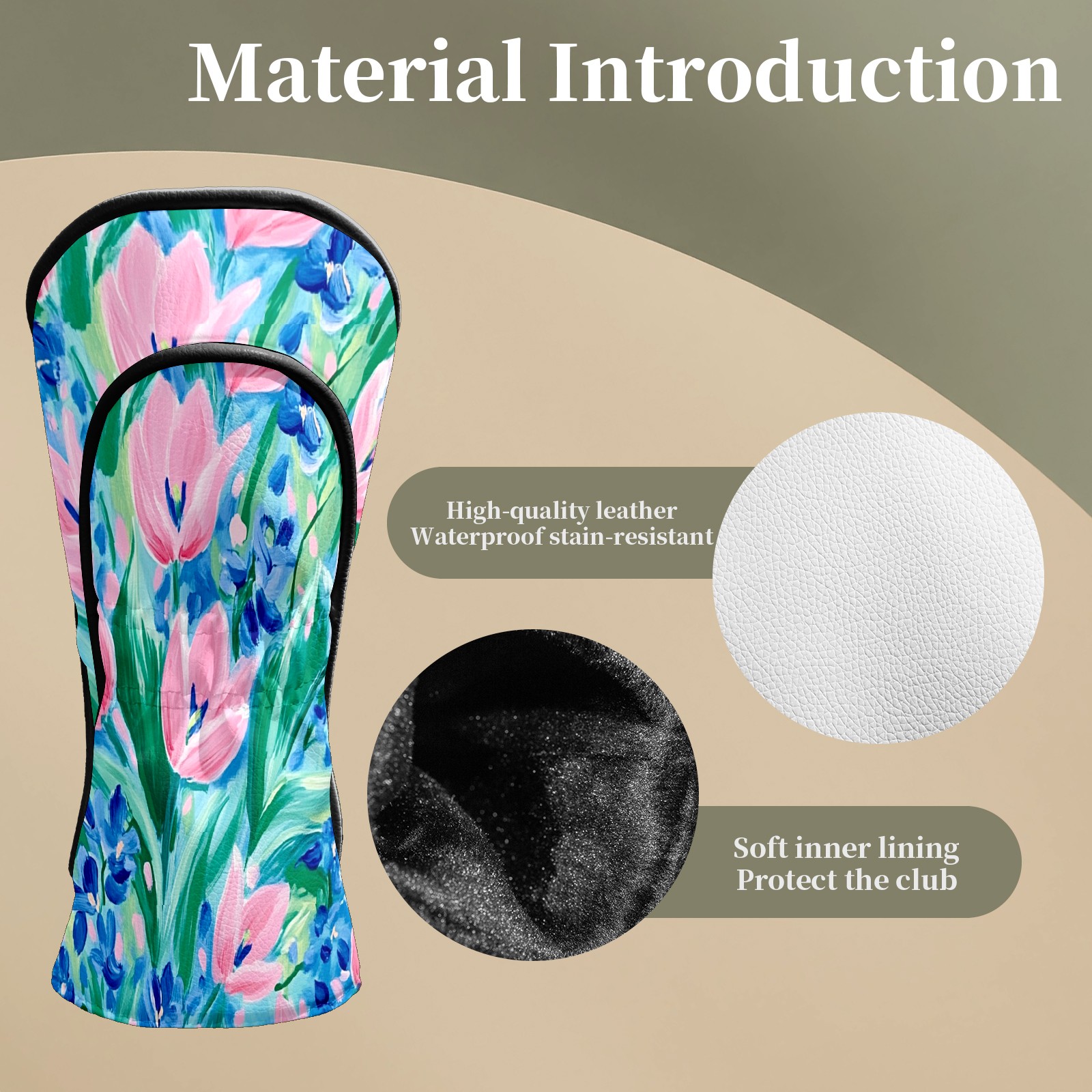 Golf Club Head Covers for Driver and Fairway Woods, Waterproof Leather Headcovers for Golf Clubs, Ideal Golf Accessories Gift for Men Women (Tulips)