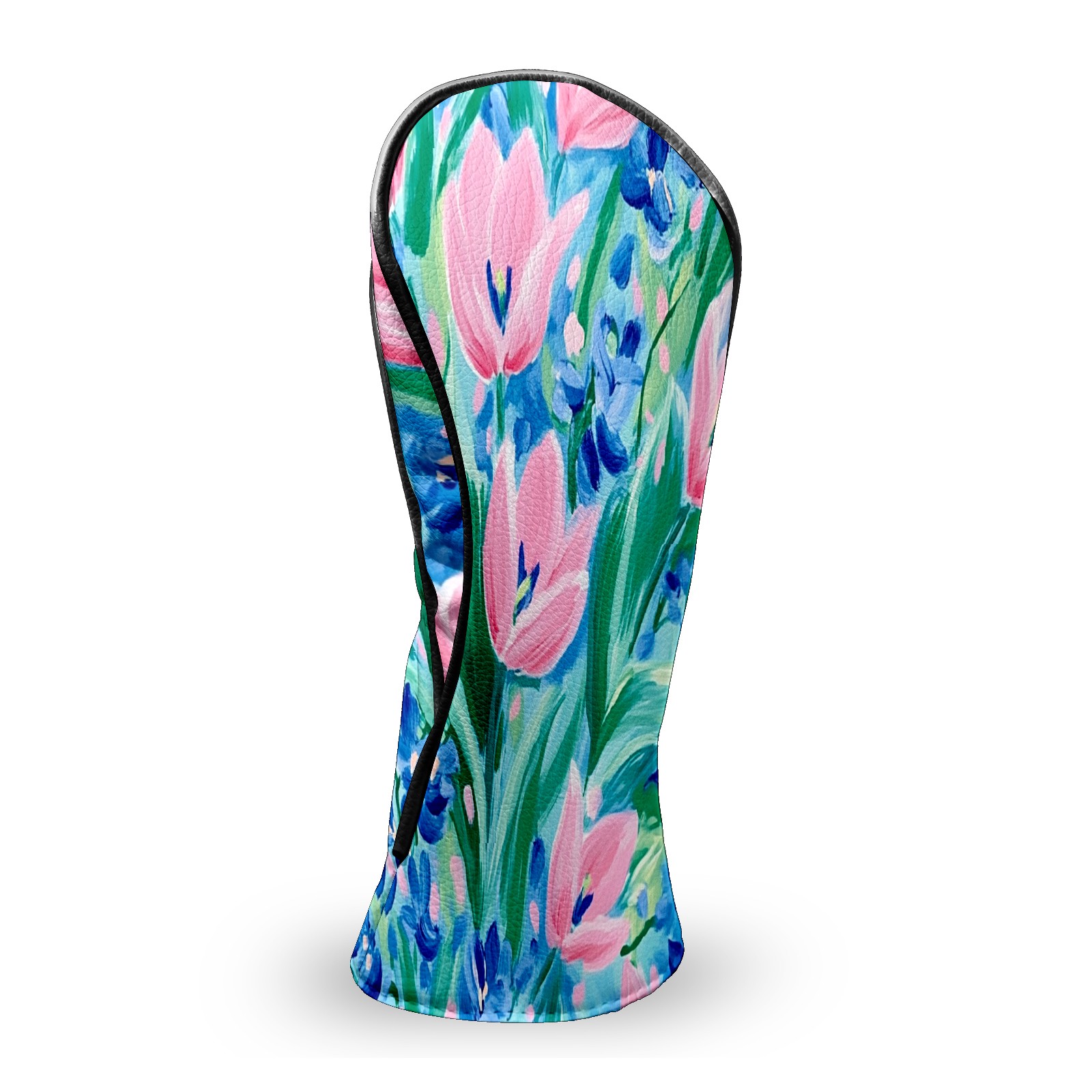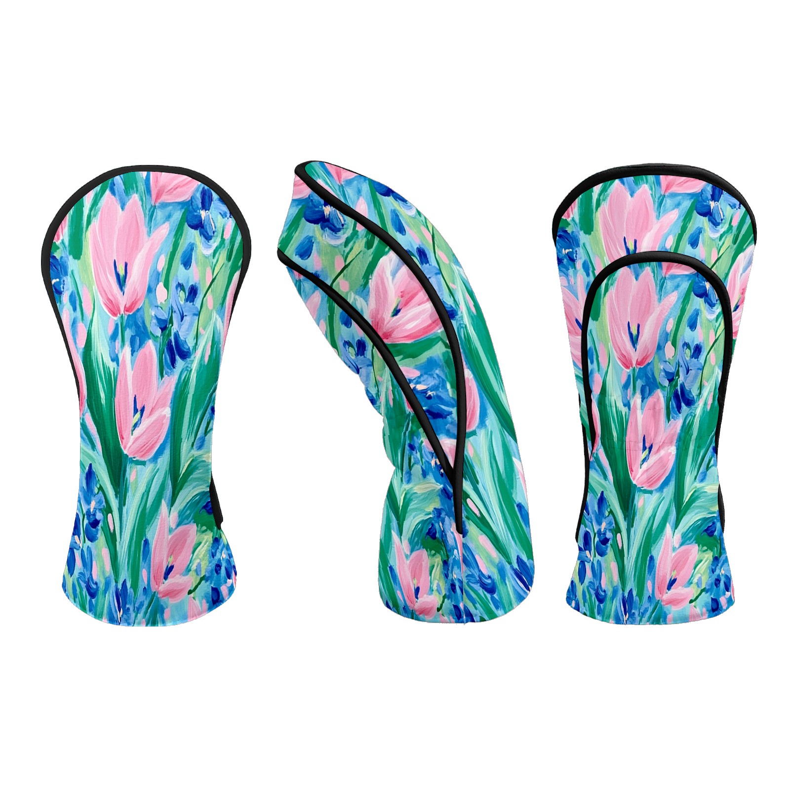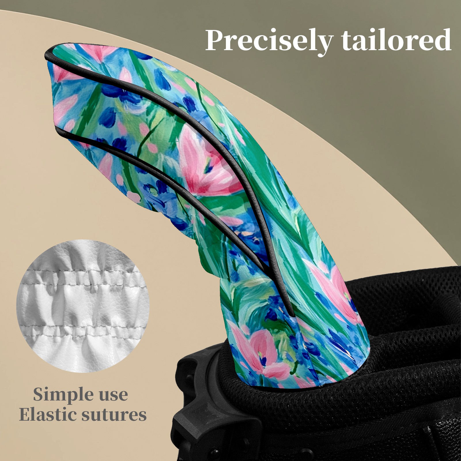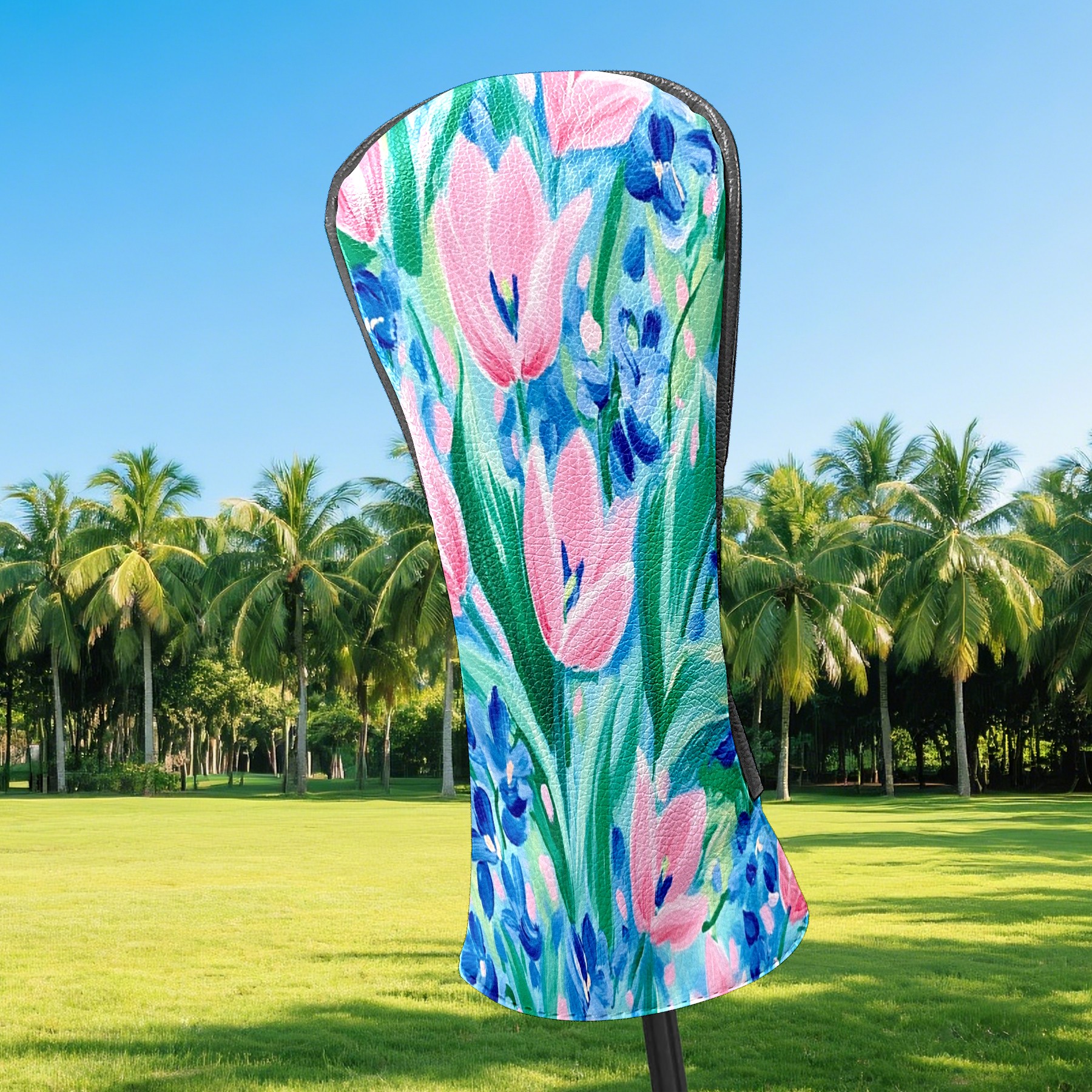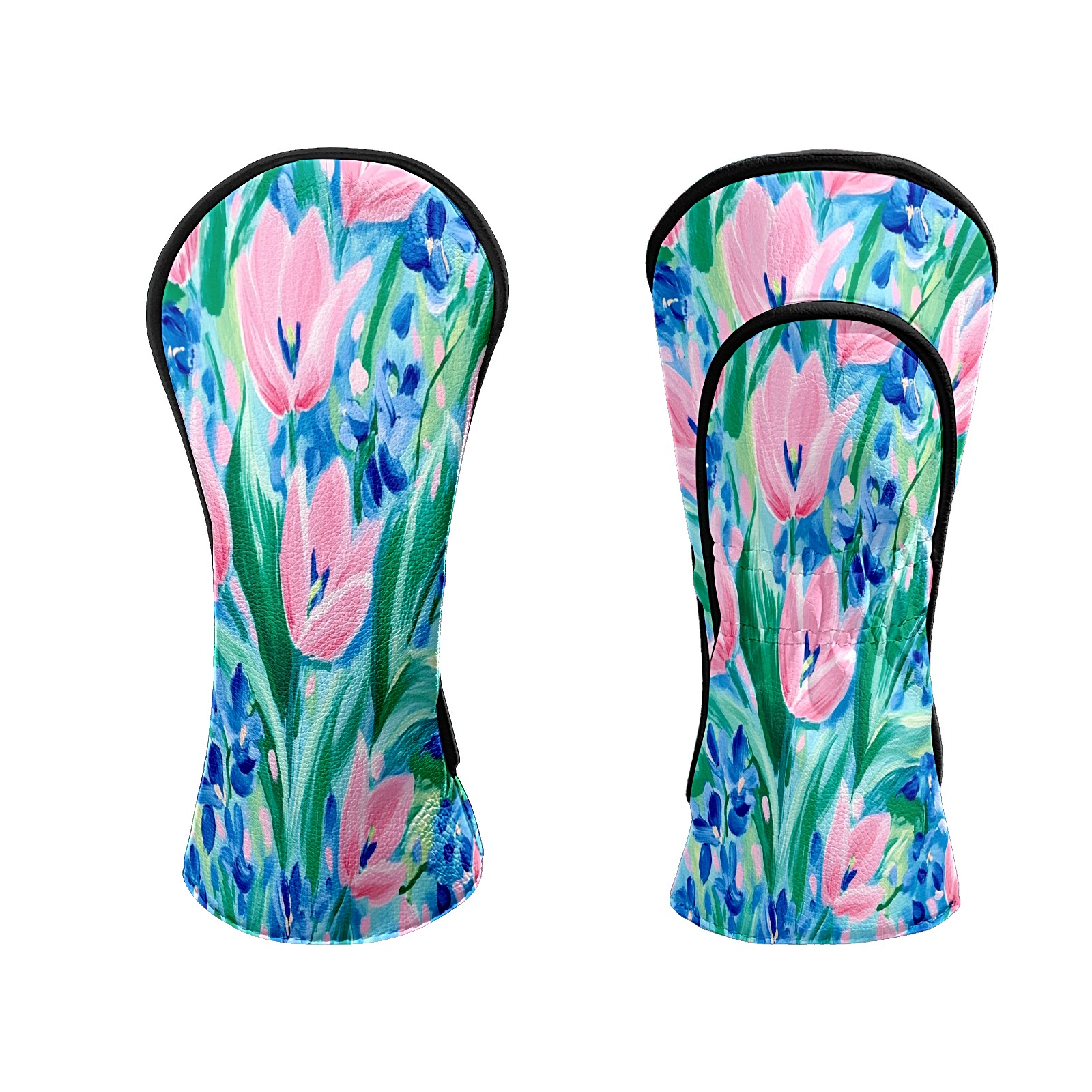Golf Club Head Covers for Driver and Fairway Woods, Waterproof Leather Headcovers for Golf Clubs, Ideal Golf Accessories Gift for Men Women (Tulips)