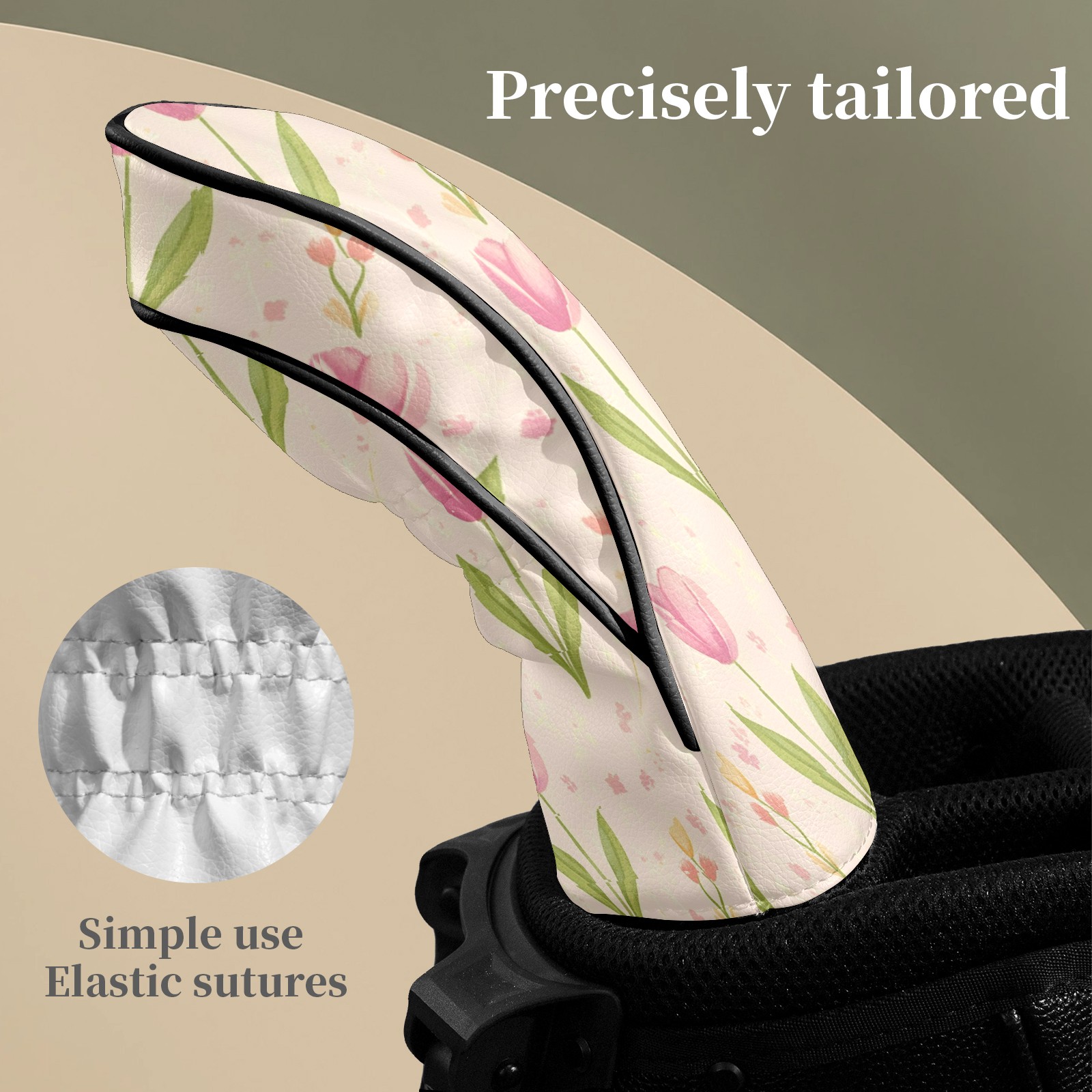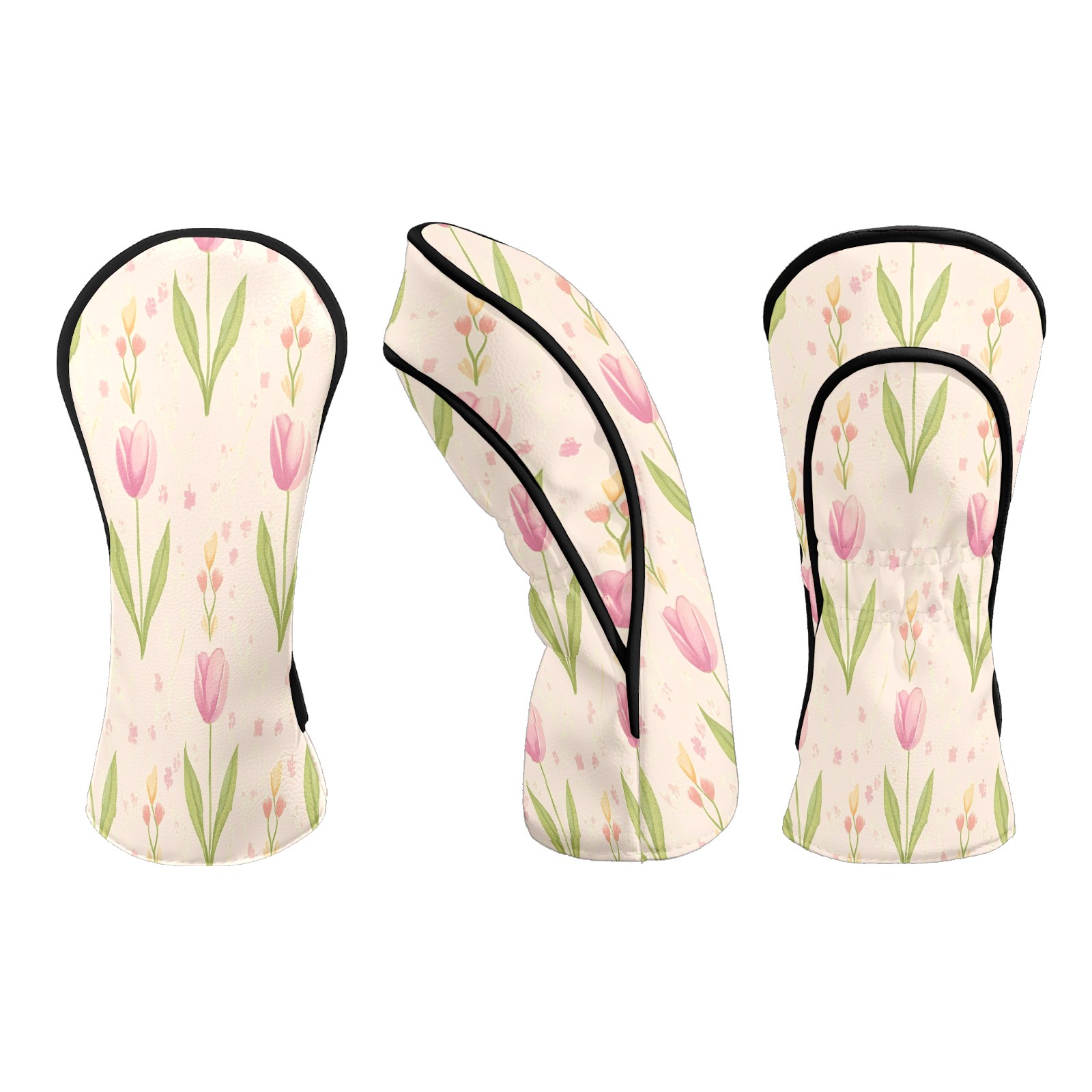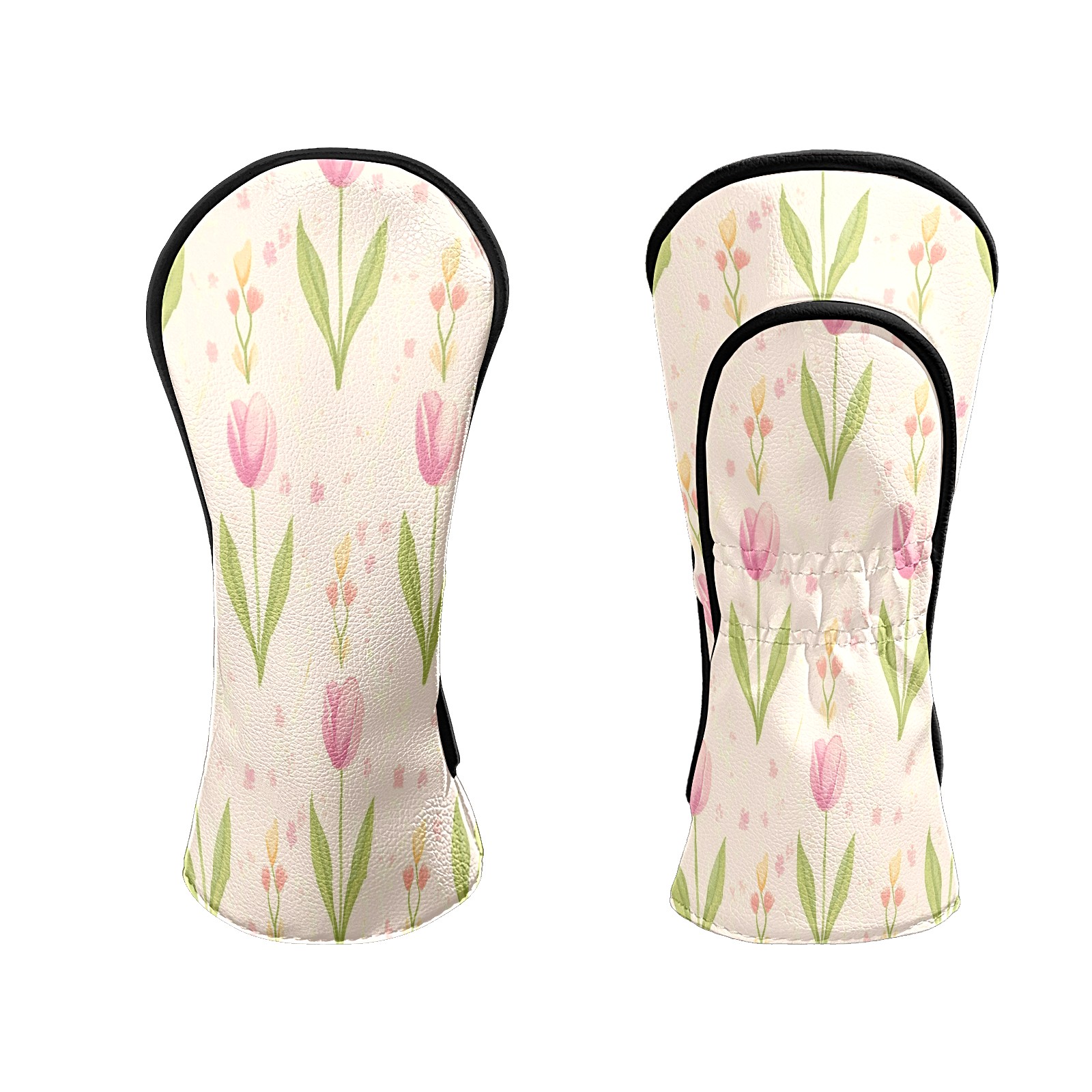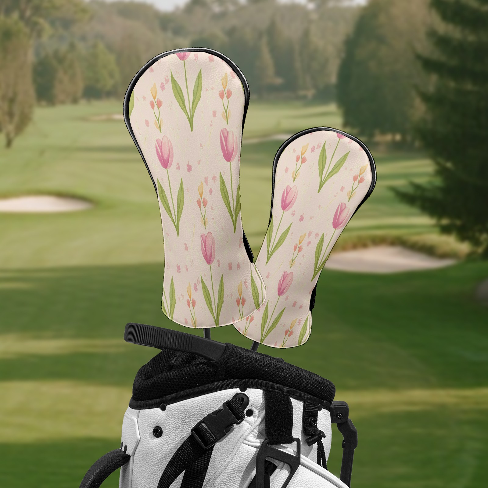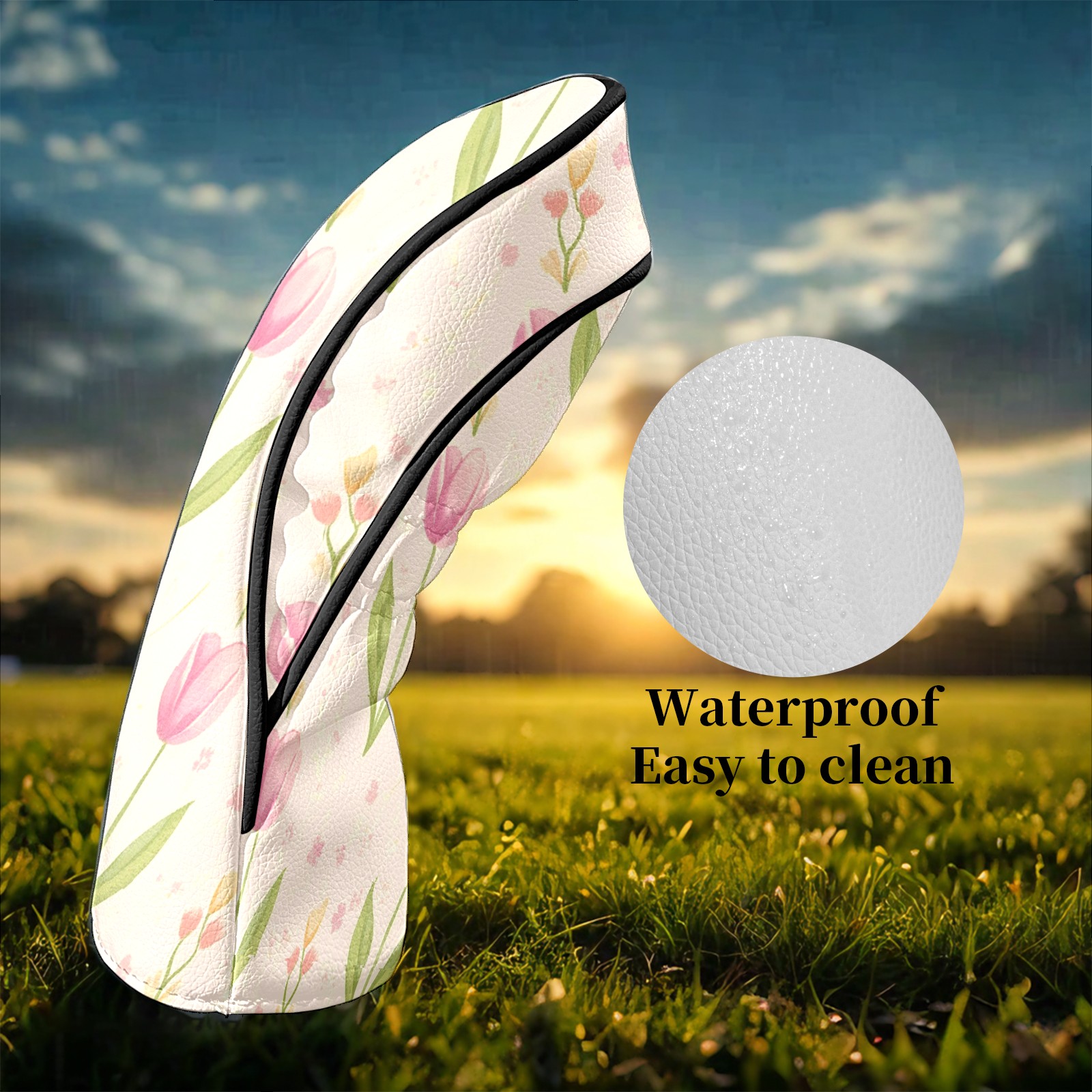 Golf Club Head Covers for Driver and Fairway Woods, Waterproof Leather Headcovers for Golf Clubs, Ideal Golf Accessories Gift for Men Women (Shabby Chic Tulip)