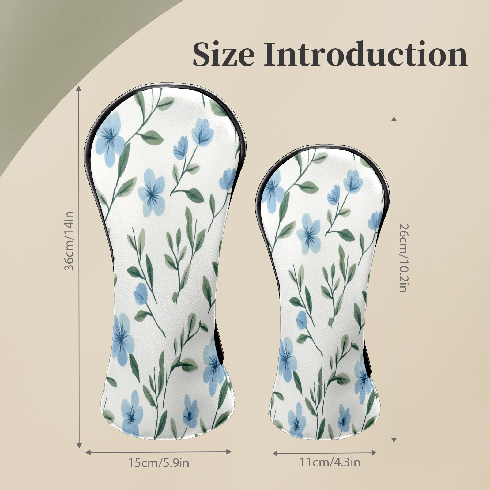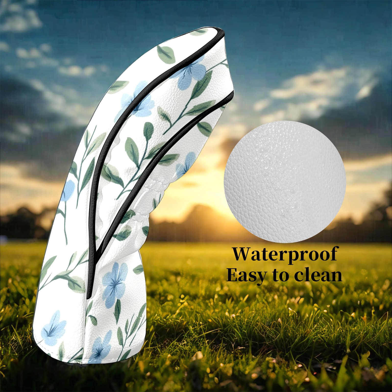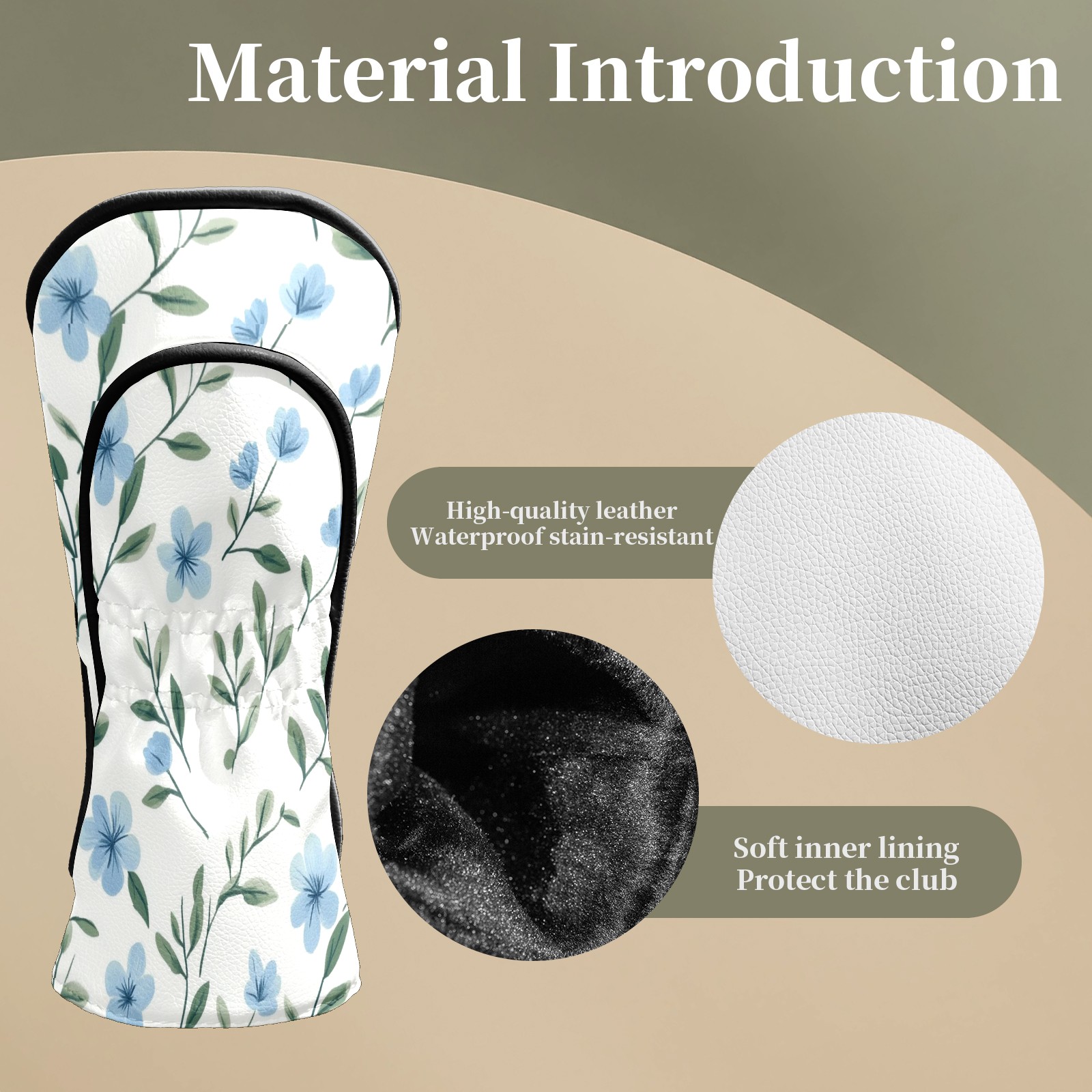 Golf Club Head Covers for Driver and Fairway Woods, Waterproof Leather Headcovers for Golf Clubs, Ideal Golf Accessories Gift for Men Women (Pastel Blue Flowers)