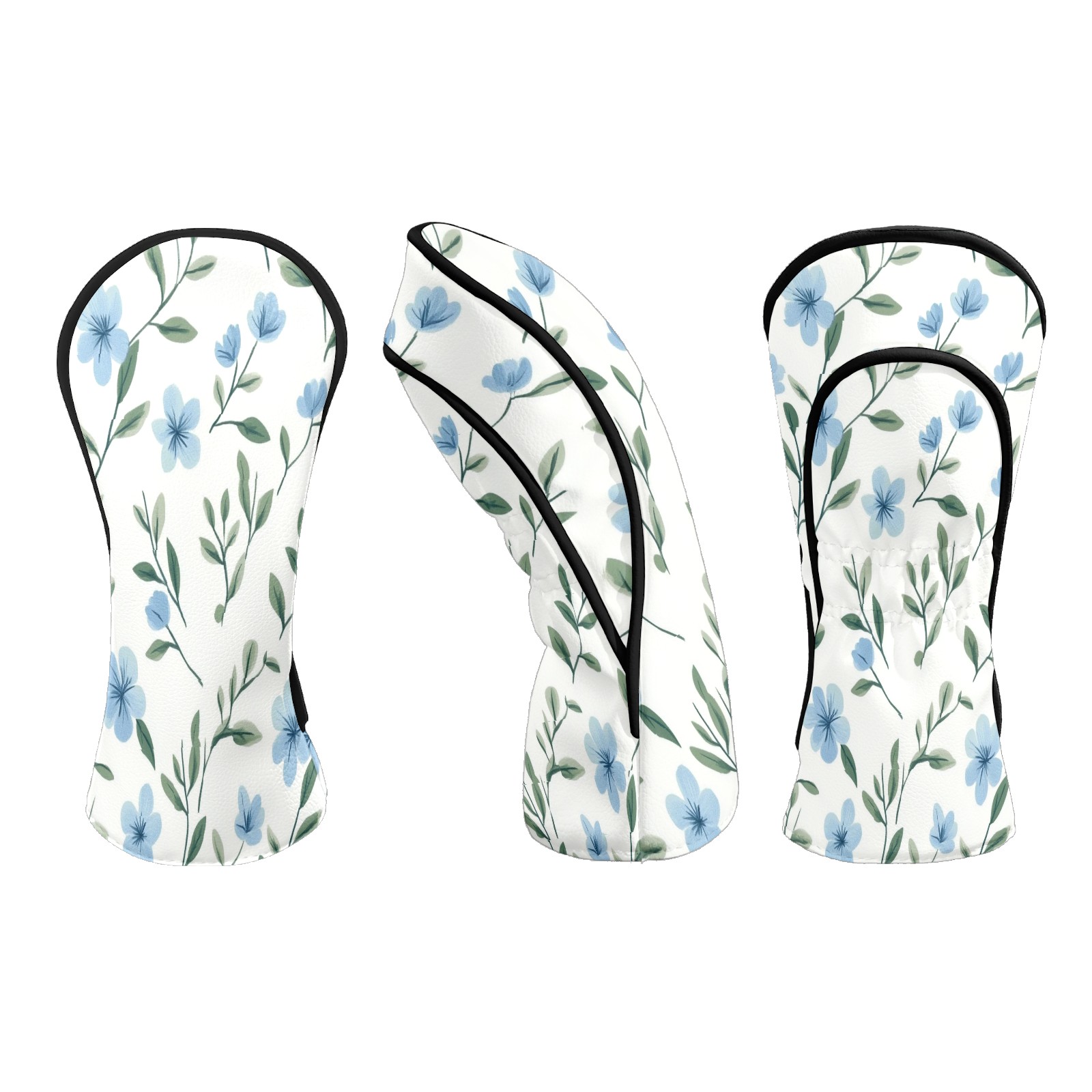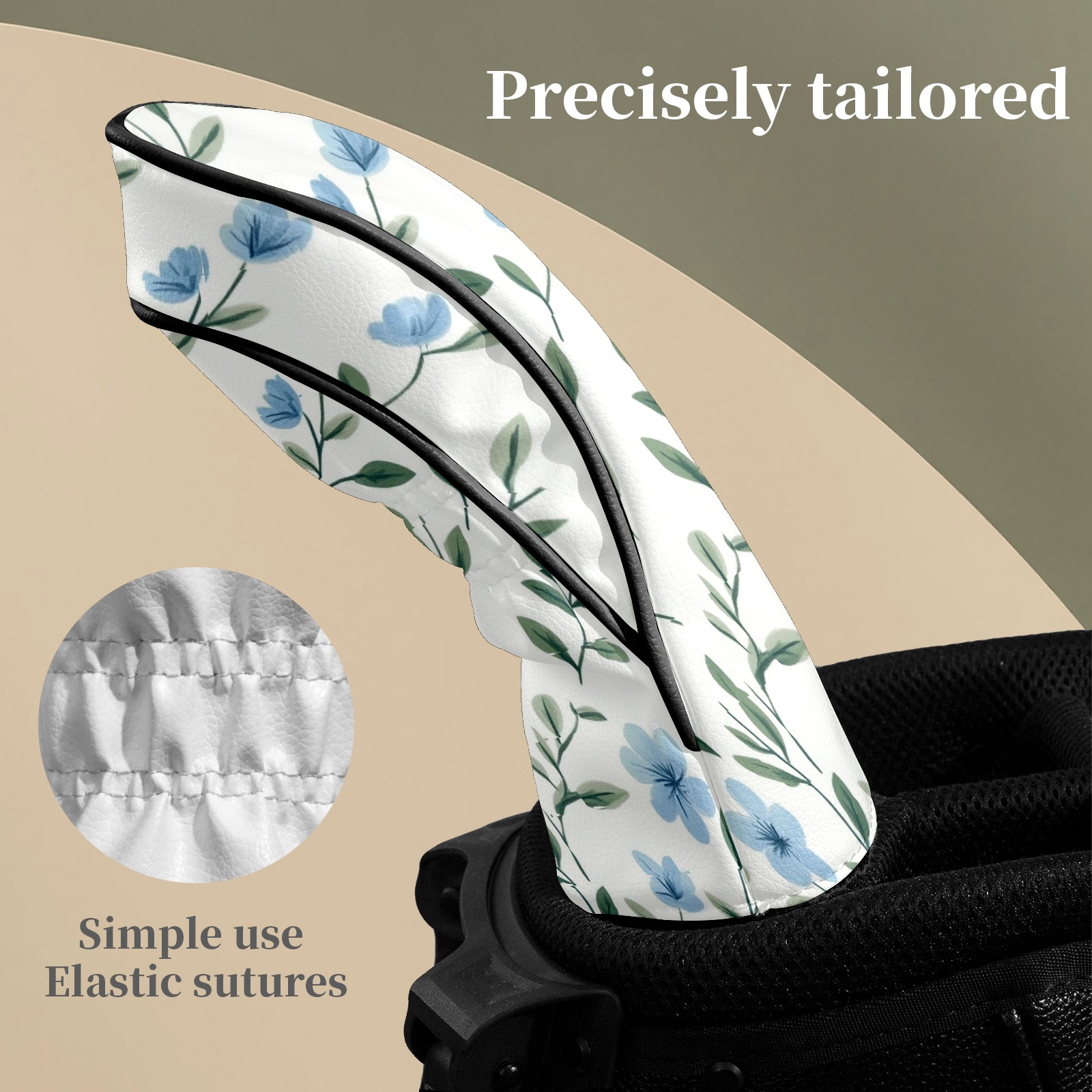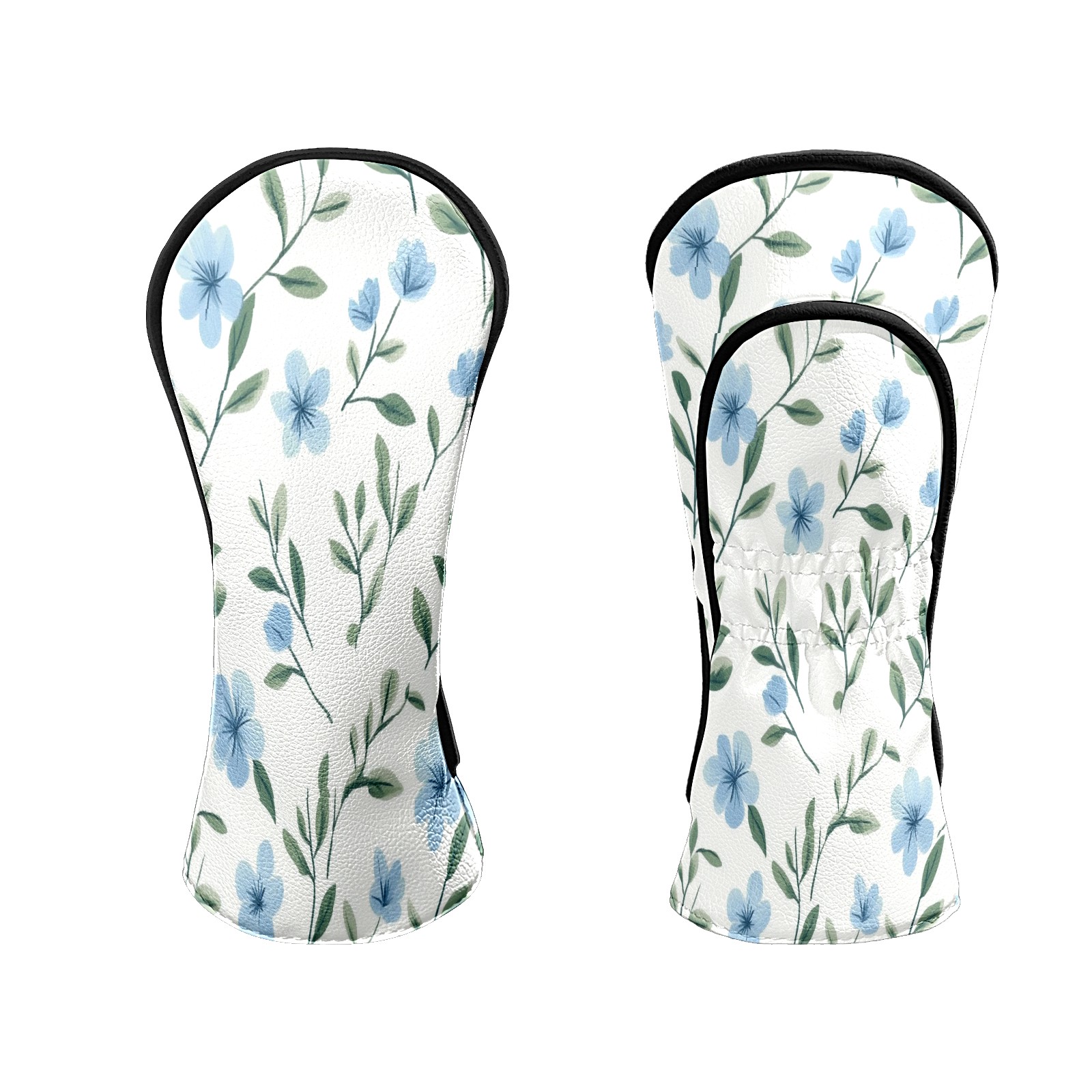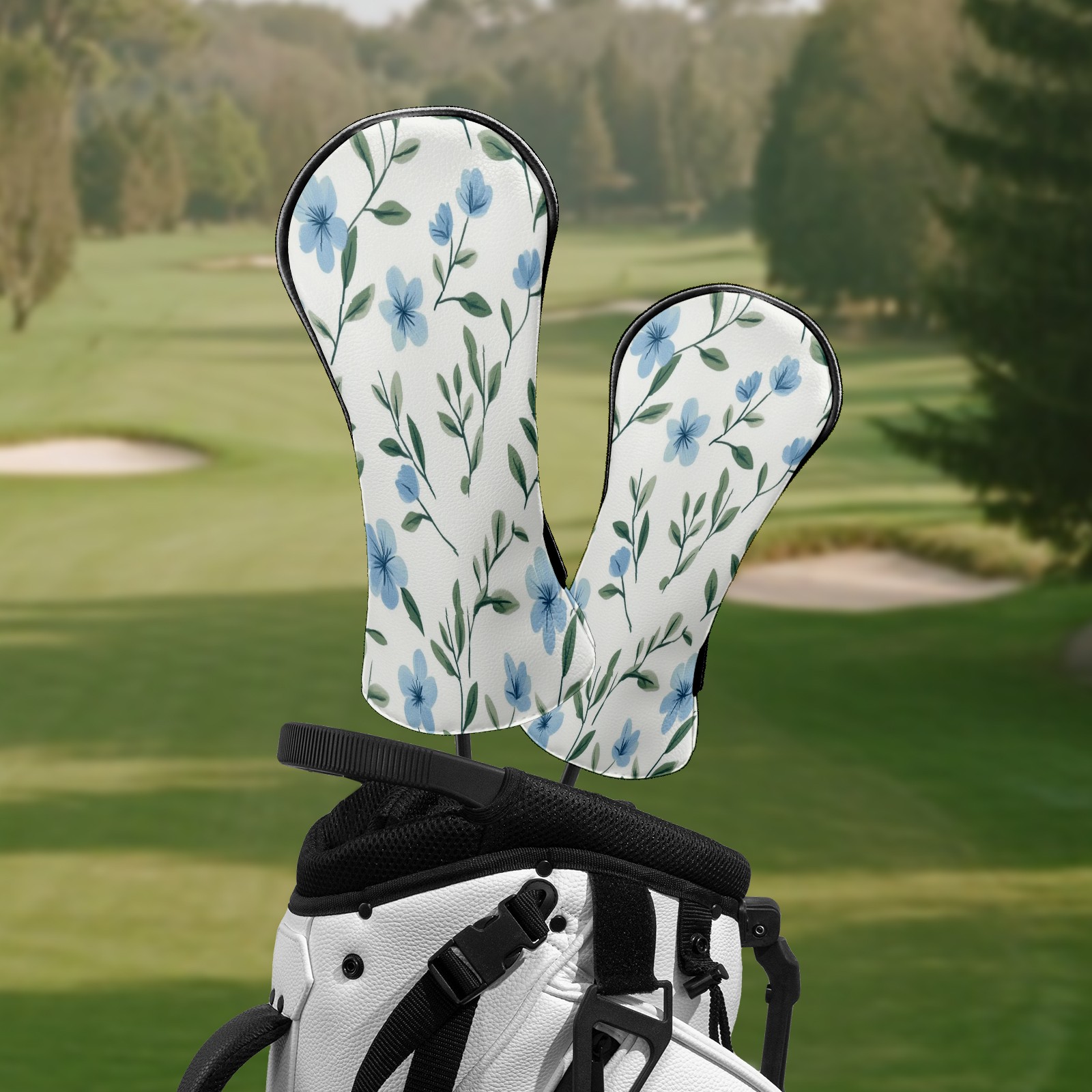 Golf Club Head Covers for Driver and Fairway Woods, Waterproof Leather Headcovers for Golf Clubs, Ideal Golf Accessories Gift for Men Women (Pastel Blue Flowers)