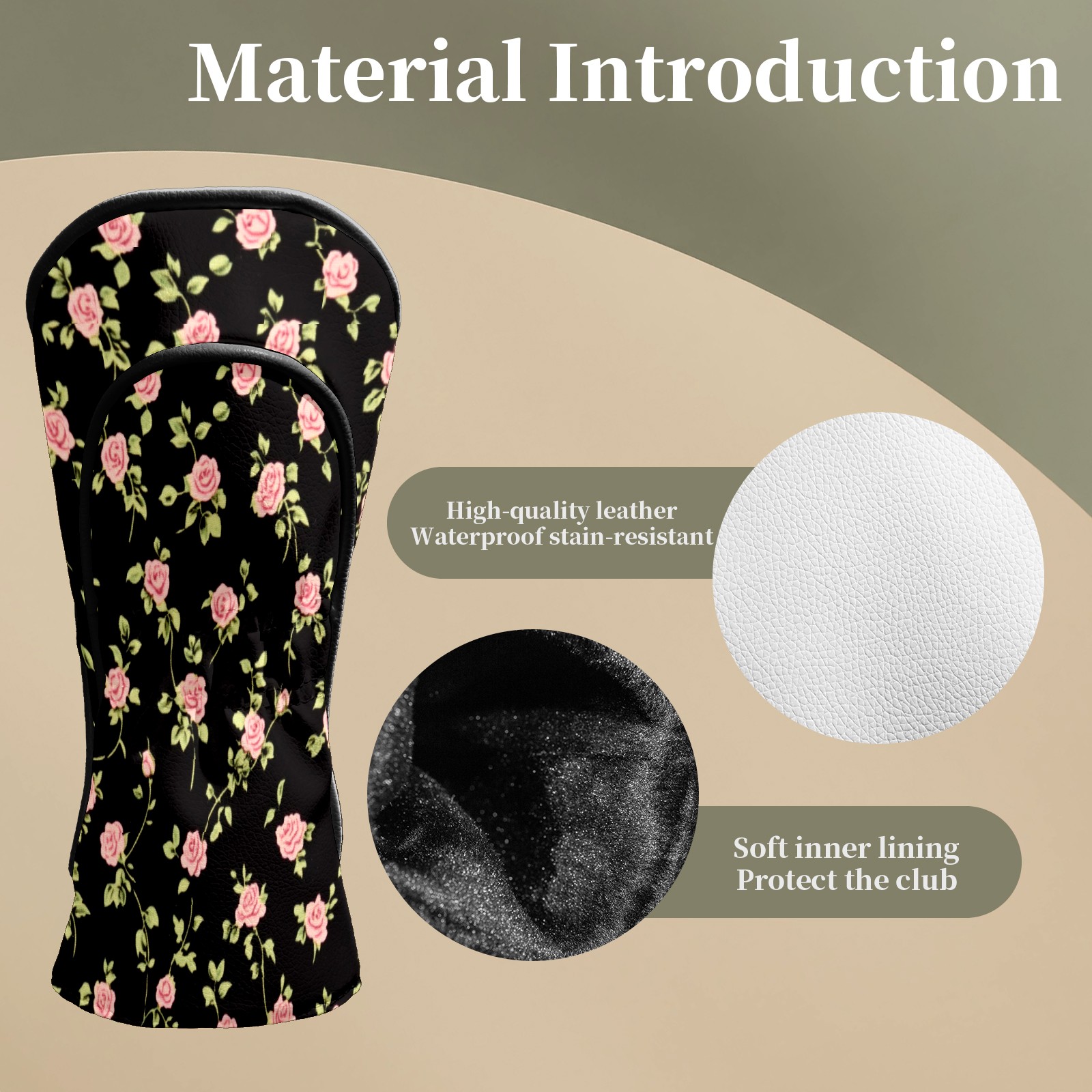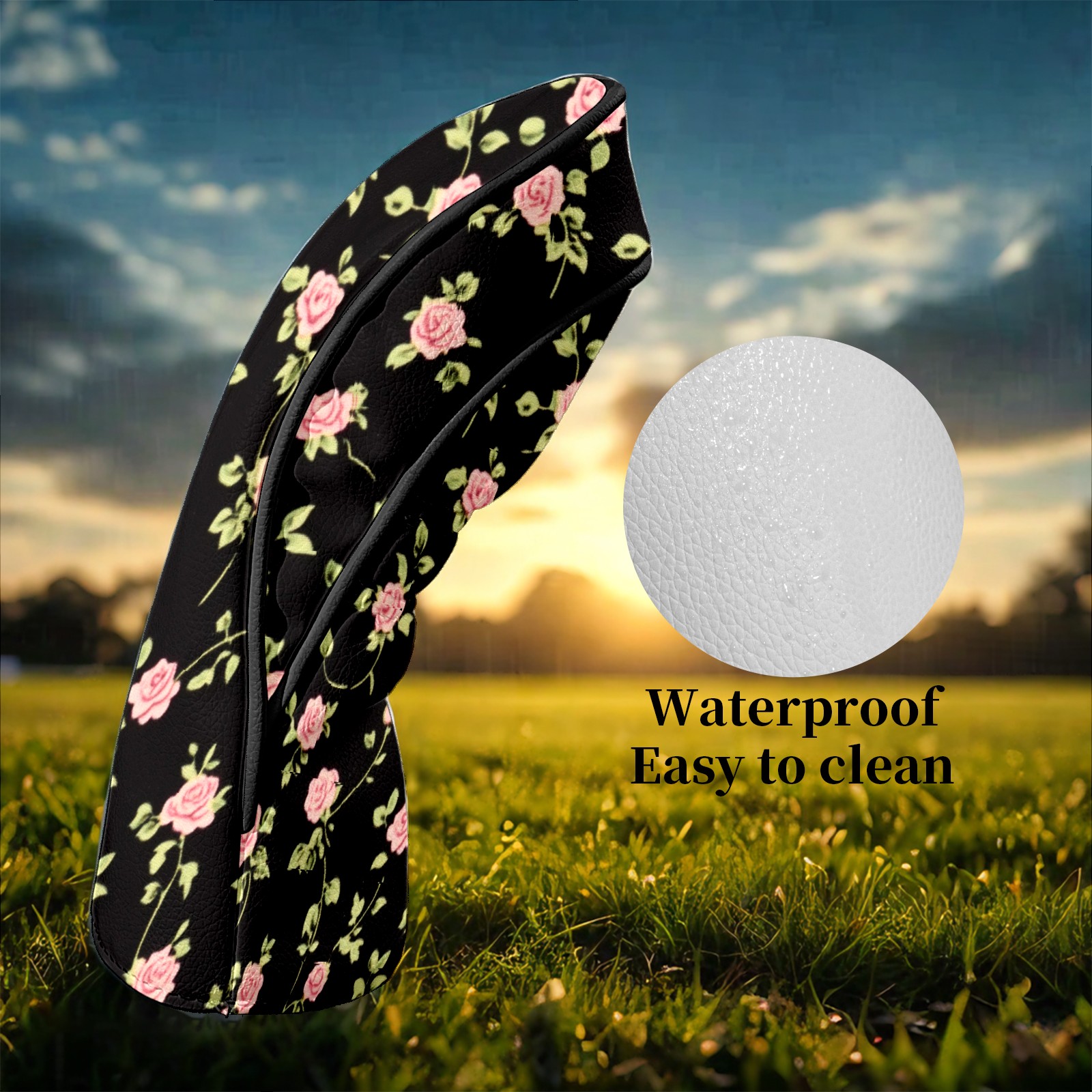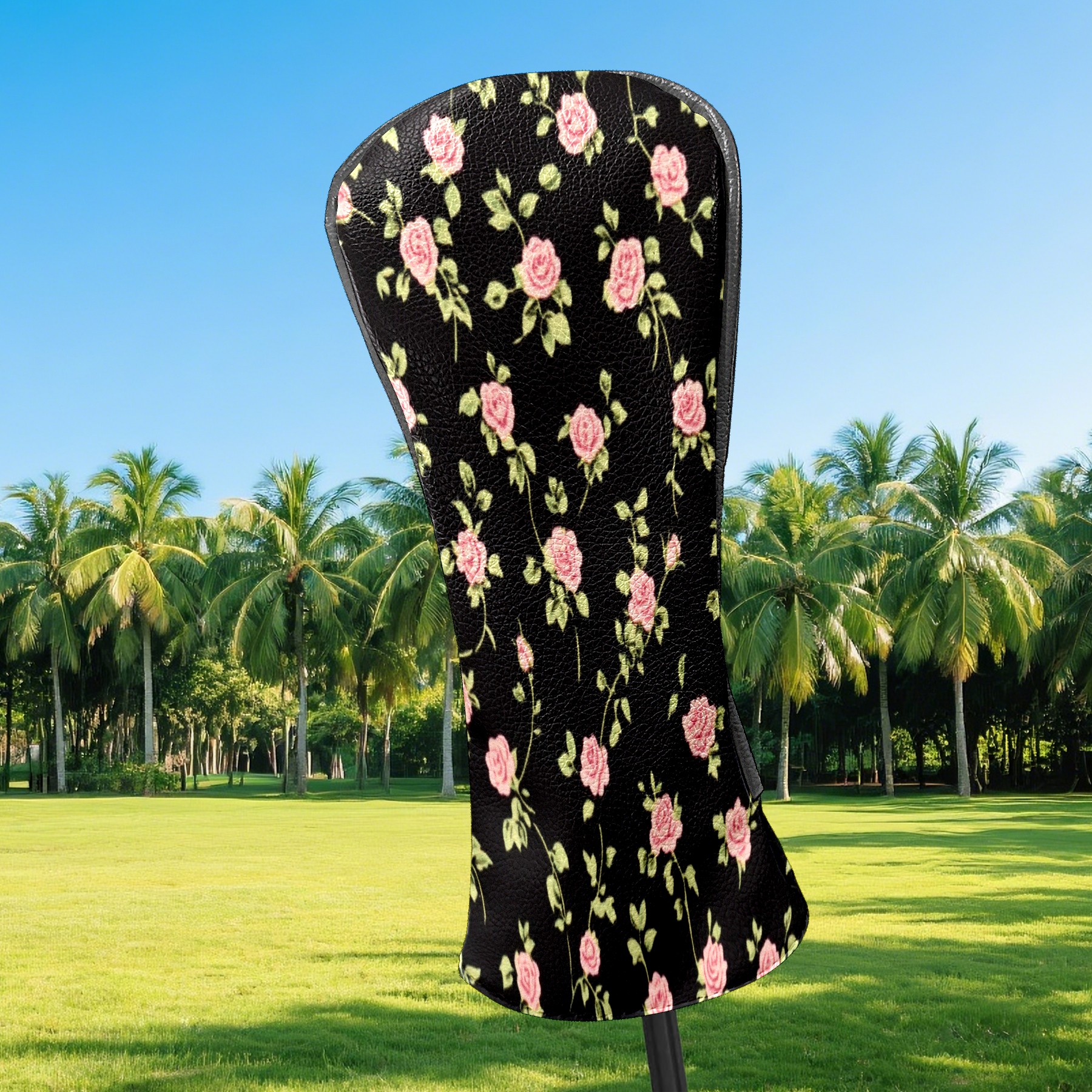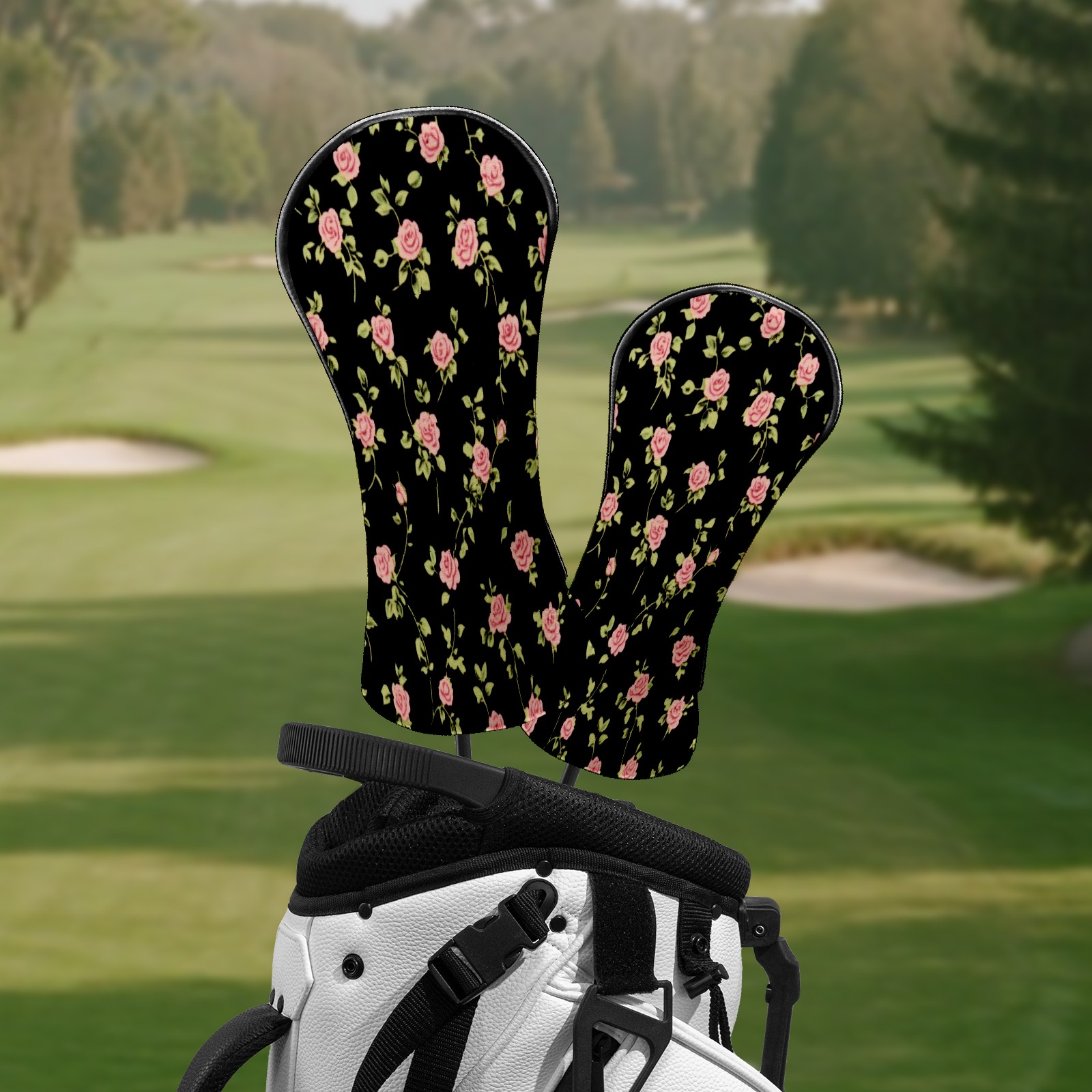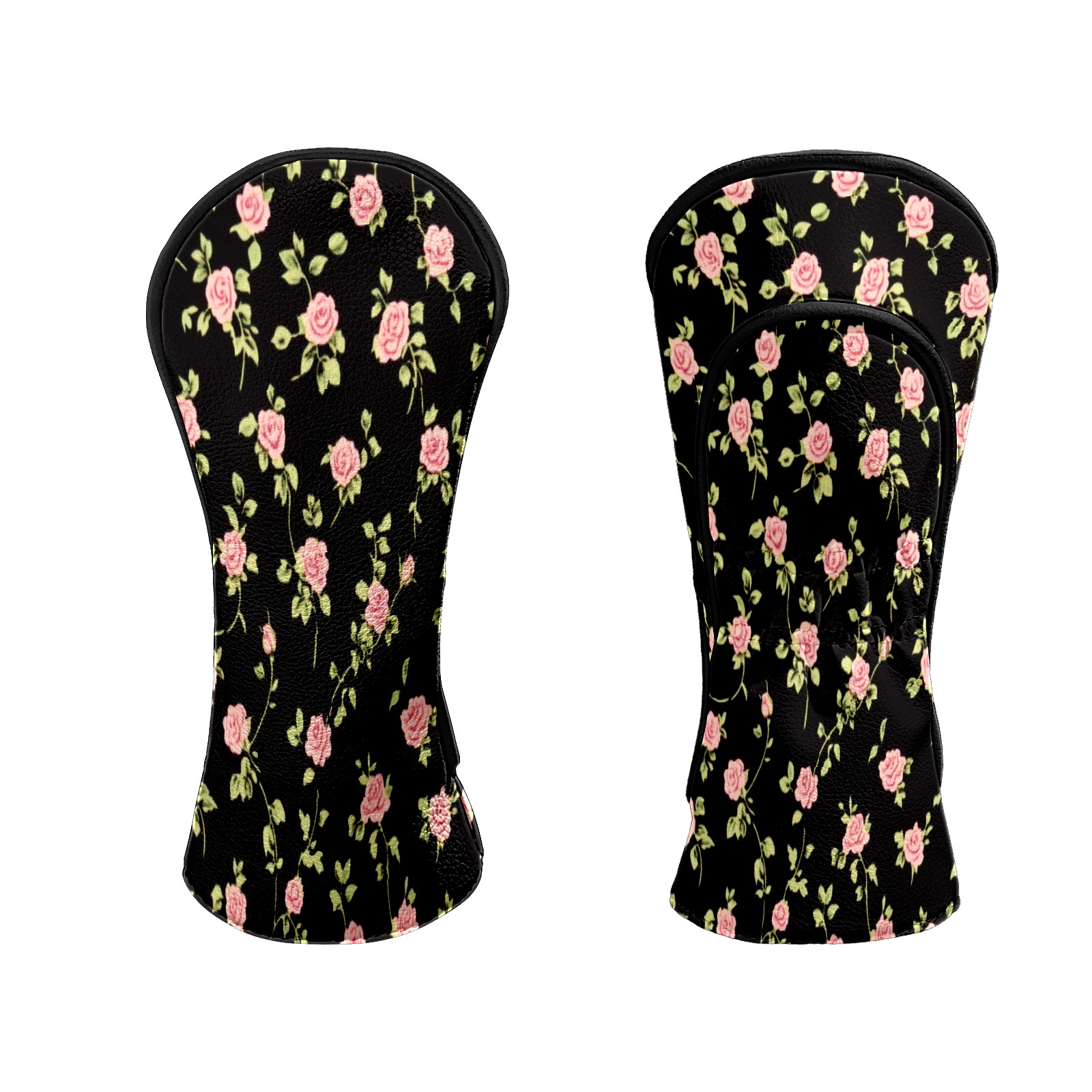 Golf Club Head Covers for Driver and Fairway Woods, Waterproof Leather Headcovers for Golf Clubs, Ideal Golf Accessories Gift for Men Women (Black Pink Roses)