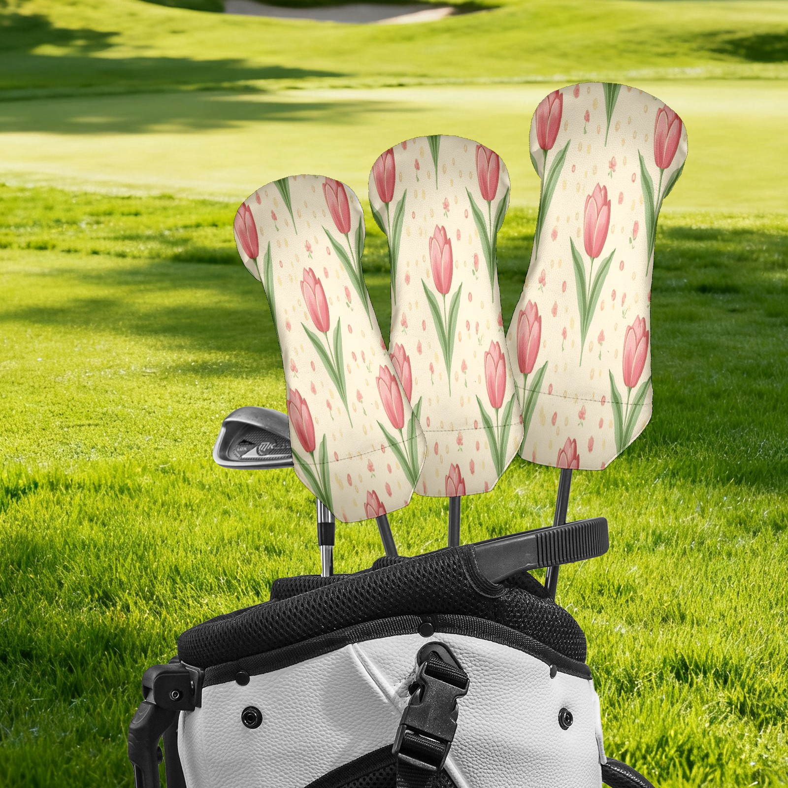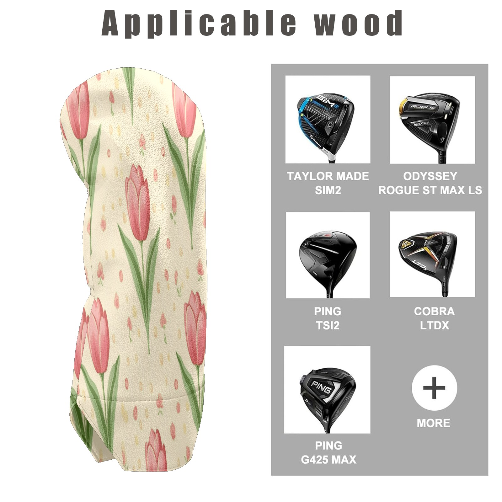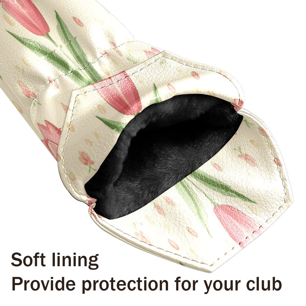 Golf Club Head Covers for Driver Hybrid and Fairway Woods, Waterproof Leather Headcovers for Golf Clubs, Ideal Golf Accessories Gift for Men Women (Tulip)