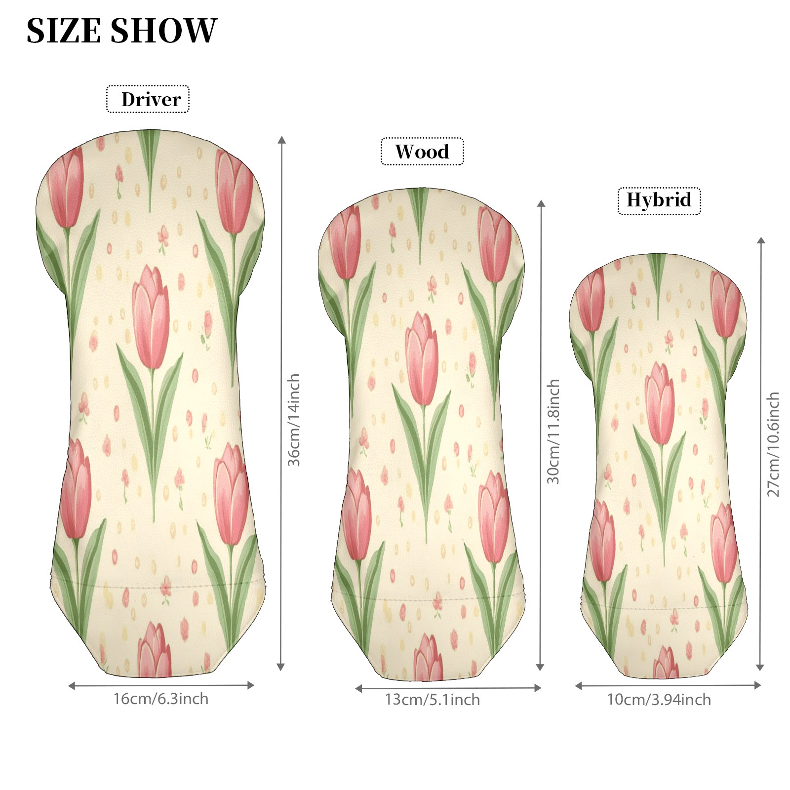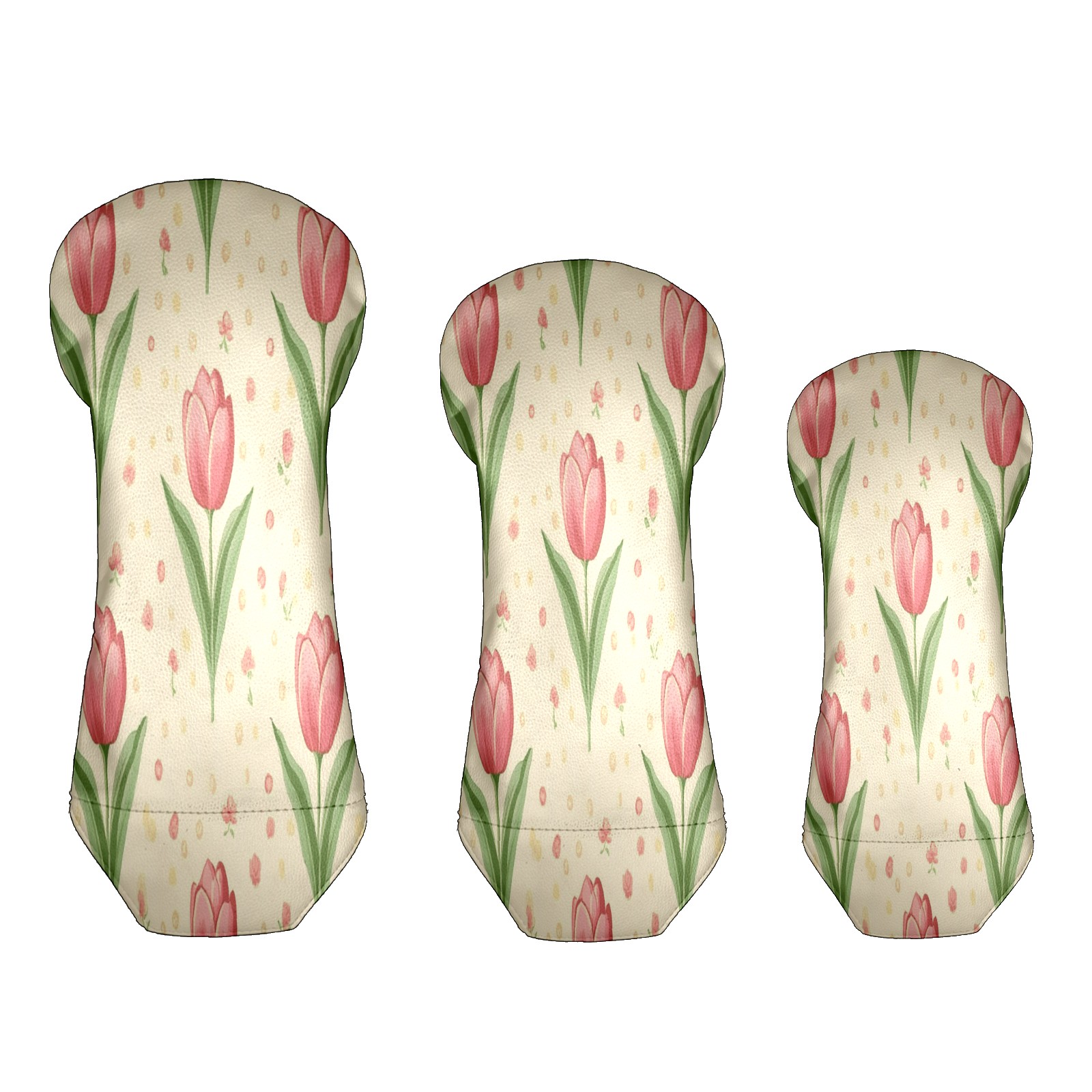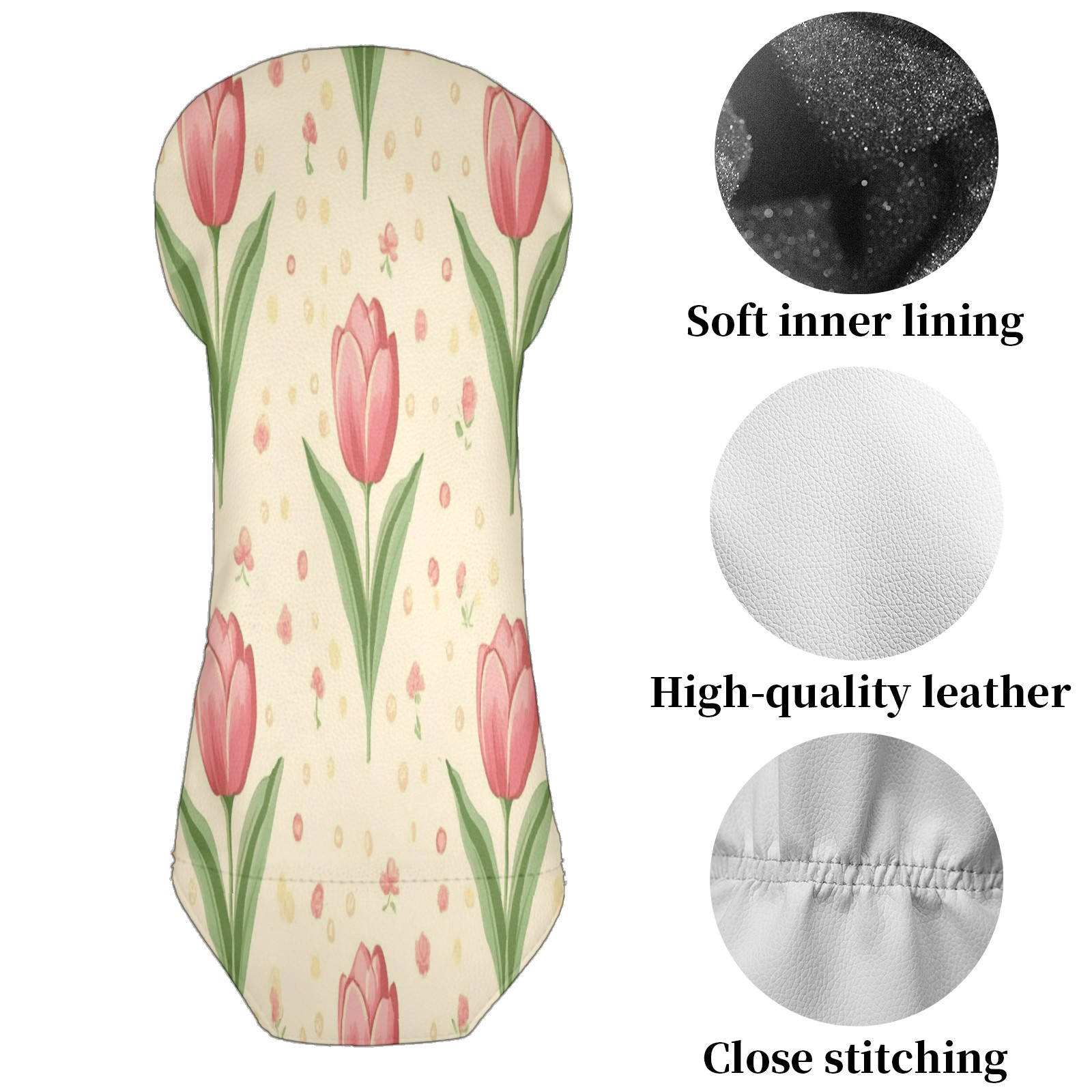 Golf Club Head Covers for Driver Hybrid and Fairway Woods, Waterproof Leather Headcovers for Golf Clubs, Ideal Golf Accessories Gift for Men Women (Tulip)