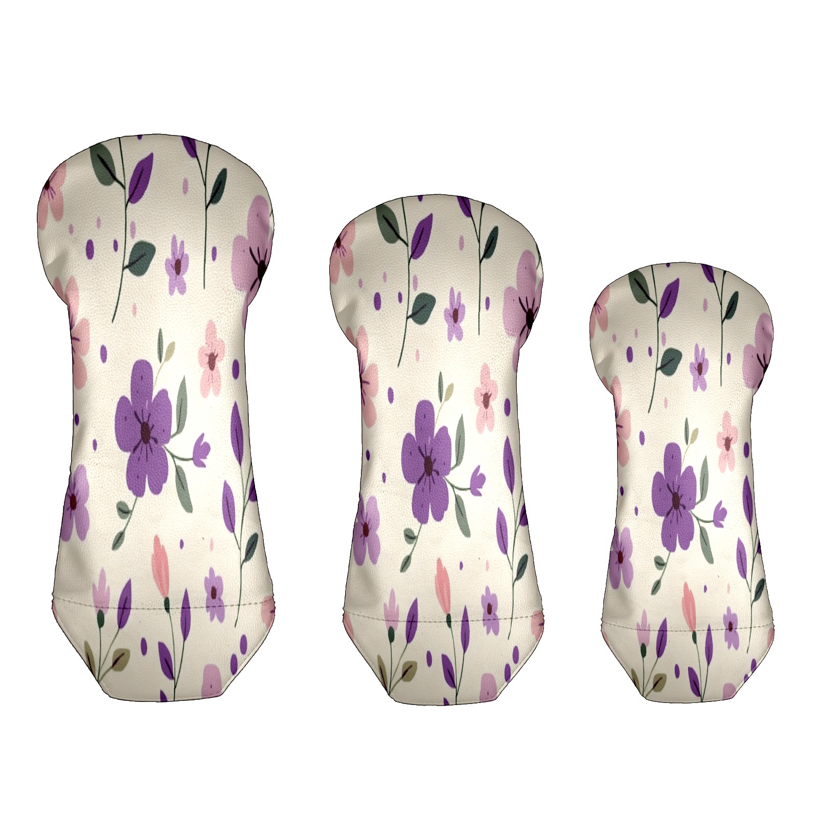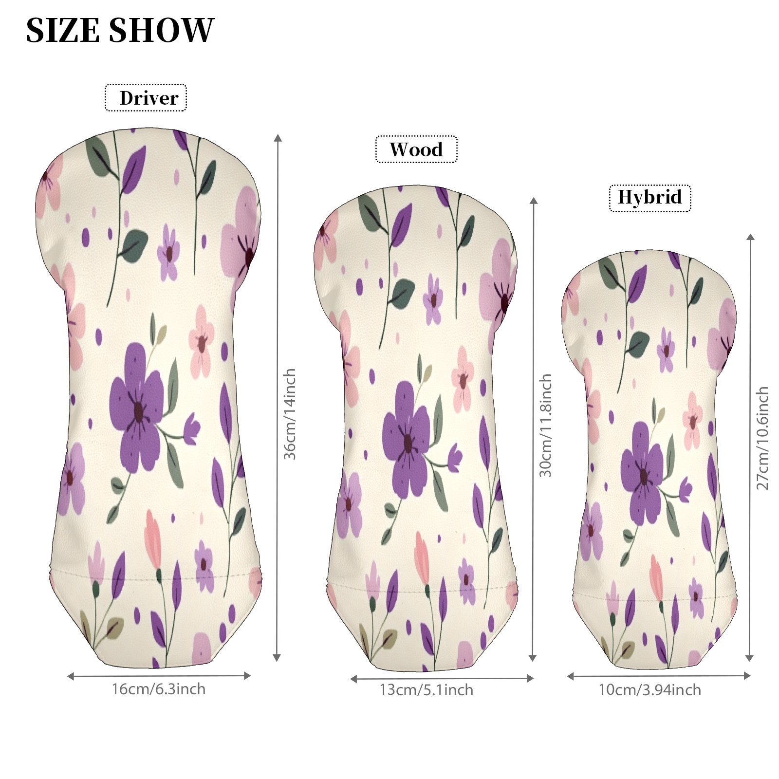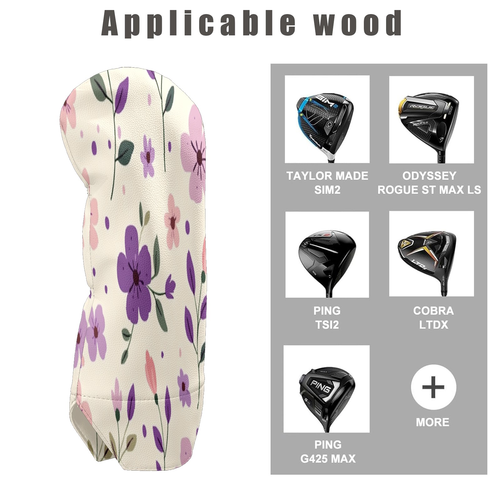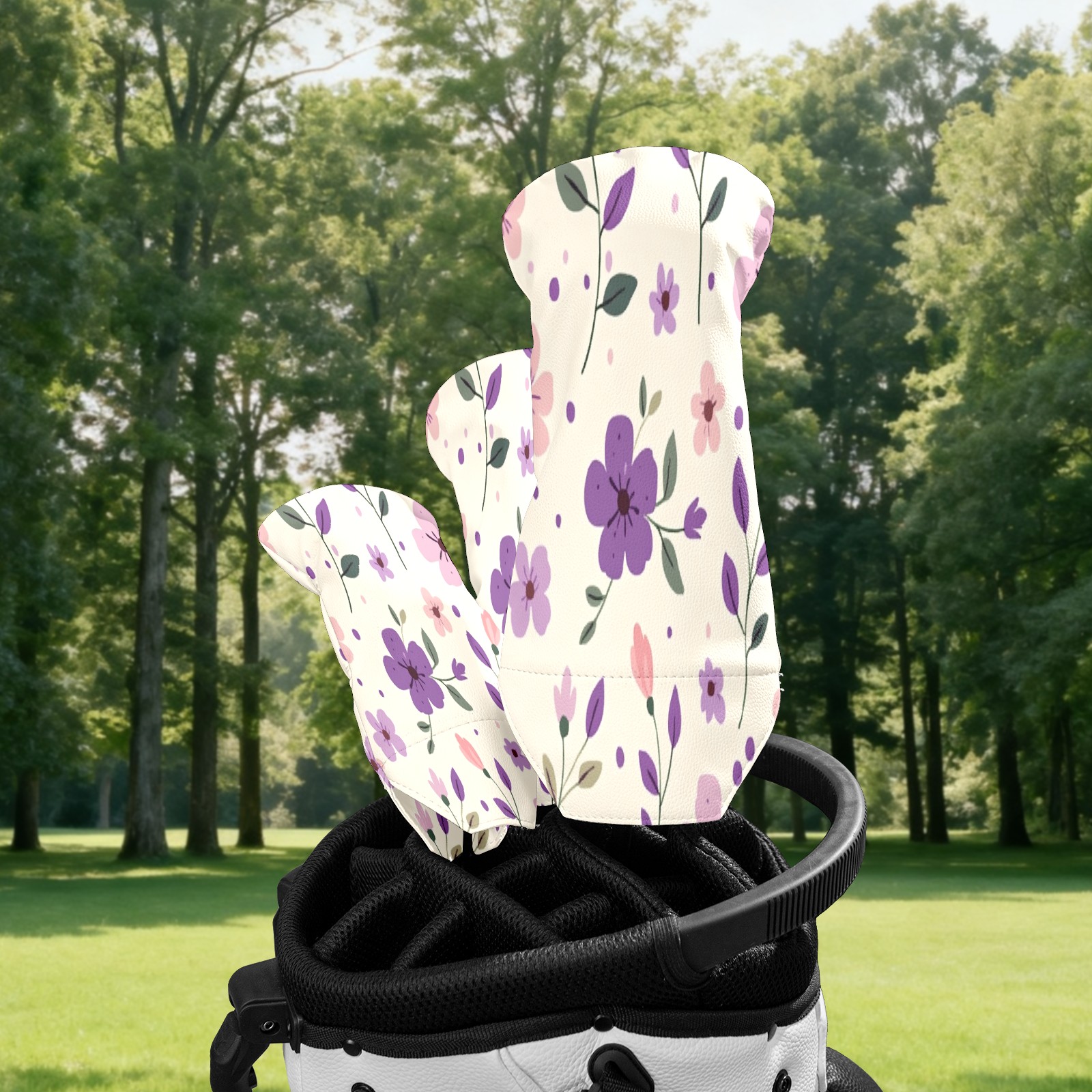 Golf Club Head Covers for Driver Hybrid and Fairway Woods, Waterproof Leather Headcovers for Golf Clubs, Ideal Golf Accessories Gift for Men Women (Purple And Pink Flowers)