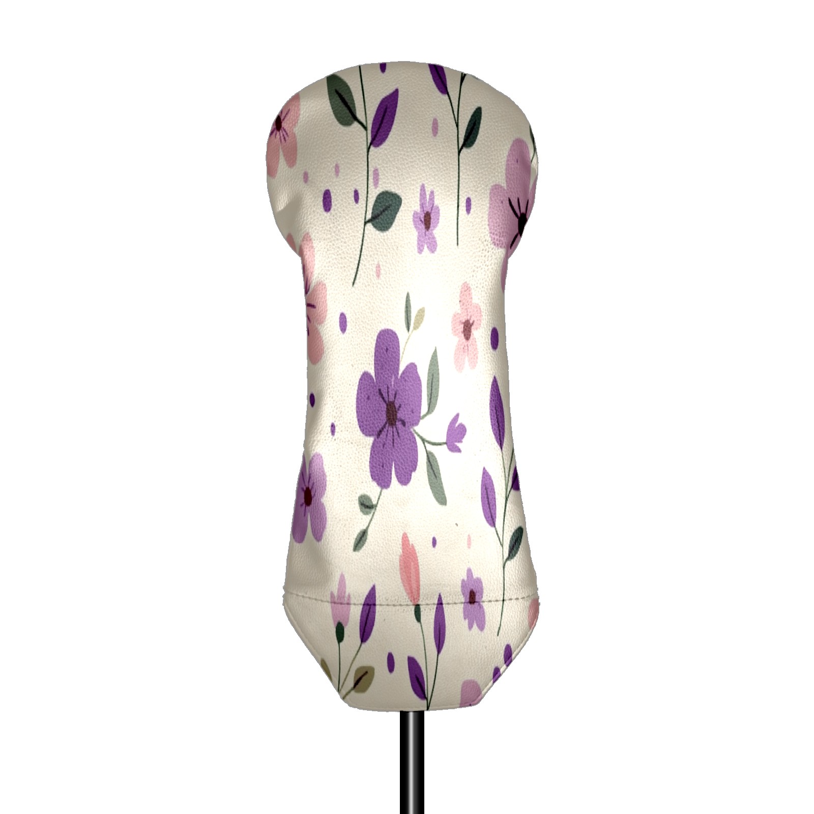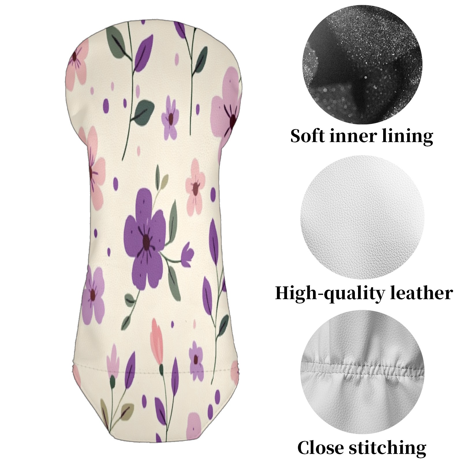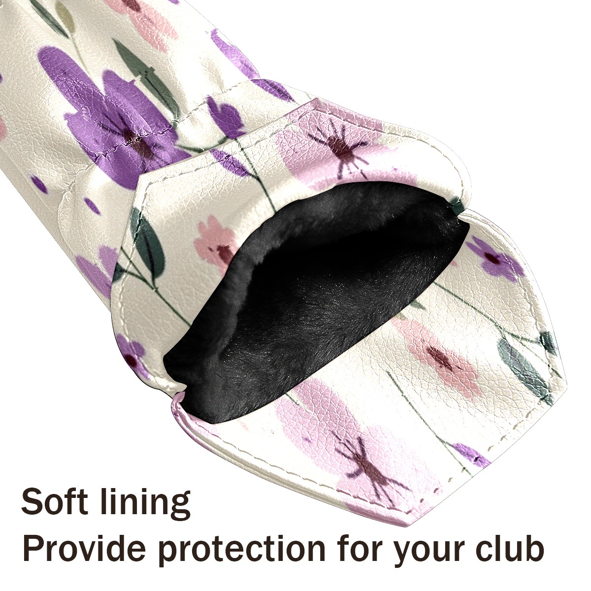 Golf Club Head Covers for Driver Hybrid and Fairway Woods, Waterproof Leather Headcovers for Golf Clubs, Ideal Golf Accessories Gift for Men Women (Purple And Pink Flowers)
