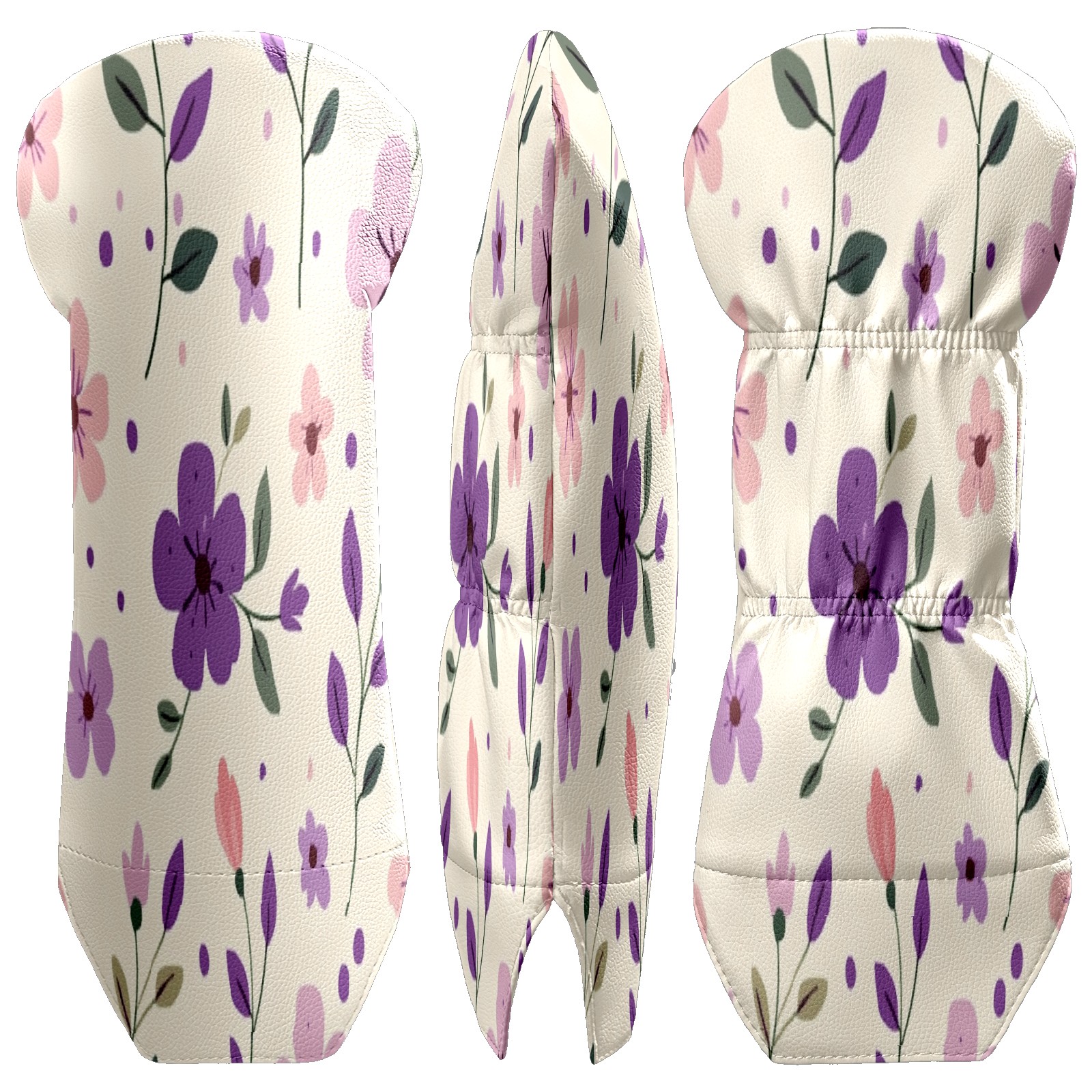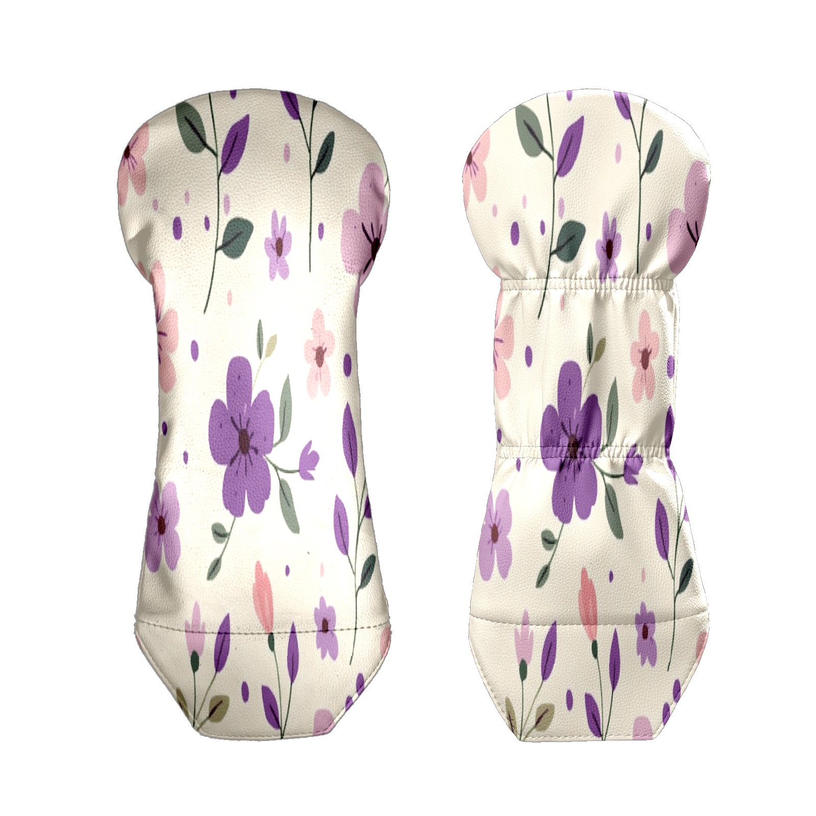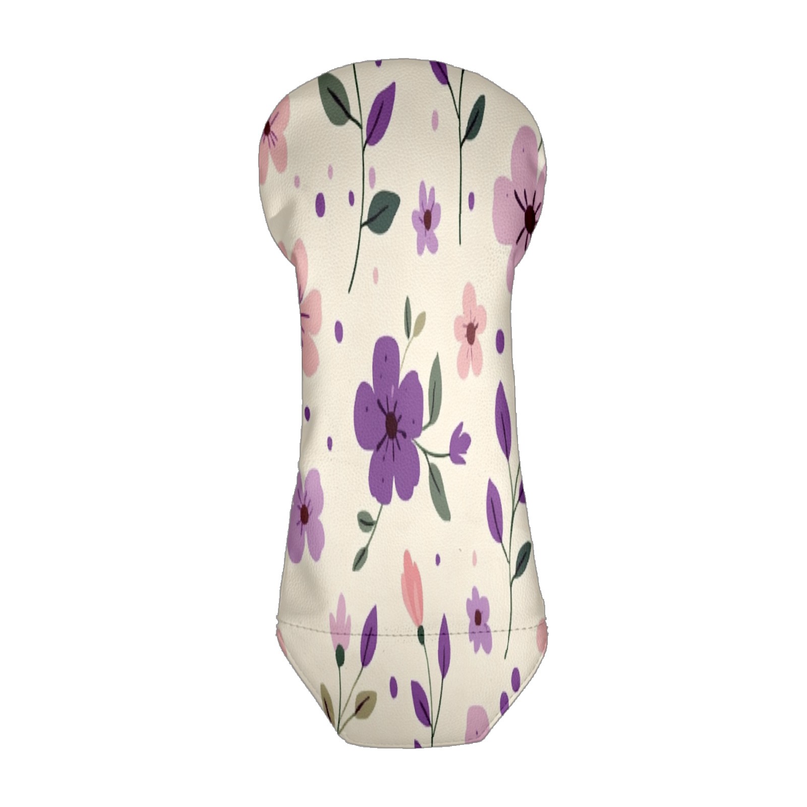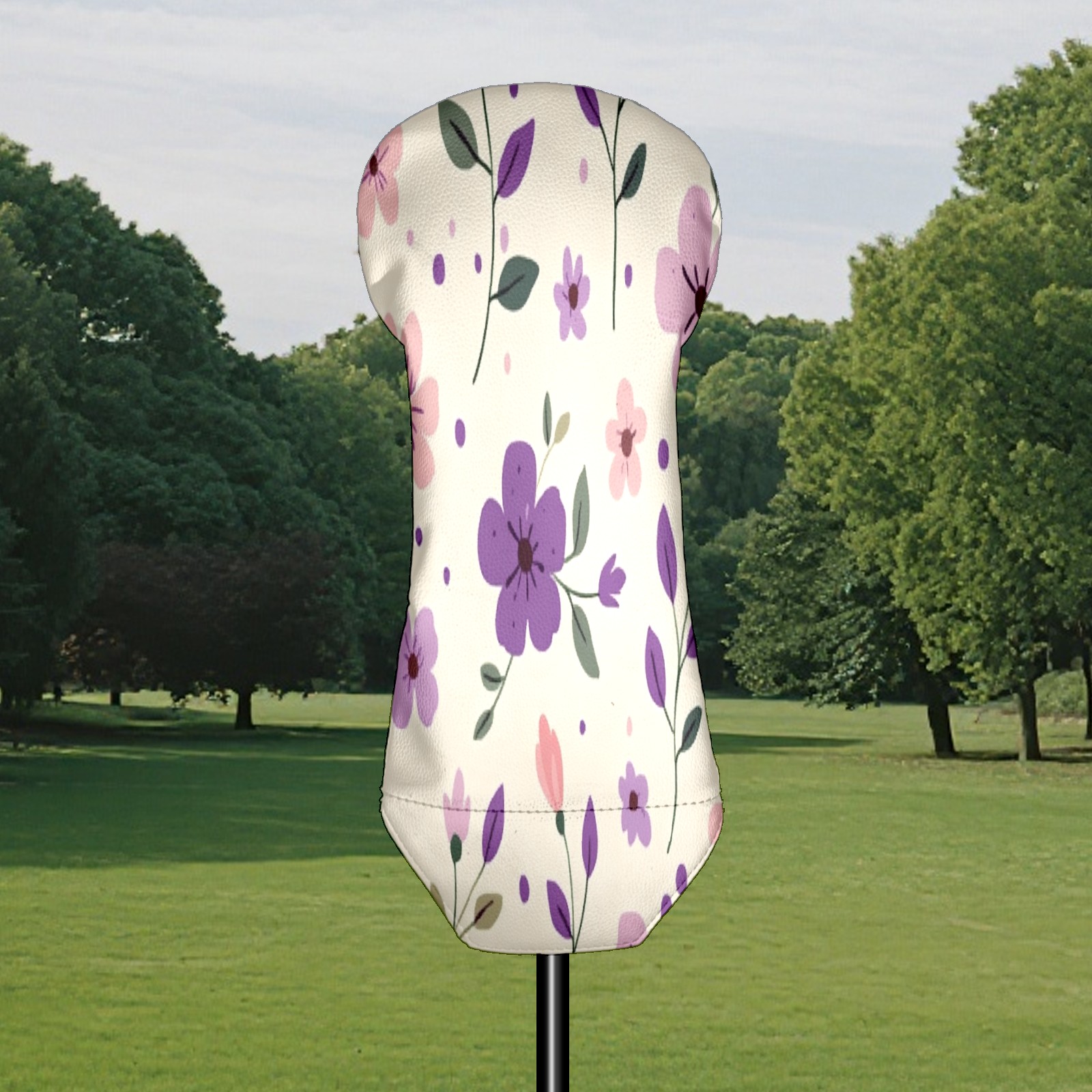 Golf Club Head Covers for Driver Hybrid and Fairway Woods, Waterproof Leather Headcovers for Golf Clubs, Ideal Golf Accessories Gift for Men Women (Purple And Pink Flowers)