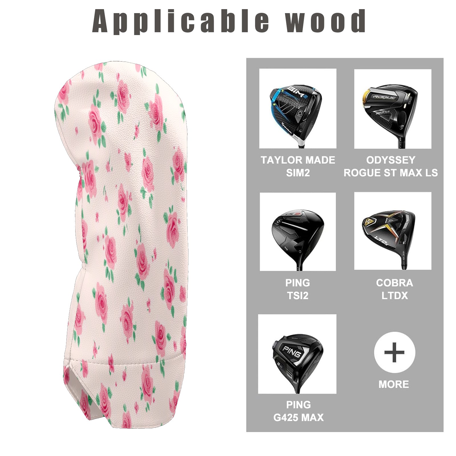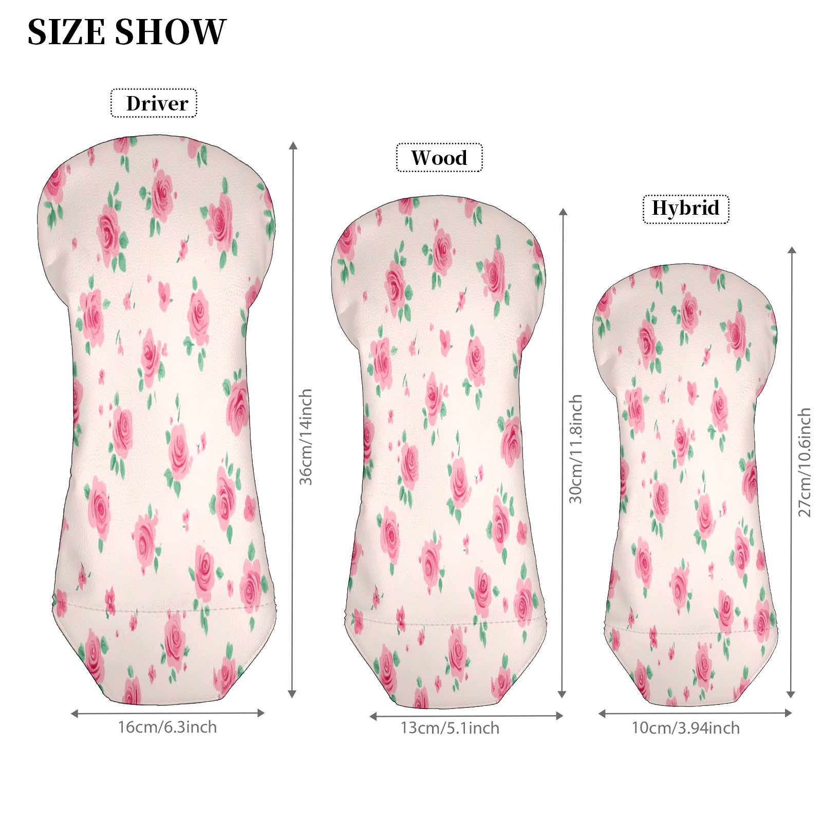 Golf Club Head Covers for Driver Hybrid and Fairway Woods, Waterproof Leather Headcovers for Golf Clubs, Ideal Golf Accessories Gift for Men Women (Tiny Pink Roses)