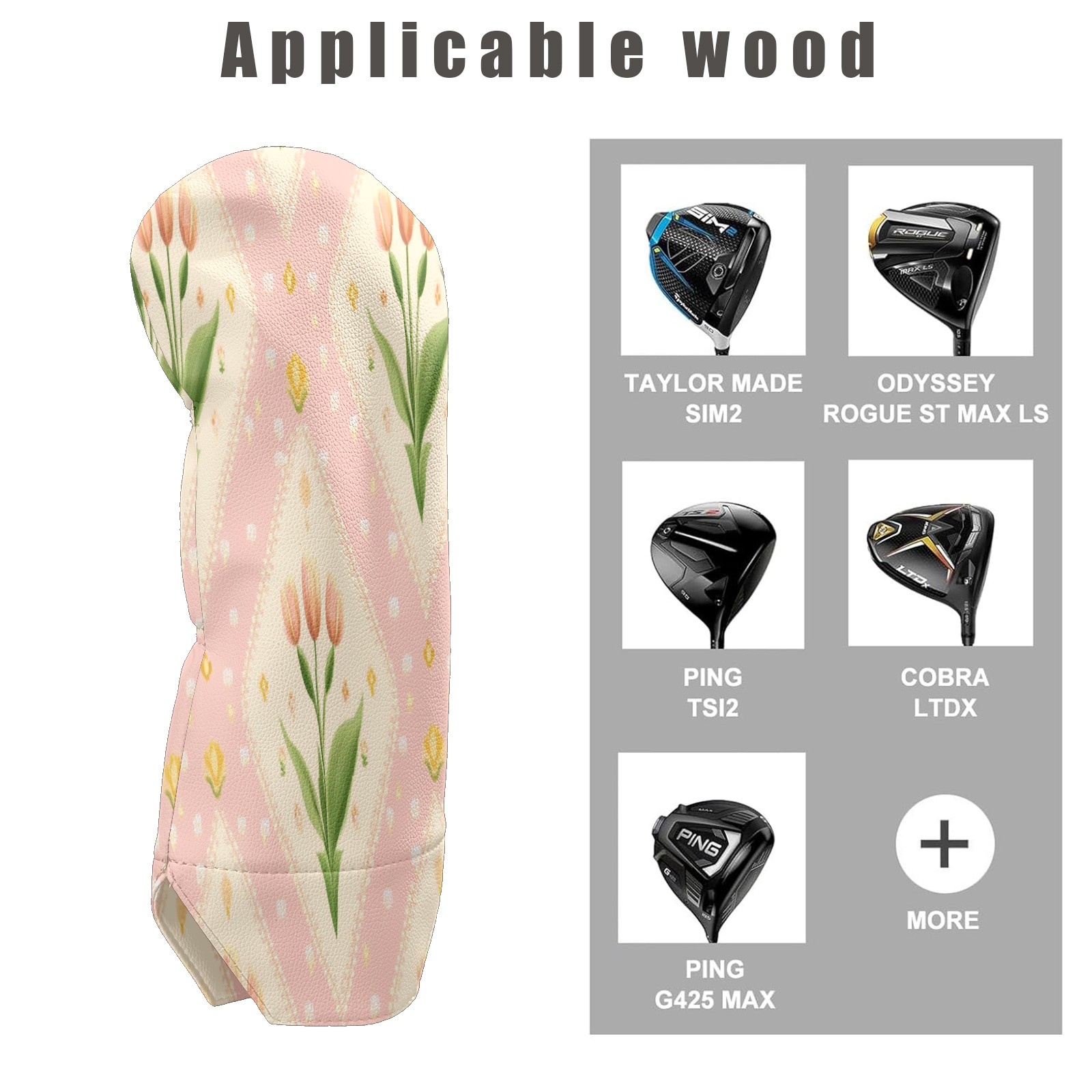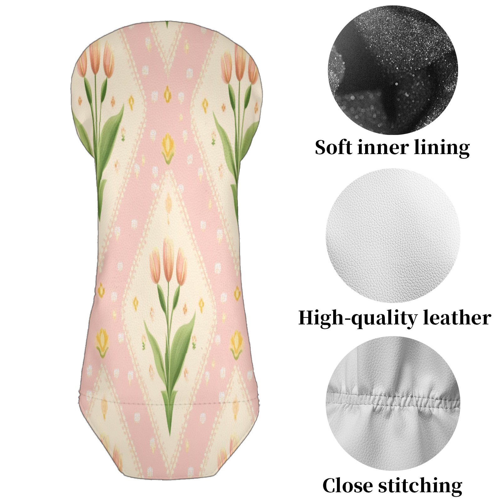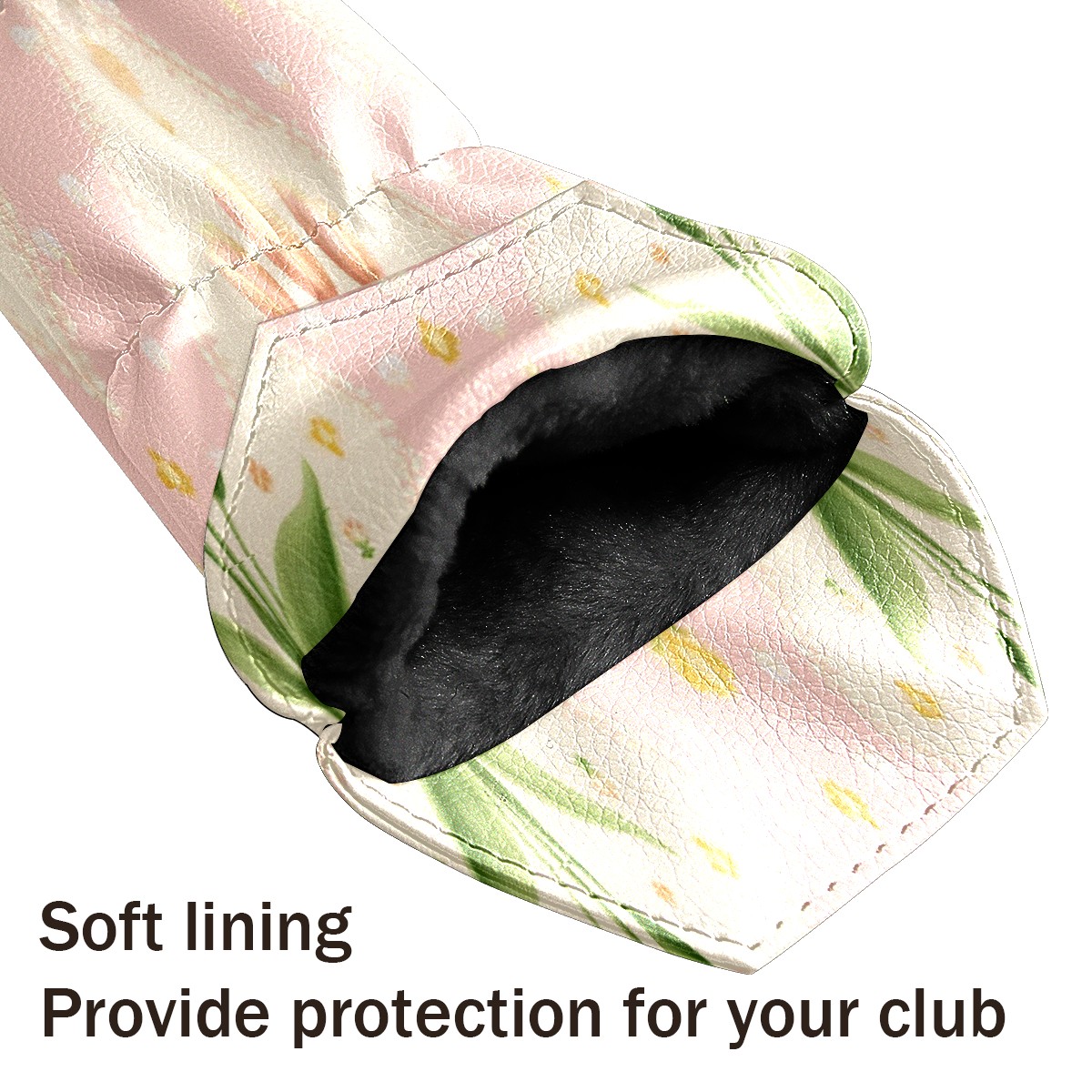 Golf Club Head Covers for Driver Hybrid and Fairway Woods, Waterproof Leather Headcovers for Golf Clubs, Ideal Golf Accessories Gift for Men Women (Small Tulips)